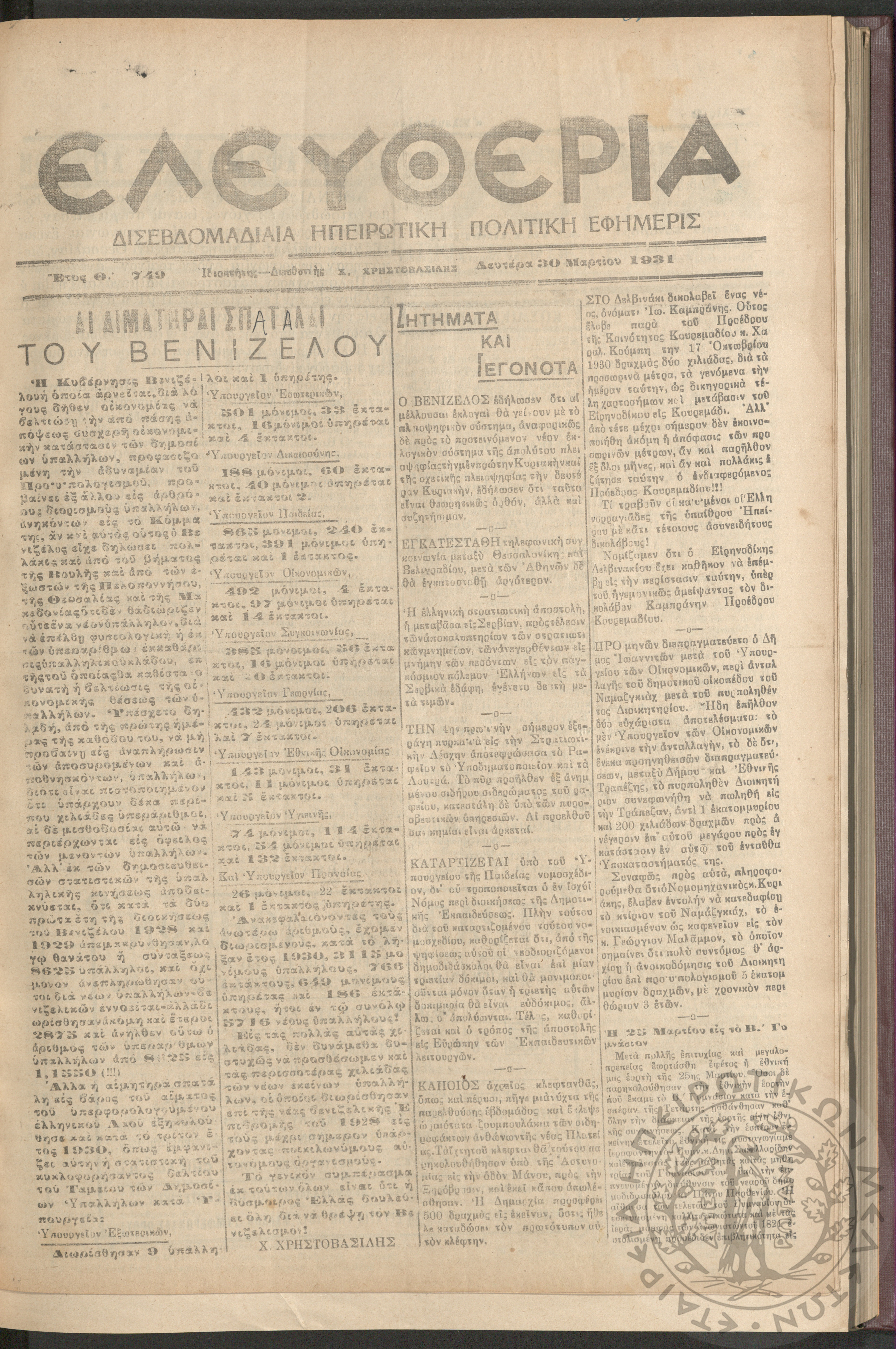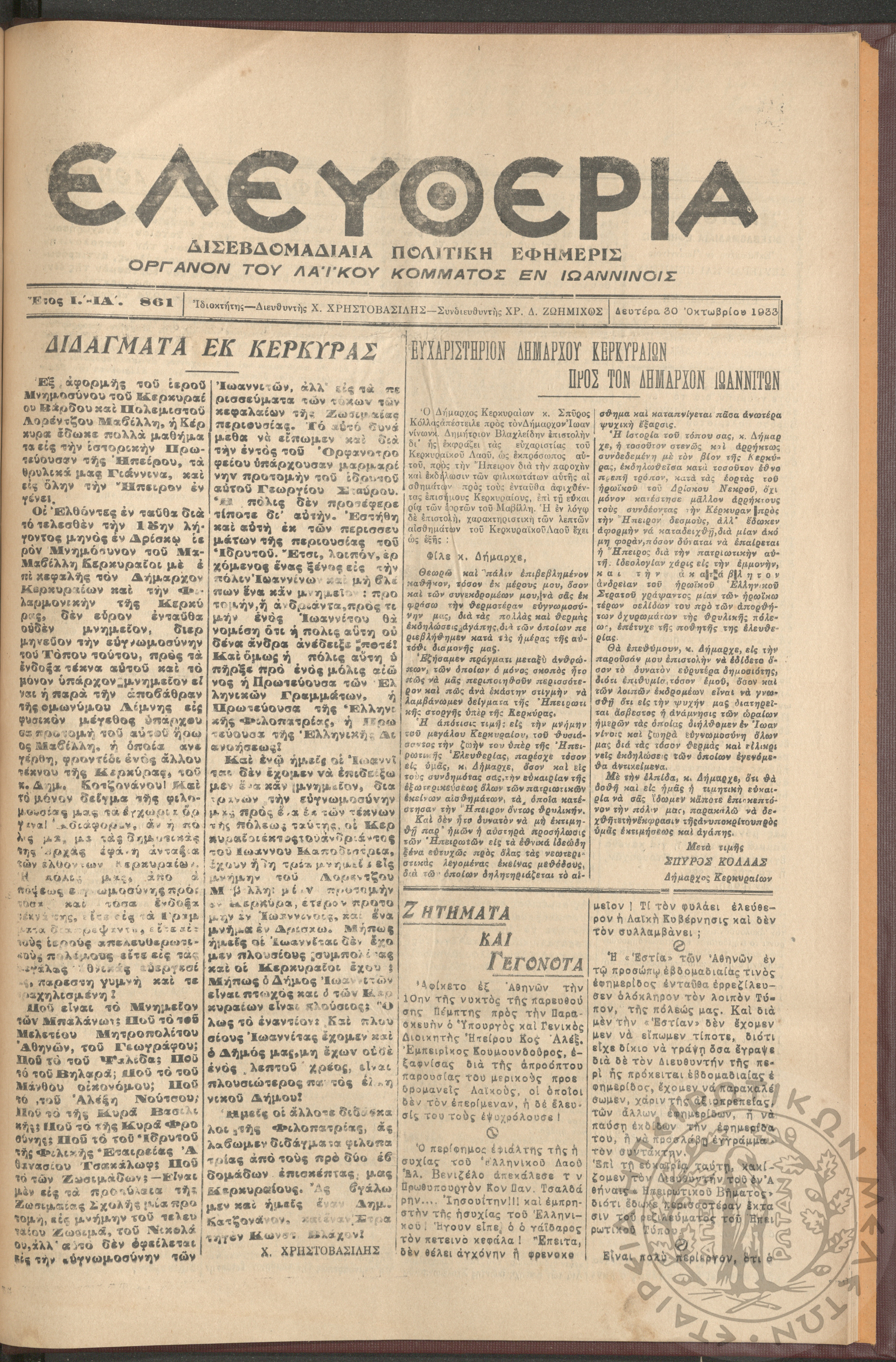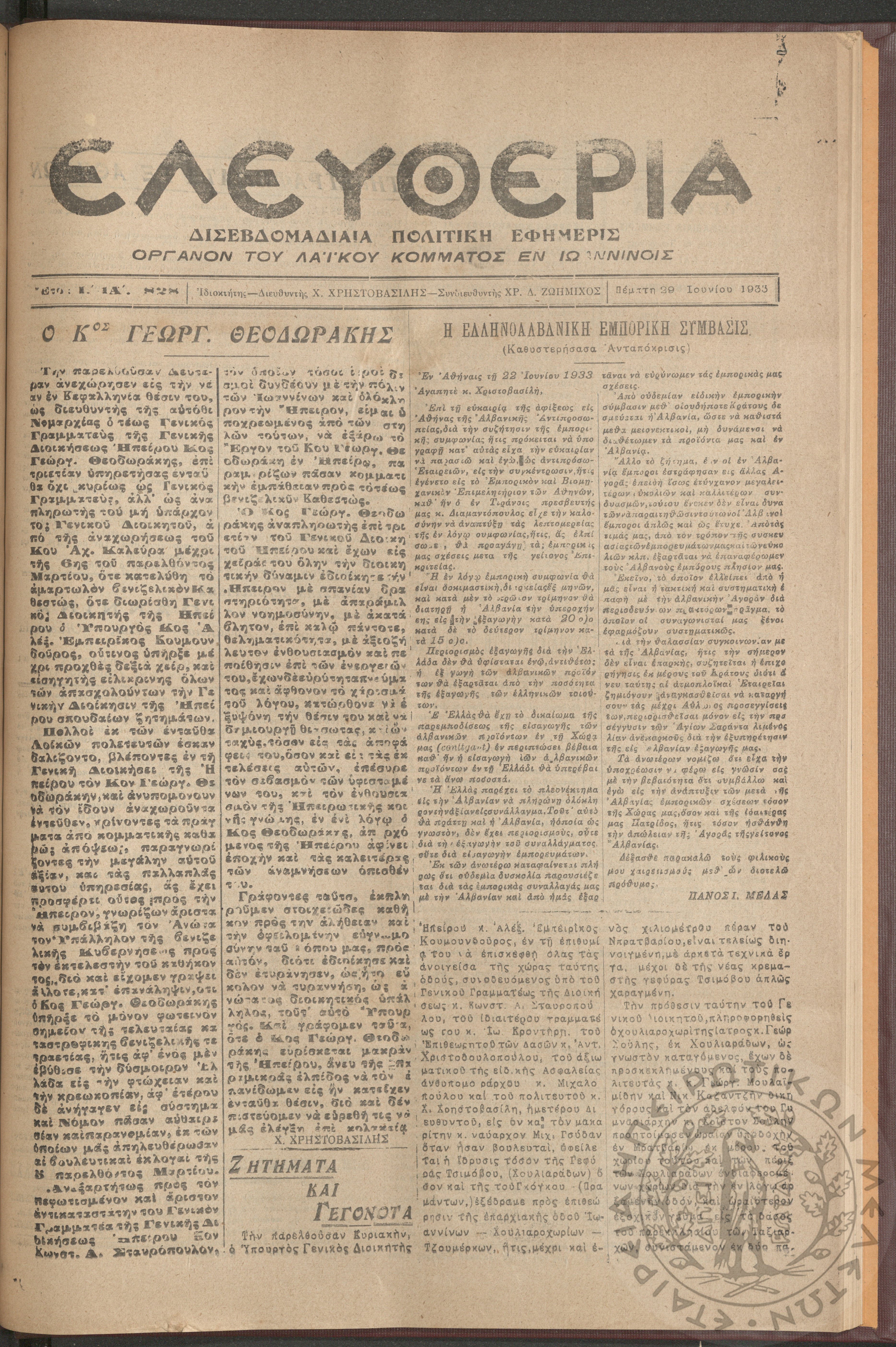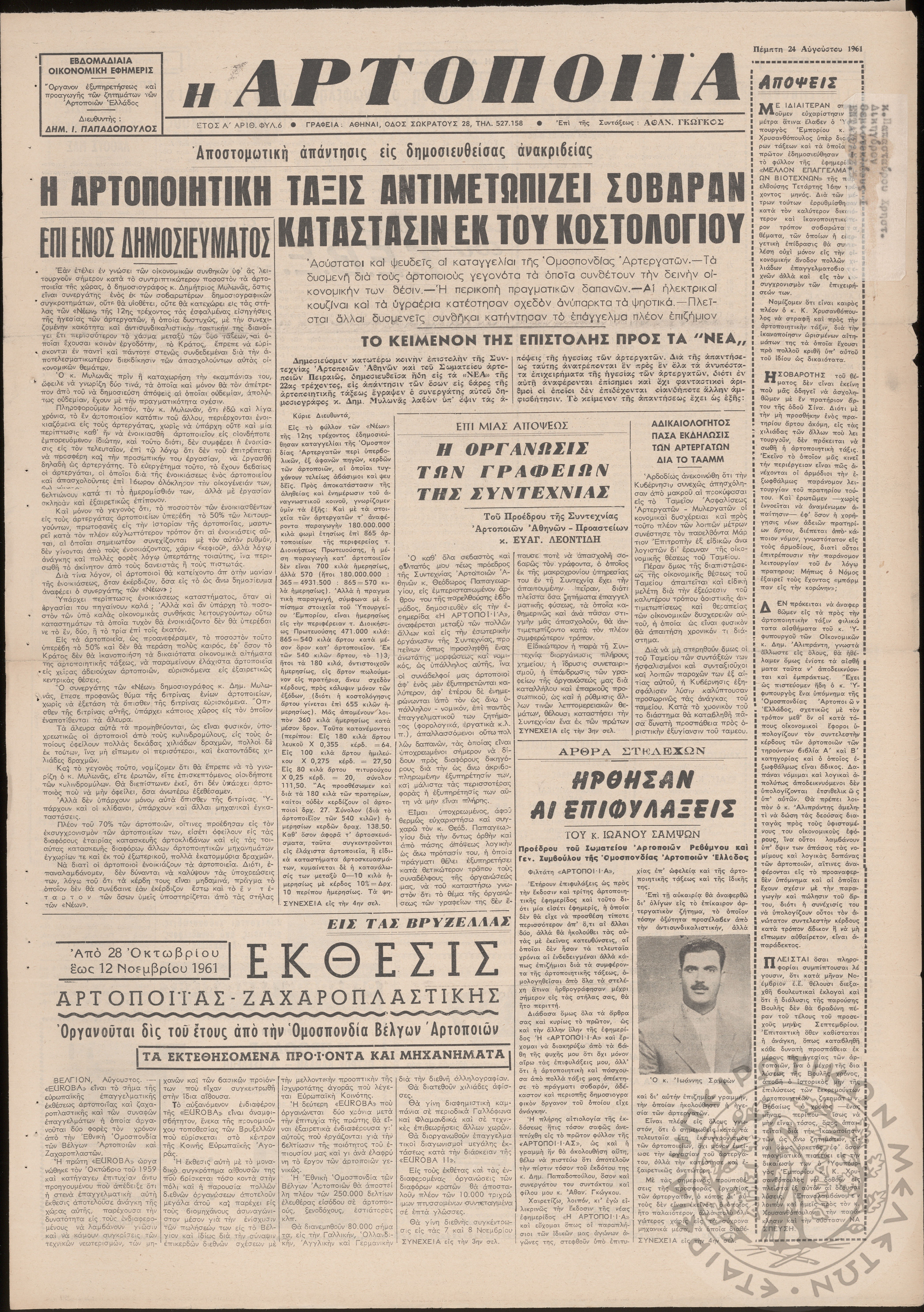 Η Αρτοποιία: εβδομαδιαία οικονομική εφημερίς, όργανον εξυπηρέτησεως και προαγωγής των ζητημάτων των αρτοποιών της Ελλάδας, 1961, φ. 6Έτος Α΄, φ. 6...