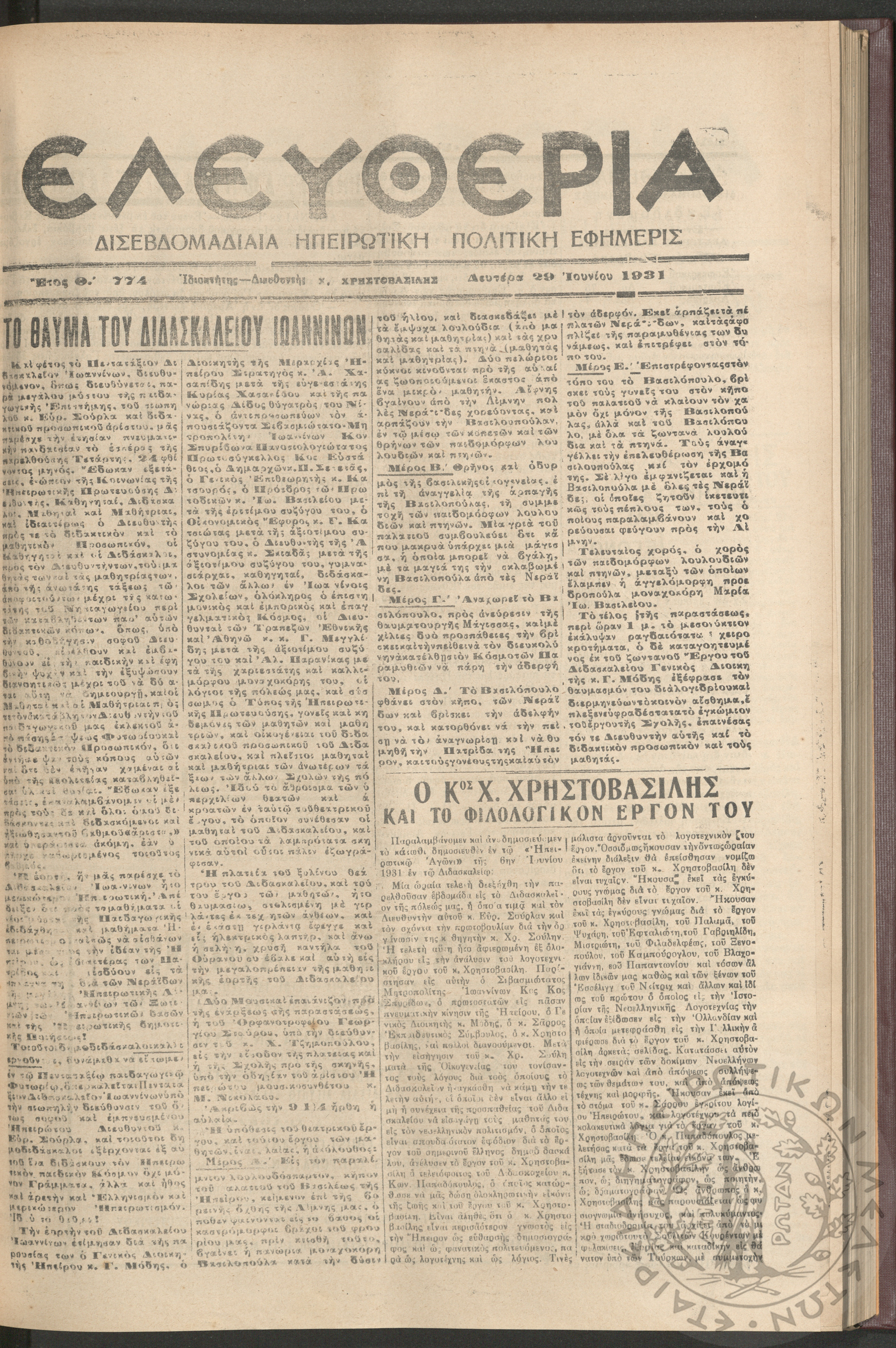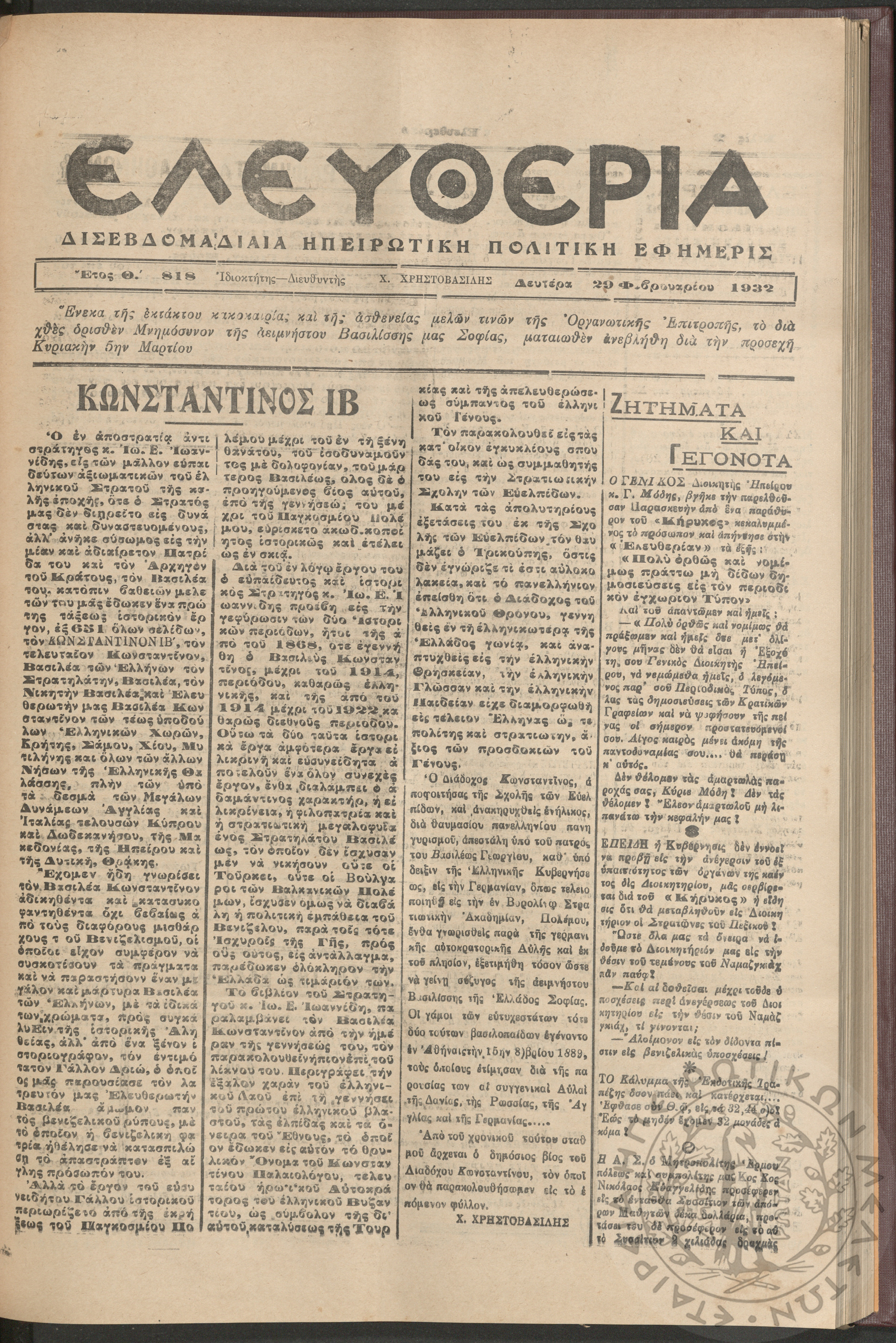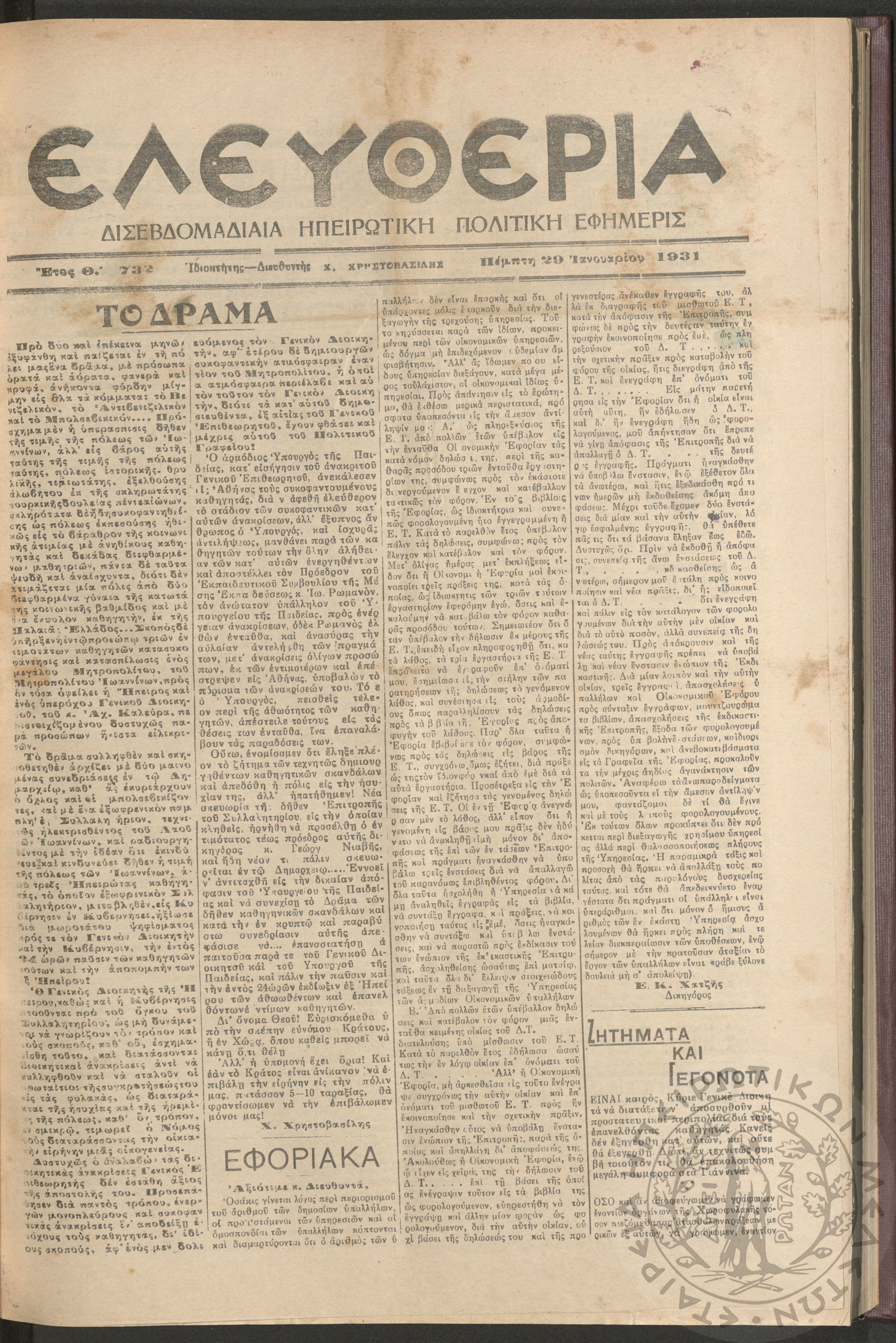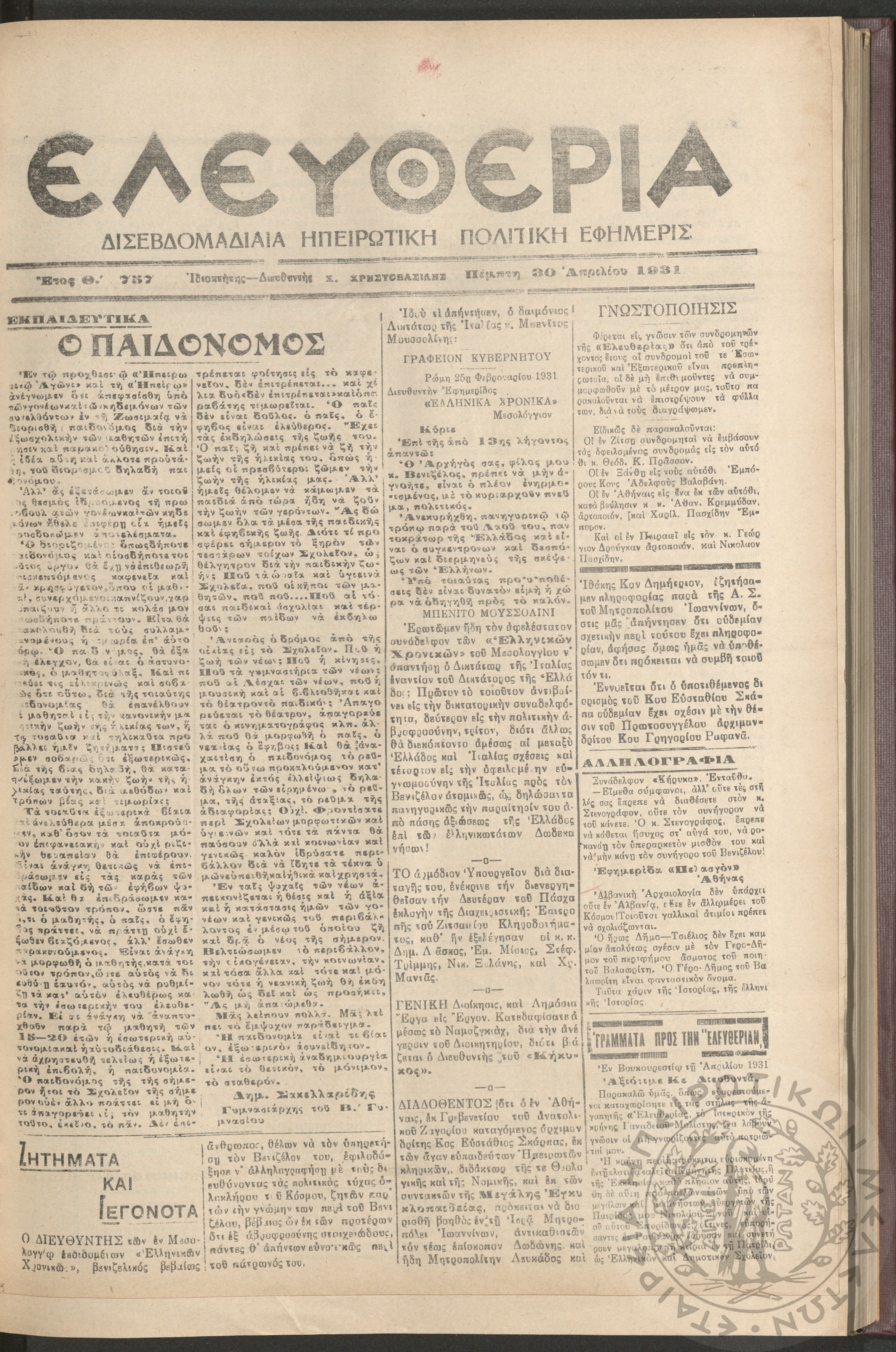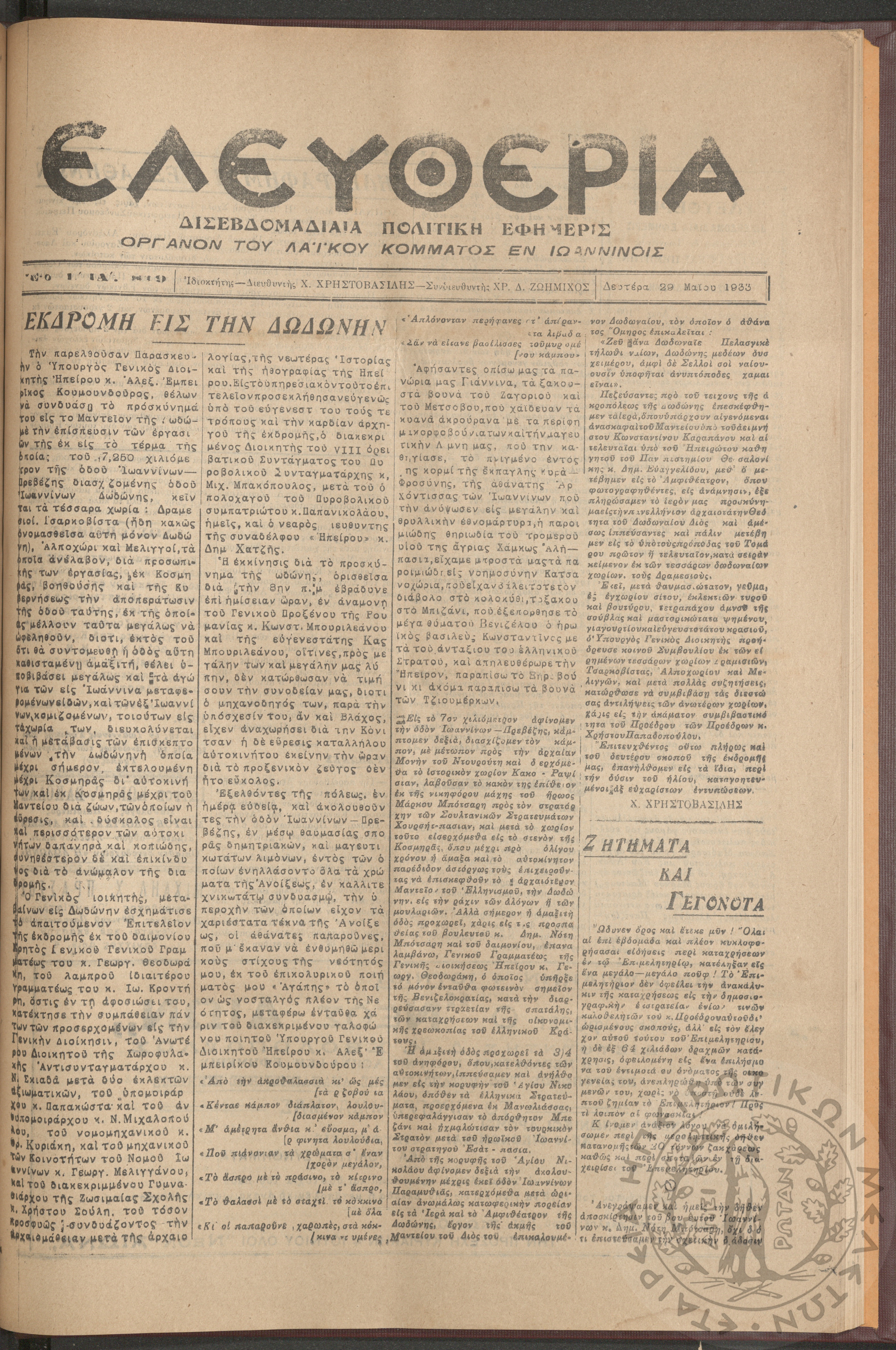 Η Αρτοποιία: εβδομαδιαία οικονομική εφημερίς, όργανον εξυπηρέτησεως και προαγωγής των ζητημάτων των αρτοποιών της Ελλάδας, 1961, φ. 6Έτος Α΄, φ. 6...