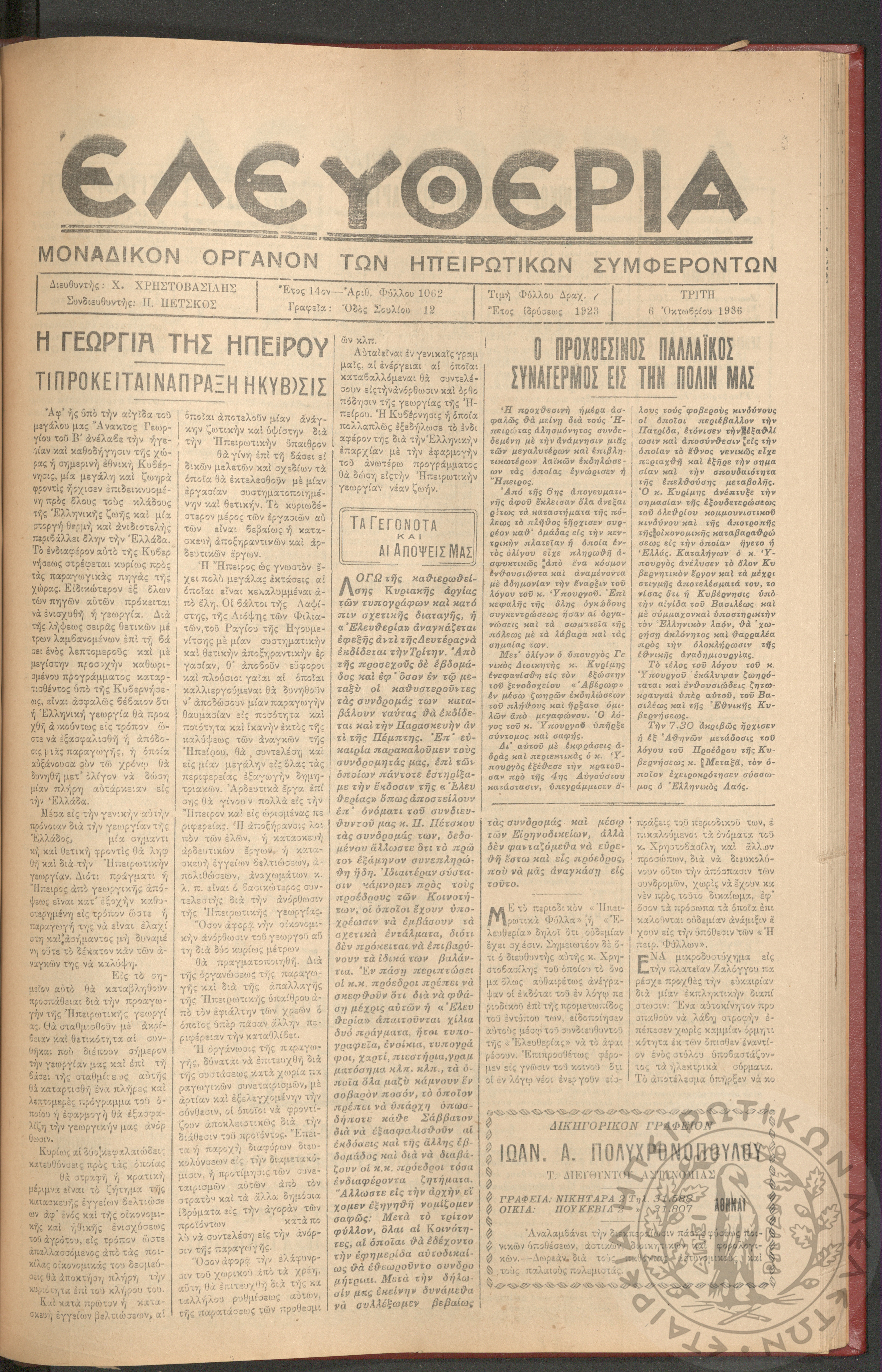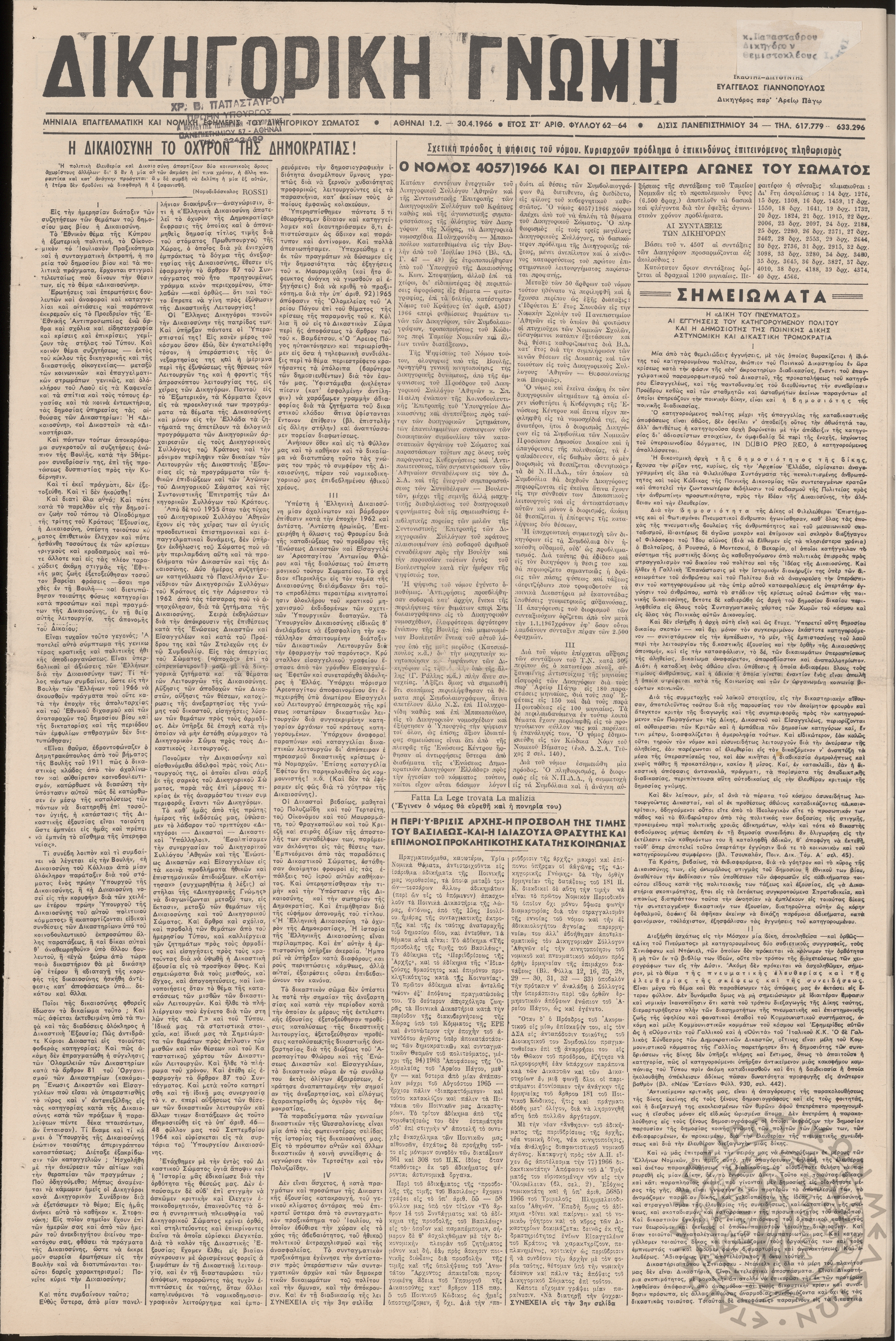 Δικηγορική Γνώμη: μηνιαία επαγγελματική και νομική εφημερίς του δικηγορικού σώματος (φ. 62-64)Έτος ΣΤ΄, φ. 62-64...