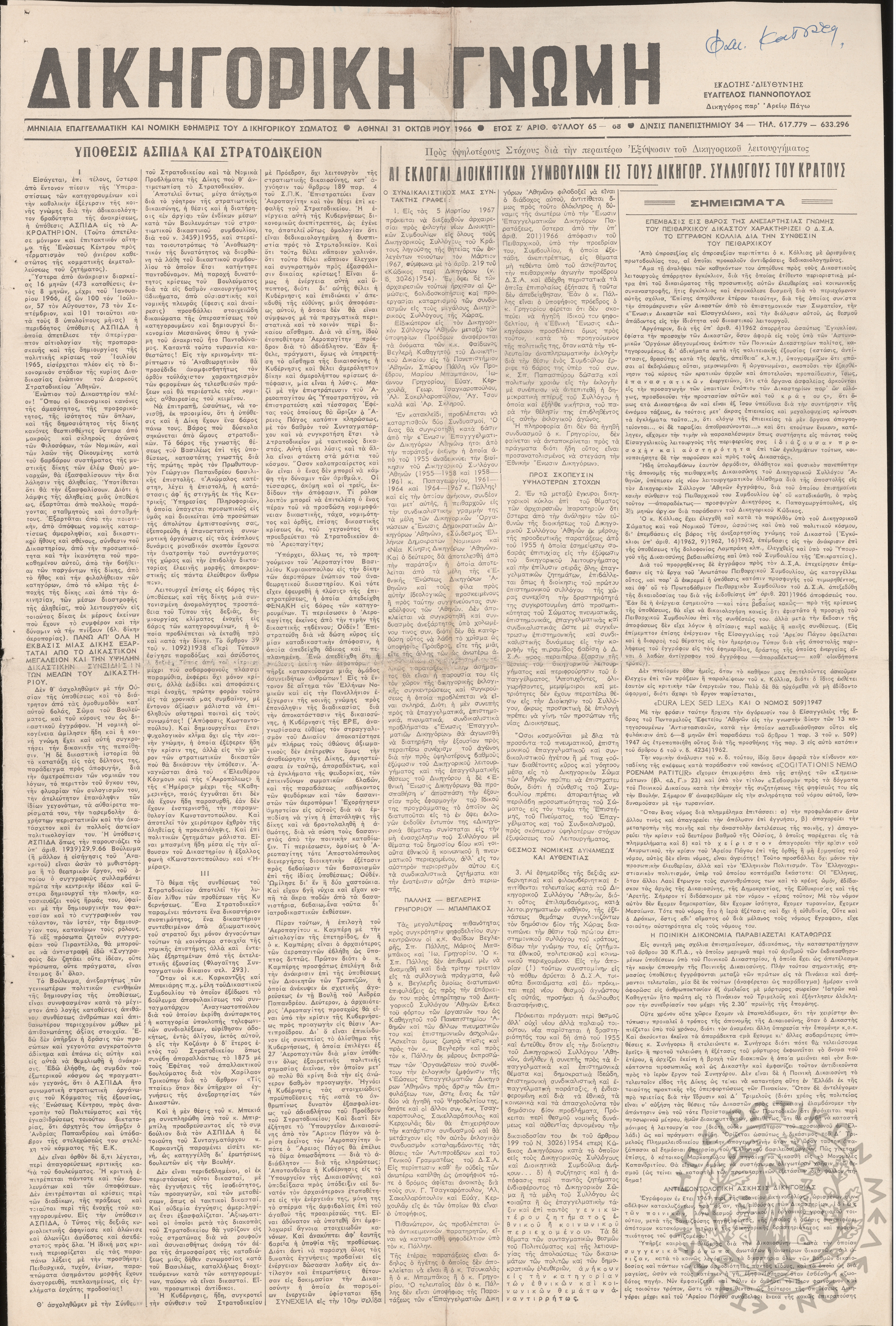 Δικηγορική Γνώμη: μηνιαία επαγγελματική και νομική εφημερίς του δικηγορικού σώματος (φ. 65-68)Έτος Ζ΄, φ. 65-68...
