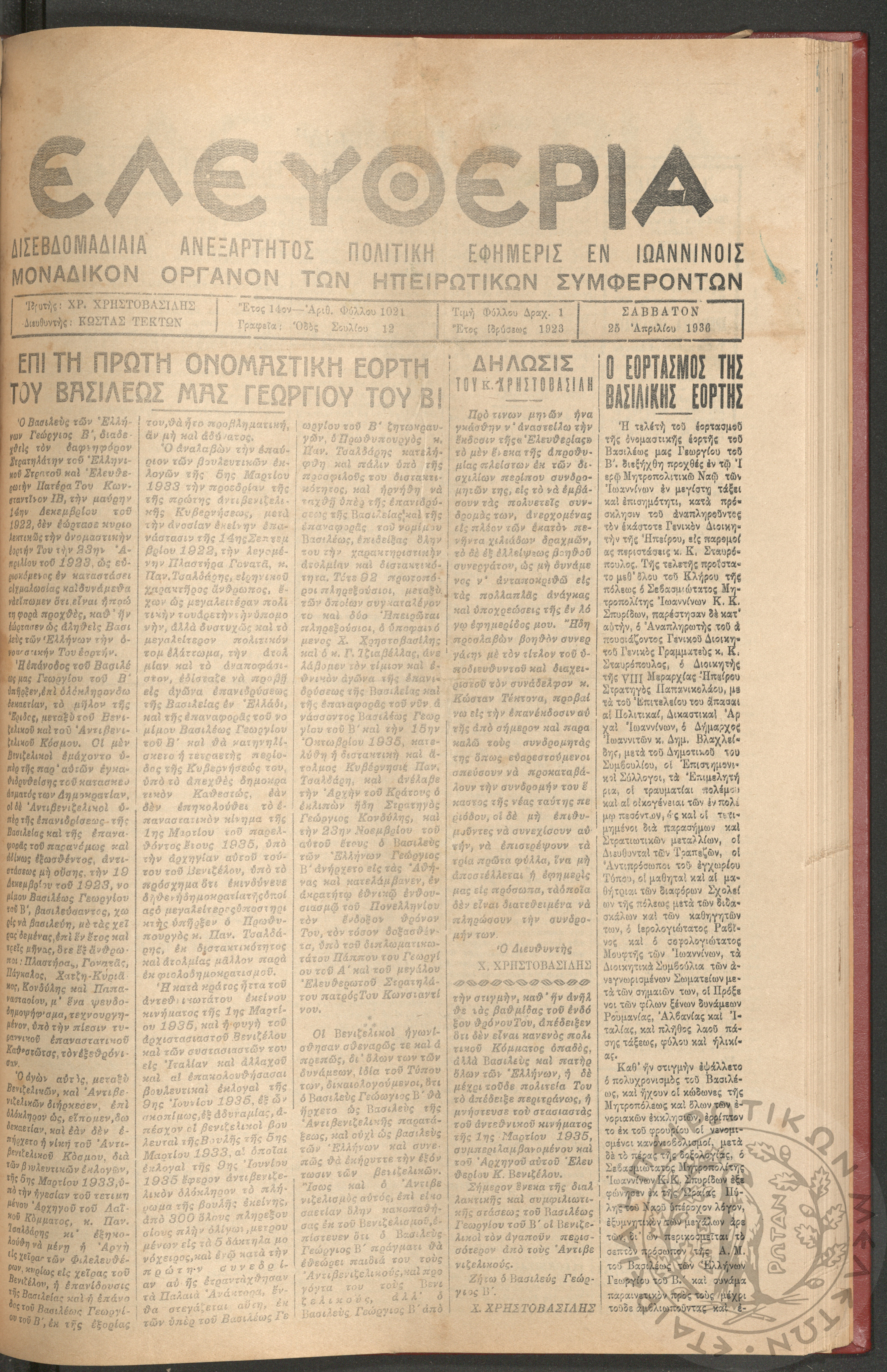 - Ψηφιακό Αποθετήριο Ανάδειξης και προβολής των ιστορικών τεκμηρίων της Εταιρείας Ηπειρωτικών Μελετών