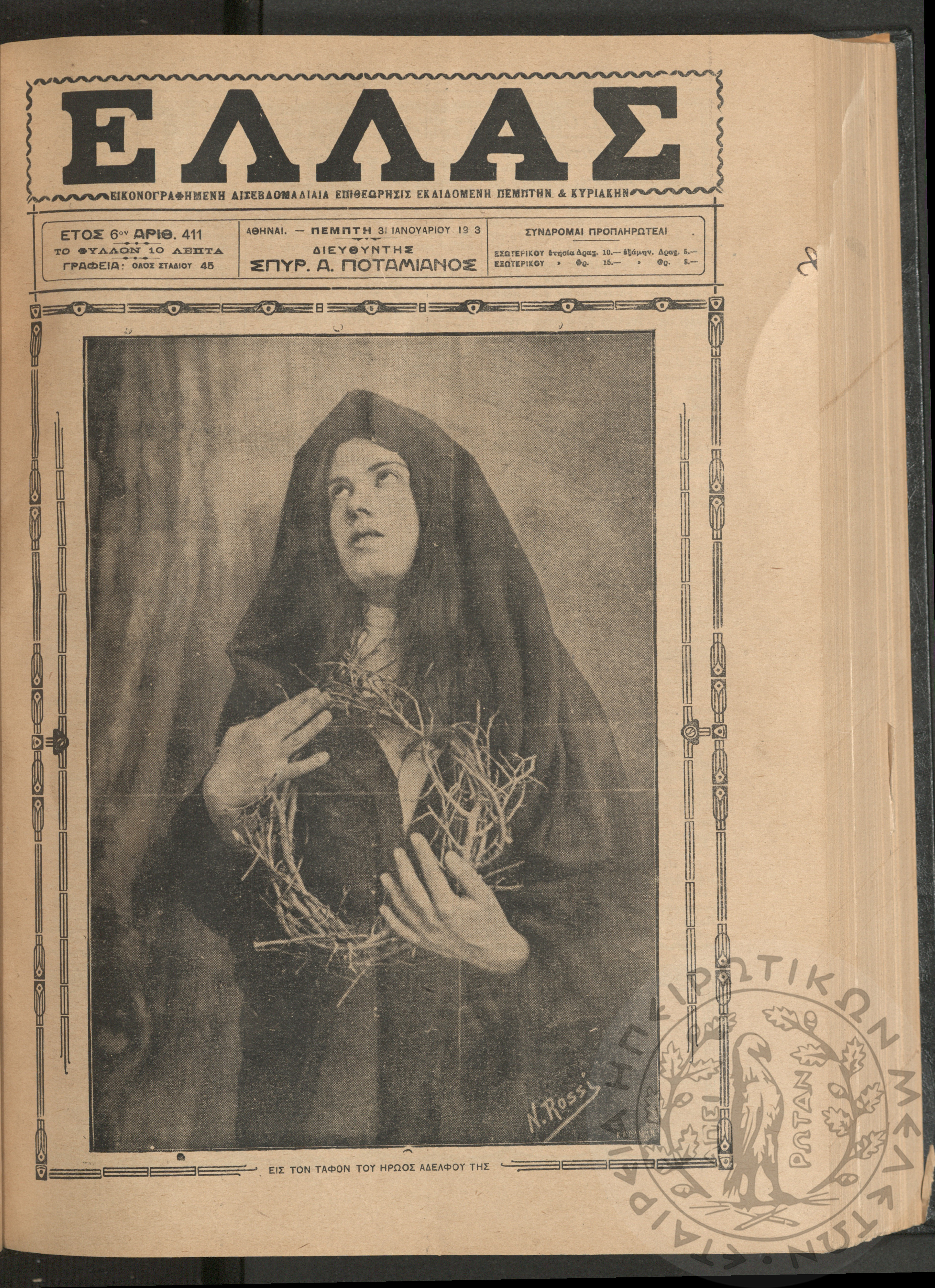 Ελλάς: εικονογραφημένη δισεβδομαδιαία επιθεώρησις εκδιδόμενη Πέμπτην και Κυριακήν (τεύχ. 411)Έτος ΣΤ΄, τεύχ. 411...