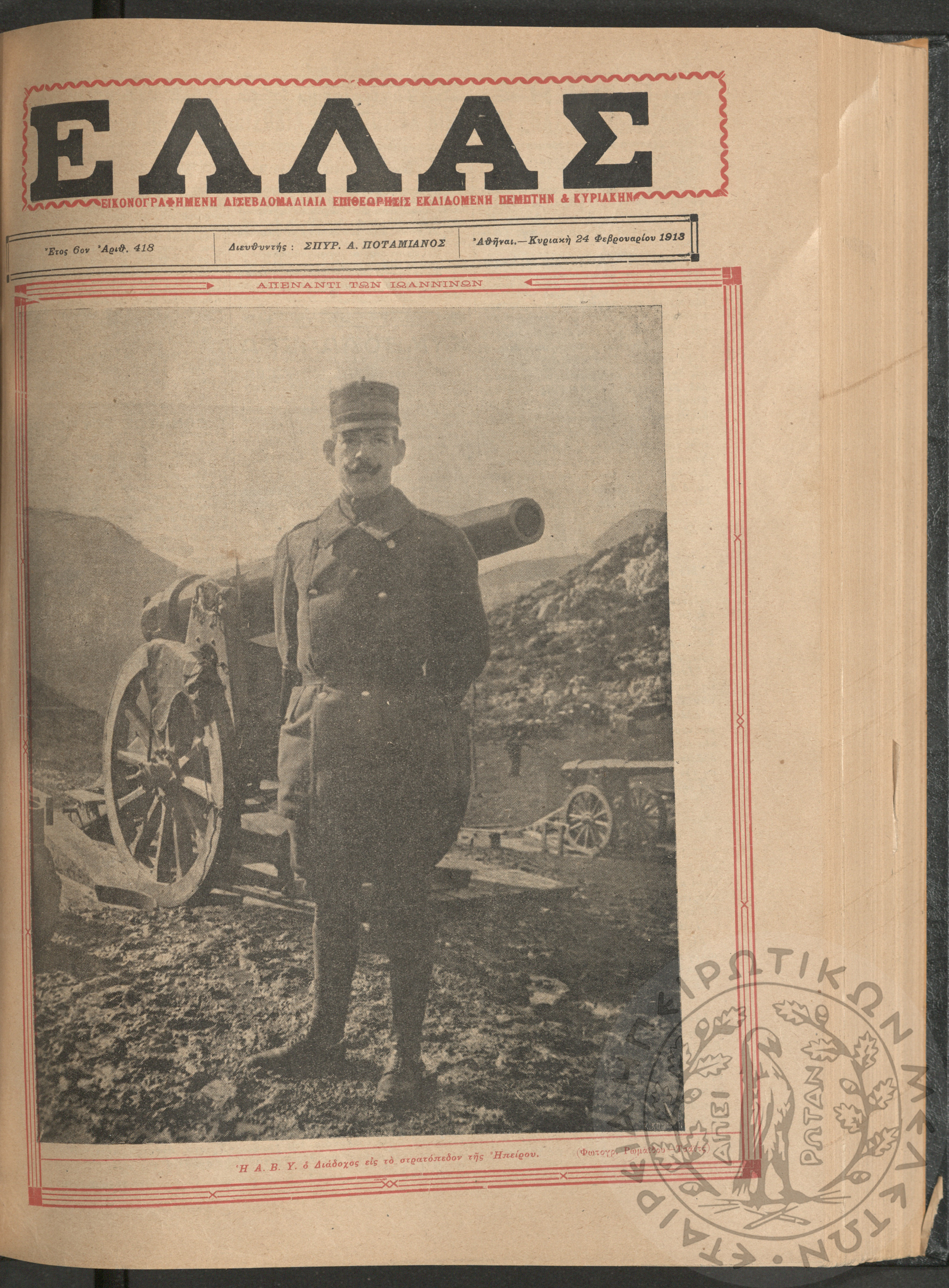 Ελλάς: εικονογραφημένη δισεβδομαδιαία επιθεώρησις εκδιδόμενη Πέμπτην και Κυριακήν (τεύχ. 418)Έτος ΣΤ΄, τεύχ. 418...