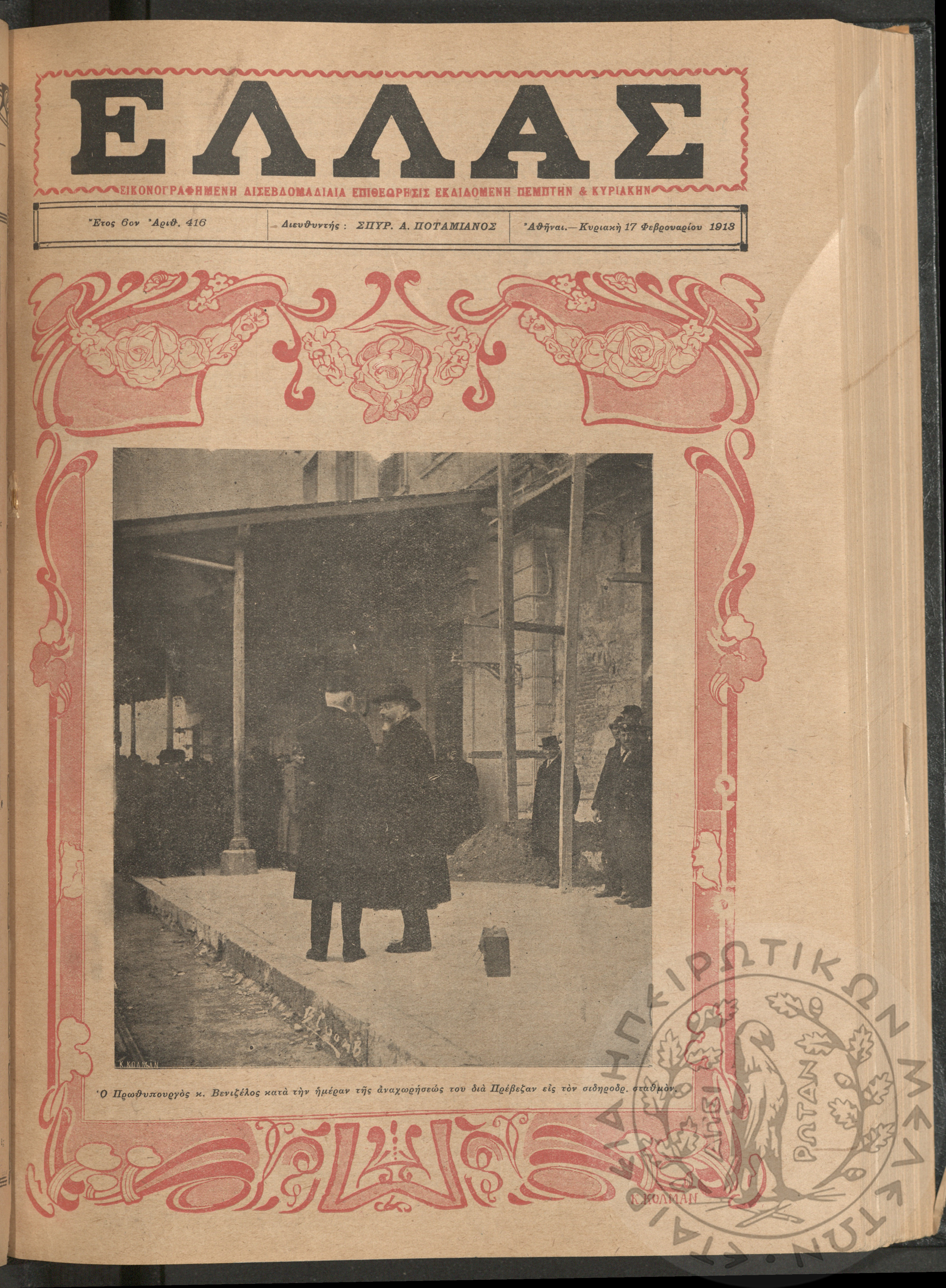 Ελλάς: εικονογραφημένη δισεβδομαδιαία επιθεώρησις εκδιδόμενη Πέμπτην και Κυριακήν (τεύχ. 416)Έτος ΣΤ΄, τεύχ. 416...