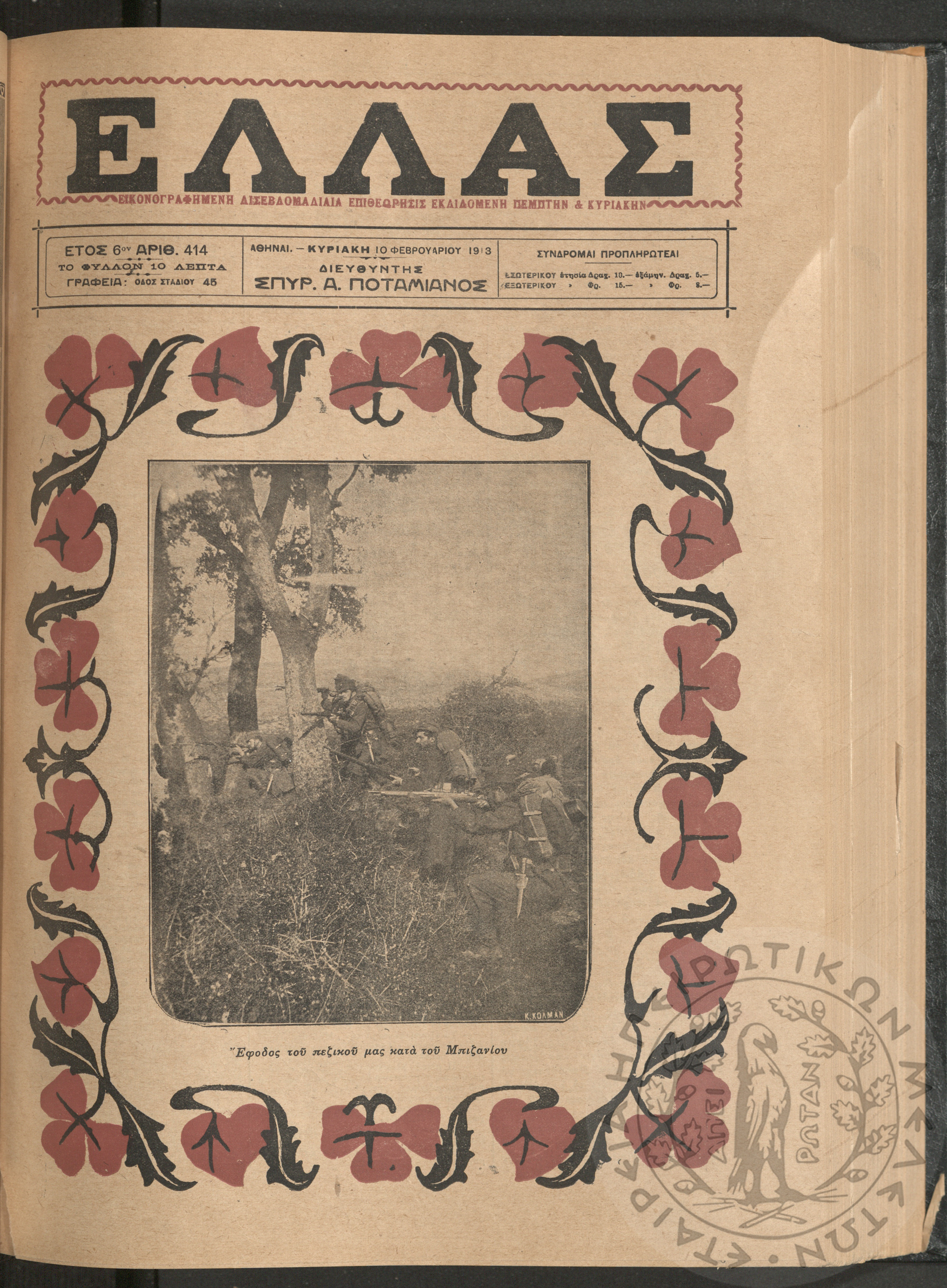 Ελλάς: εικονογραφημένη δισεβδομαδιαία επιθεώρησις εκδιδόμενη Πέμπτην και Κυριακήν (τεύχ. 414)Έτος ΣΤ΄, τεύχ. 414...