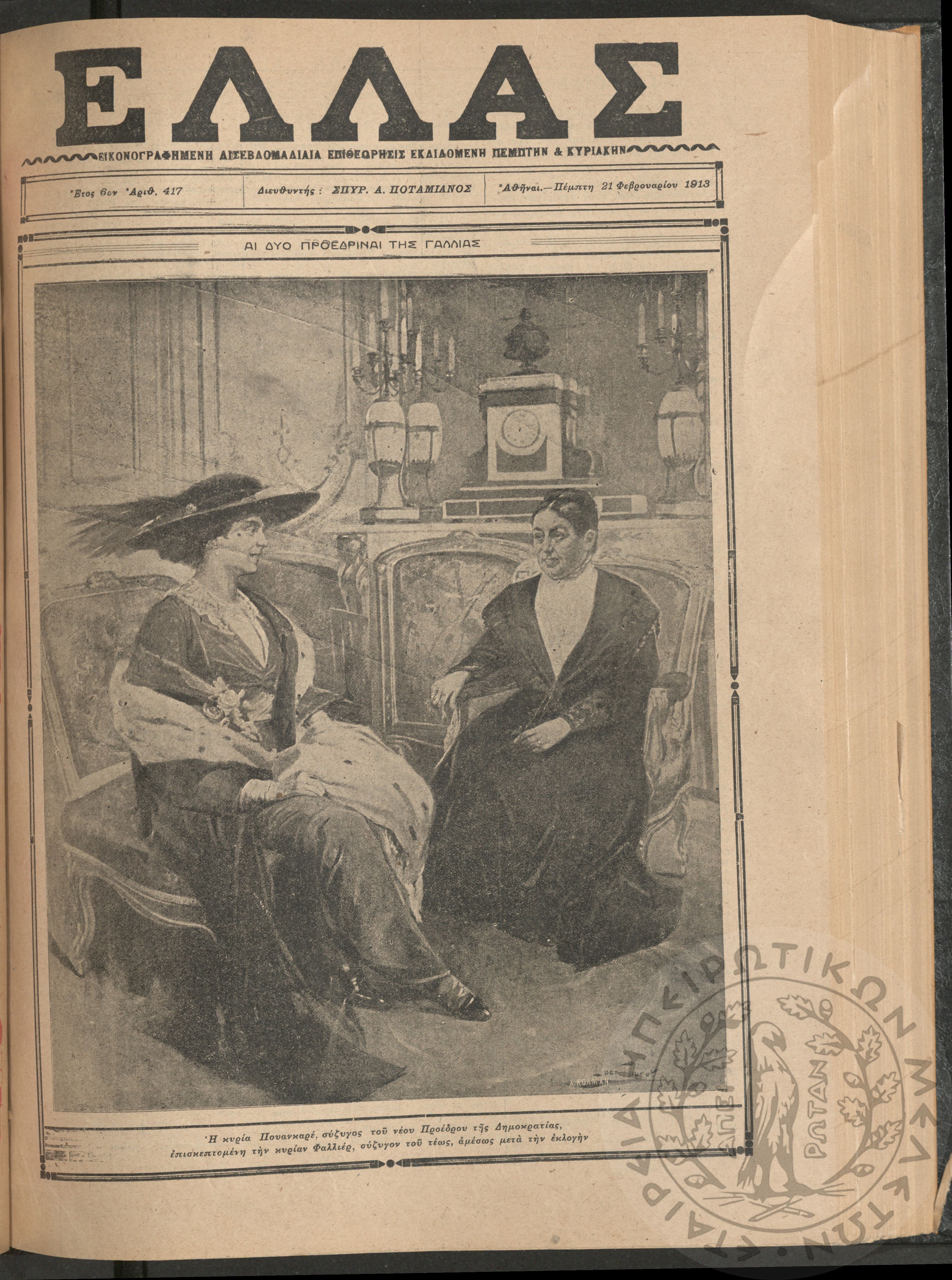 Ελλάς: εικονογραφημένη δισεβδομαδιαία επιθεώρησις εκδιδόμενη Πέμπτην και Κυριακήν (τεύχ. 417)Έτος ΣΤ΄, τεύχ. 417...