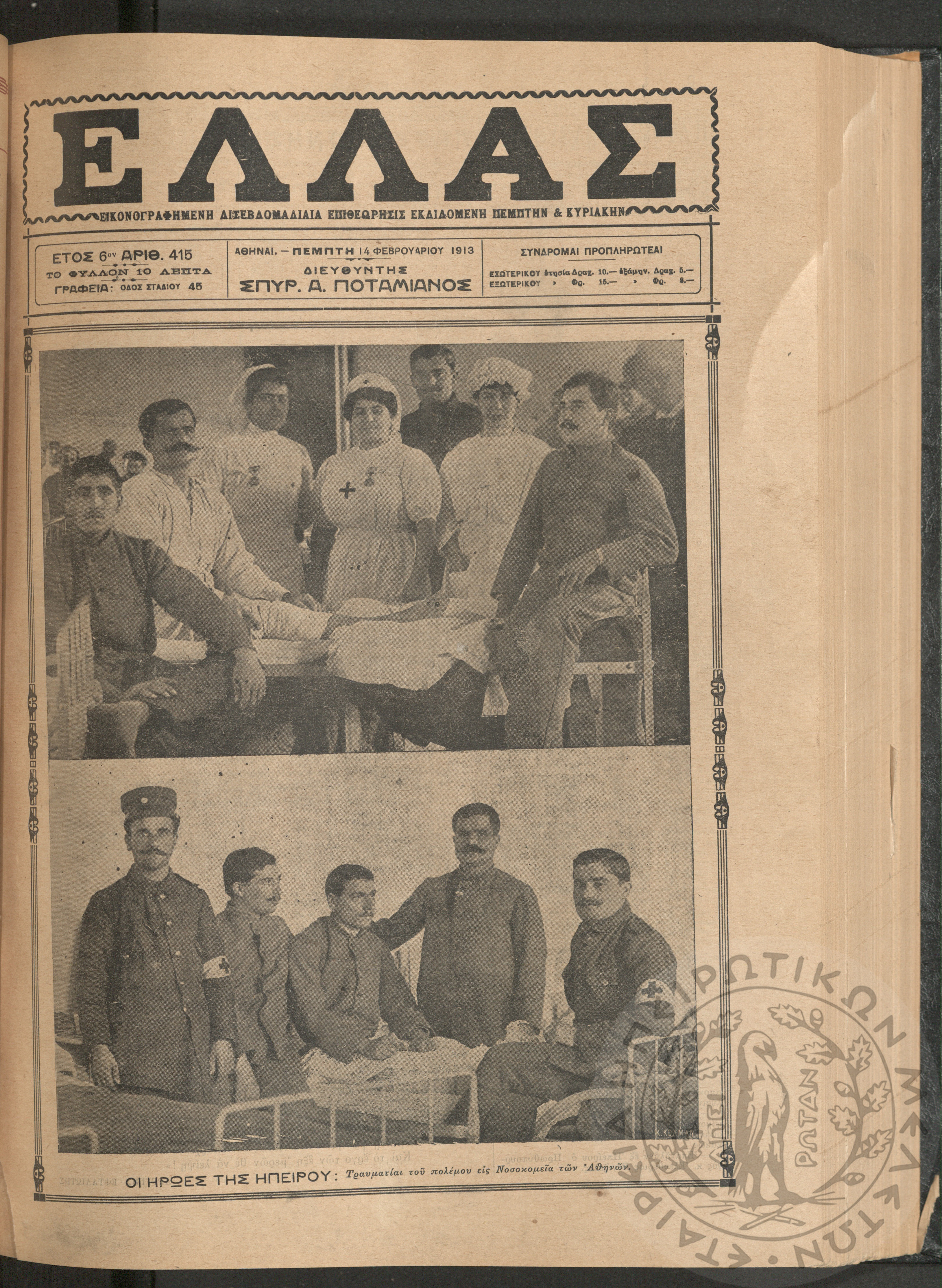 Ελλάς: εικονογραφημένη δισεβδομαδιαία επιθεώρησις εκδιδόμενη Πέμπτην και Κυριακήν (τεύχ. 415)Έτος ΣΤ΄, τεύχ. 415...