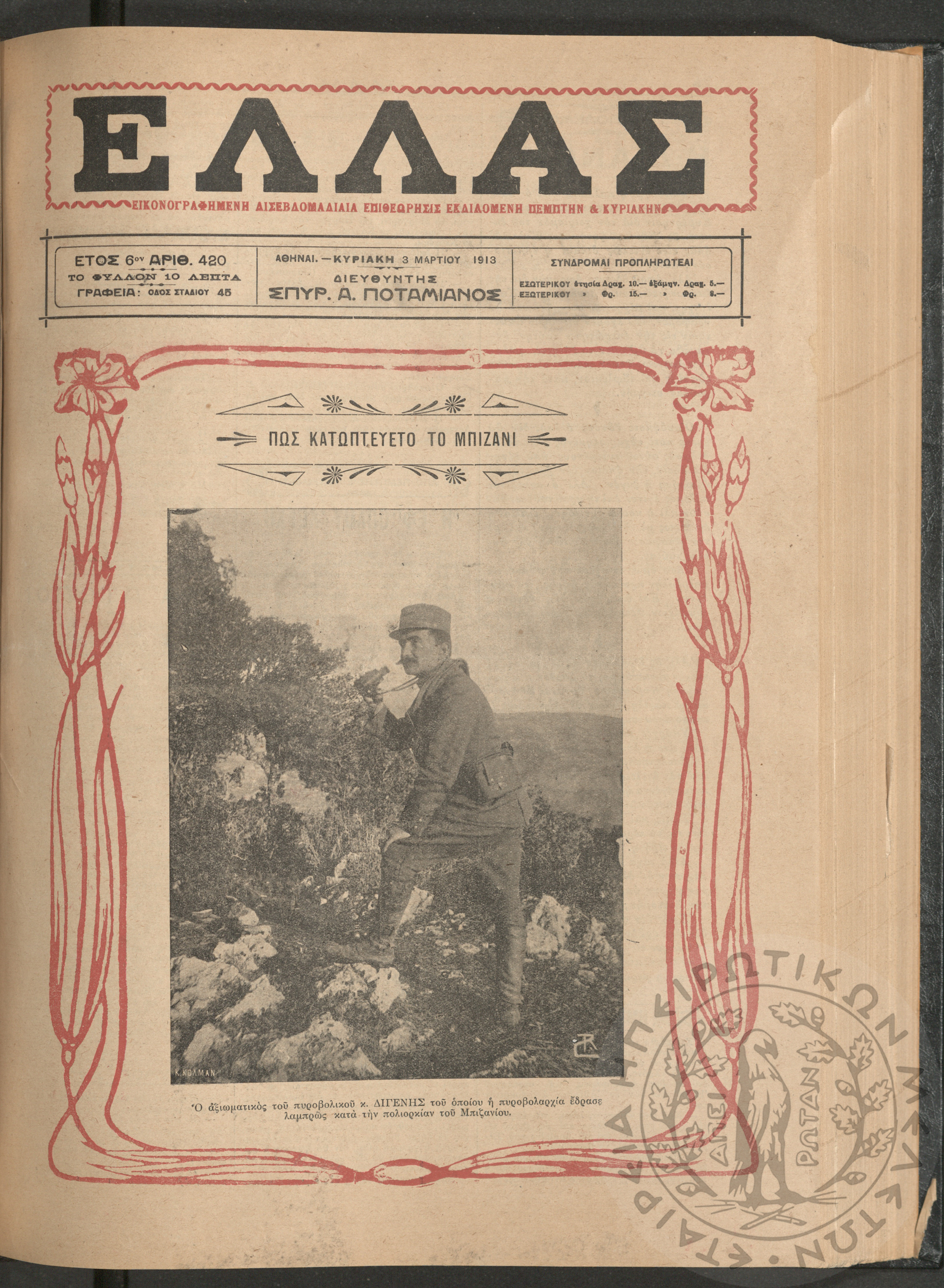 Ελλάς: εικονογραφημένη δισεβδομαδιαία επιθεώρησις εκδιδόμενη Πέμπτην και Κυριακήν (τεύχ. 420)Έτος ΣΤ΄, τεύχ. 420...