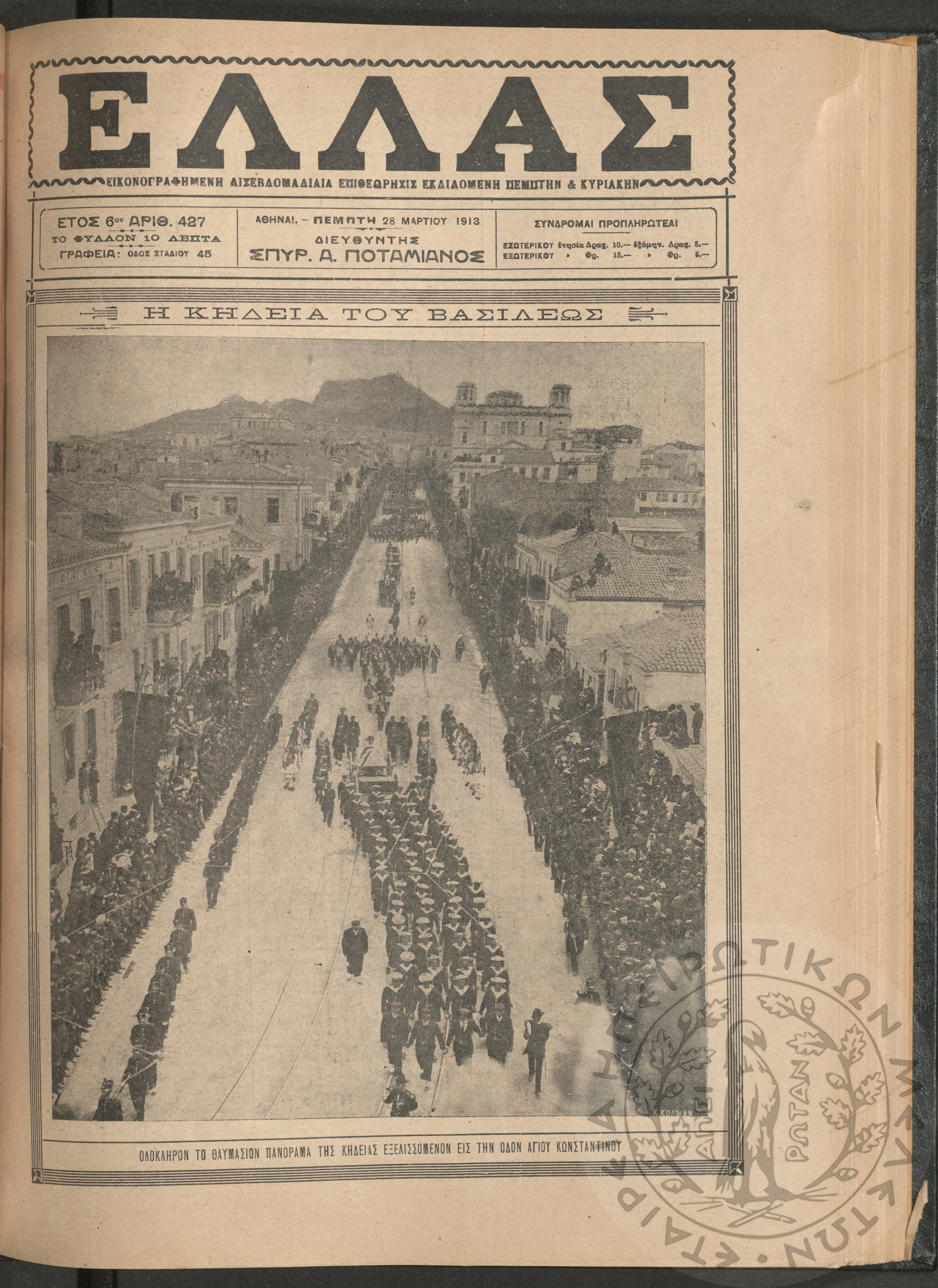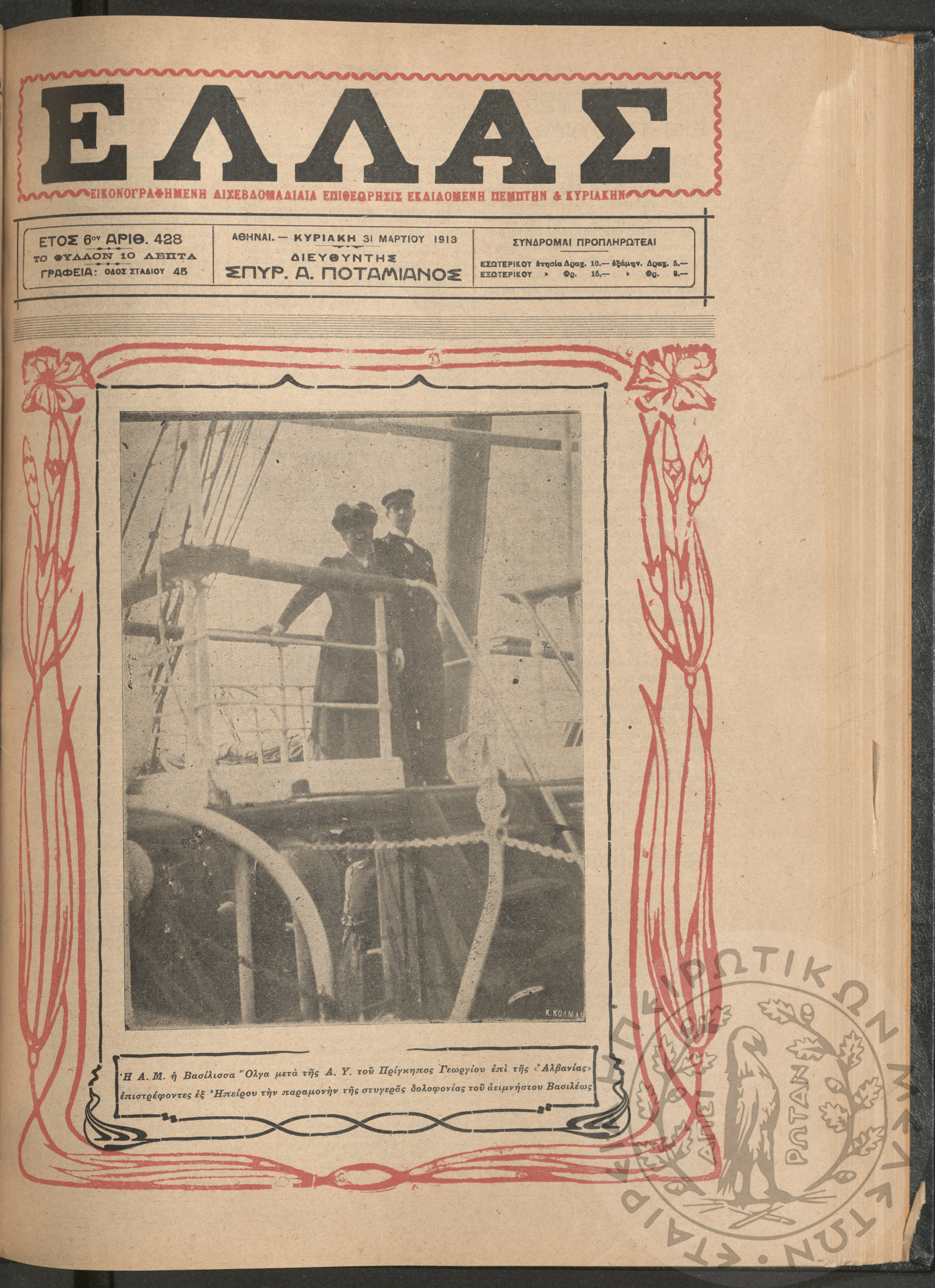 Ελλάς: εικονογραφημένη δισεβδομαδιαία επιθεώρησις εκδιδόμενη Πέμπτην και Κυριακήν (τεύχ. 428)Έτος ΣΤ΄, τεύχ. 428...
