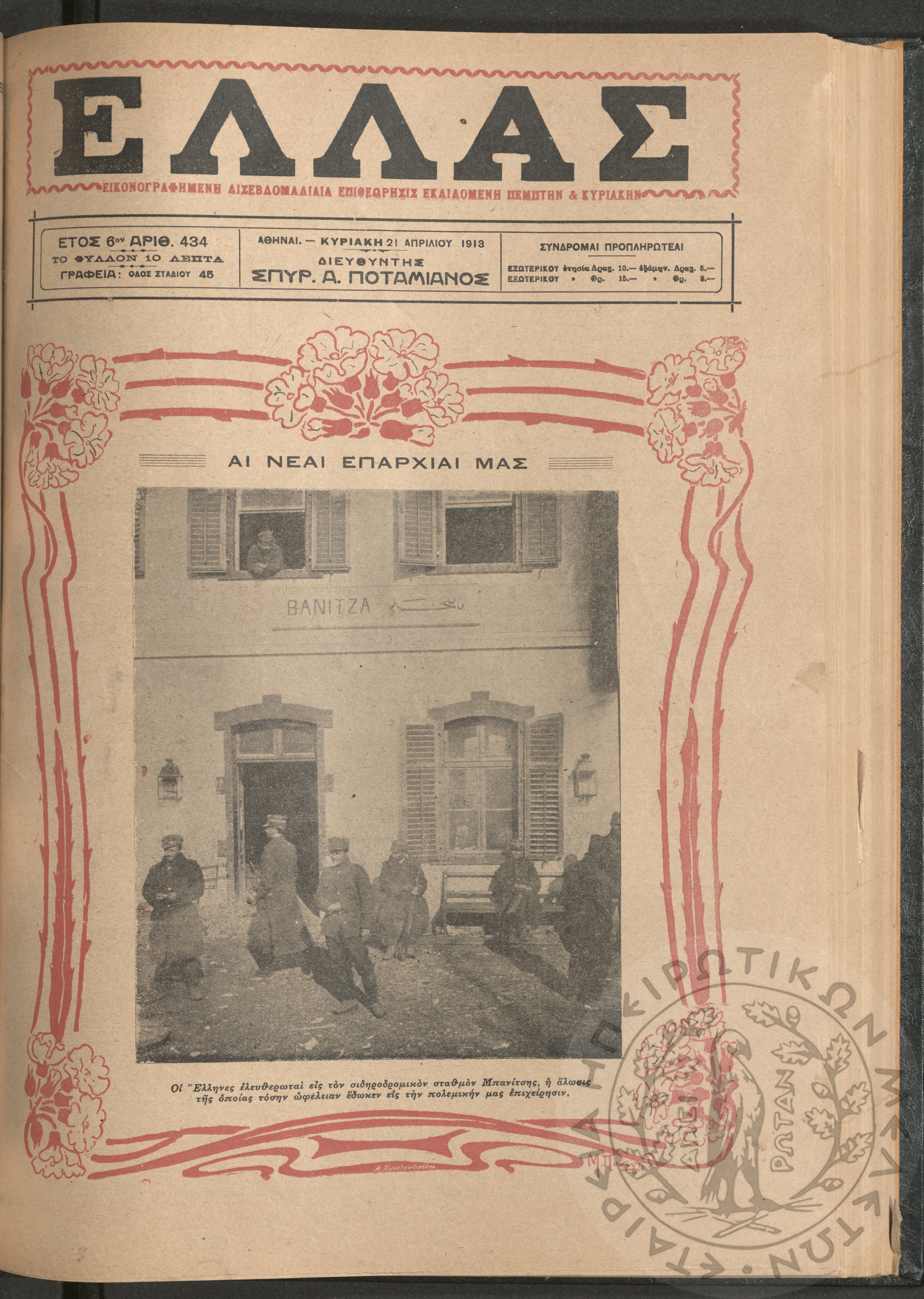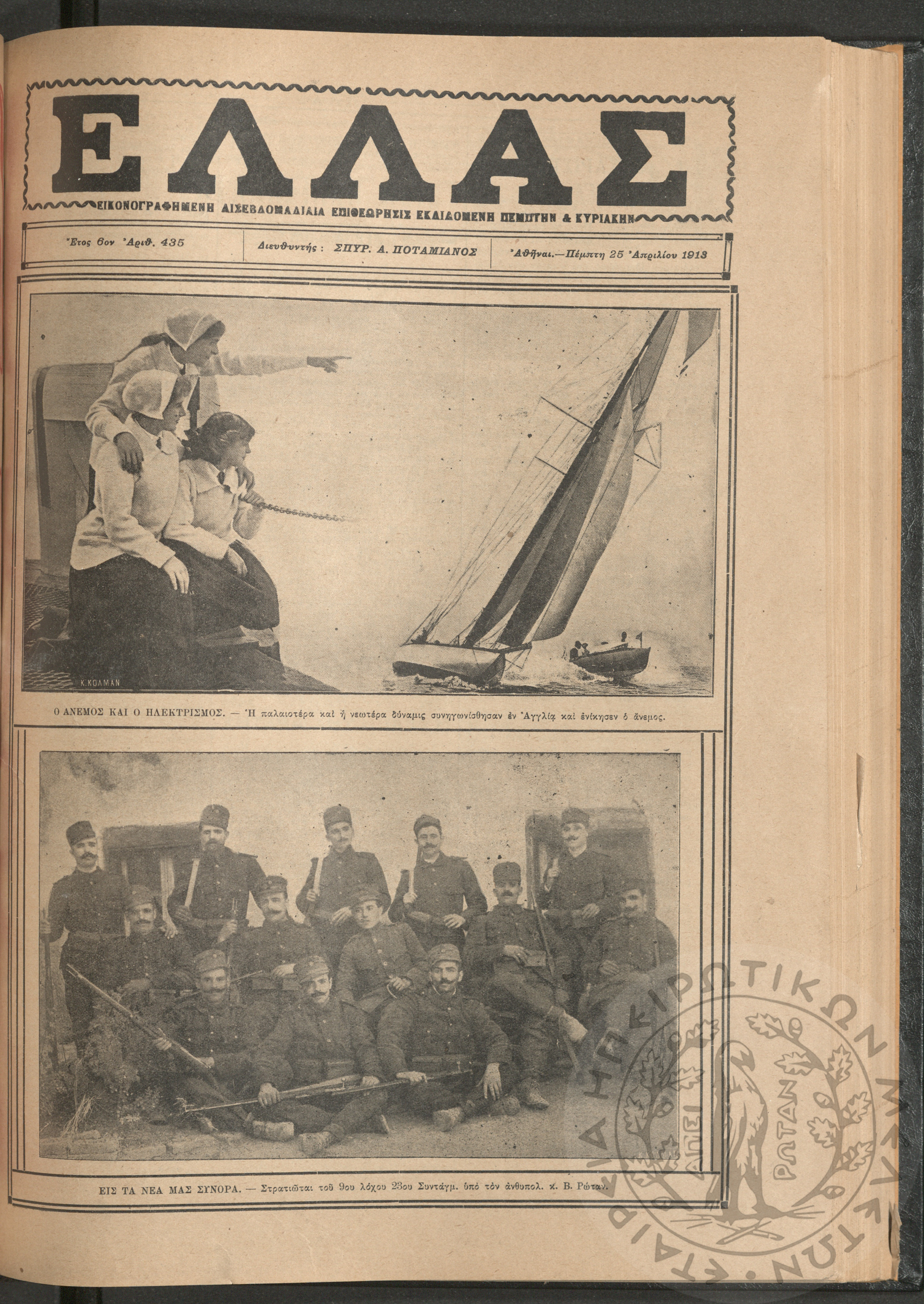 Ελλάς: εικονογραφημένη δισεβδομαδιαία επιθεώρησις εκδιδόμενη Πέμπτην και Κυριακήν (τεύχ. 435)Έτος ΣΤ', τεύχ. 435...