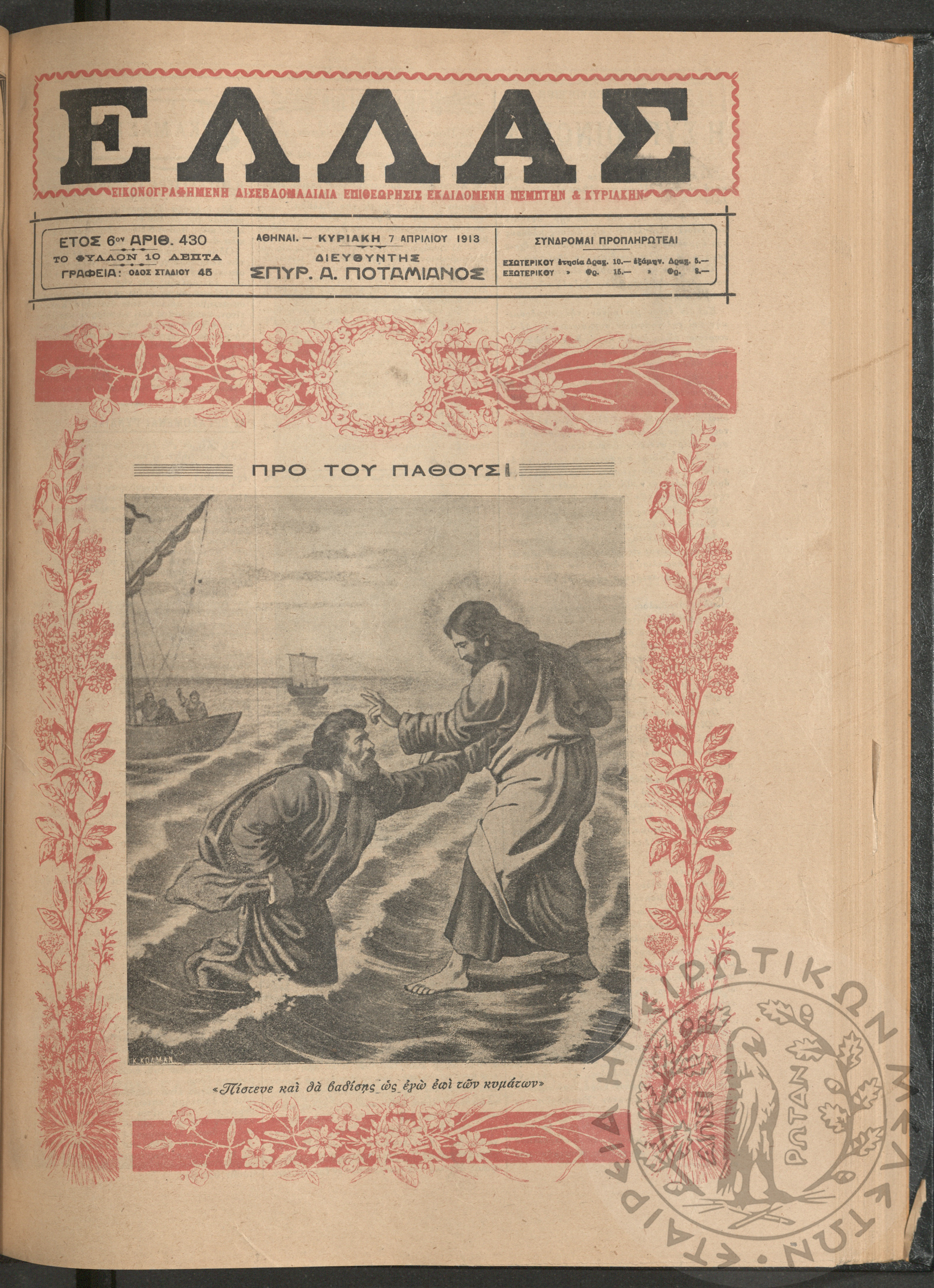 Ελλάς: εικονογραφημένη δισεβδομαδιαία επιθεώρησις εκδιδόμενη Πέμπτην και Κυριακήν (τεύχ. 430)Έτος ΣΤ΄, τεύχ. 430...