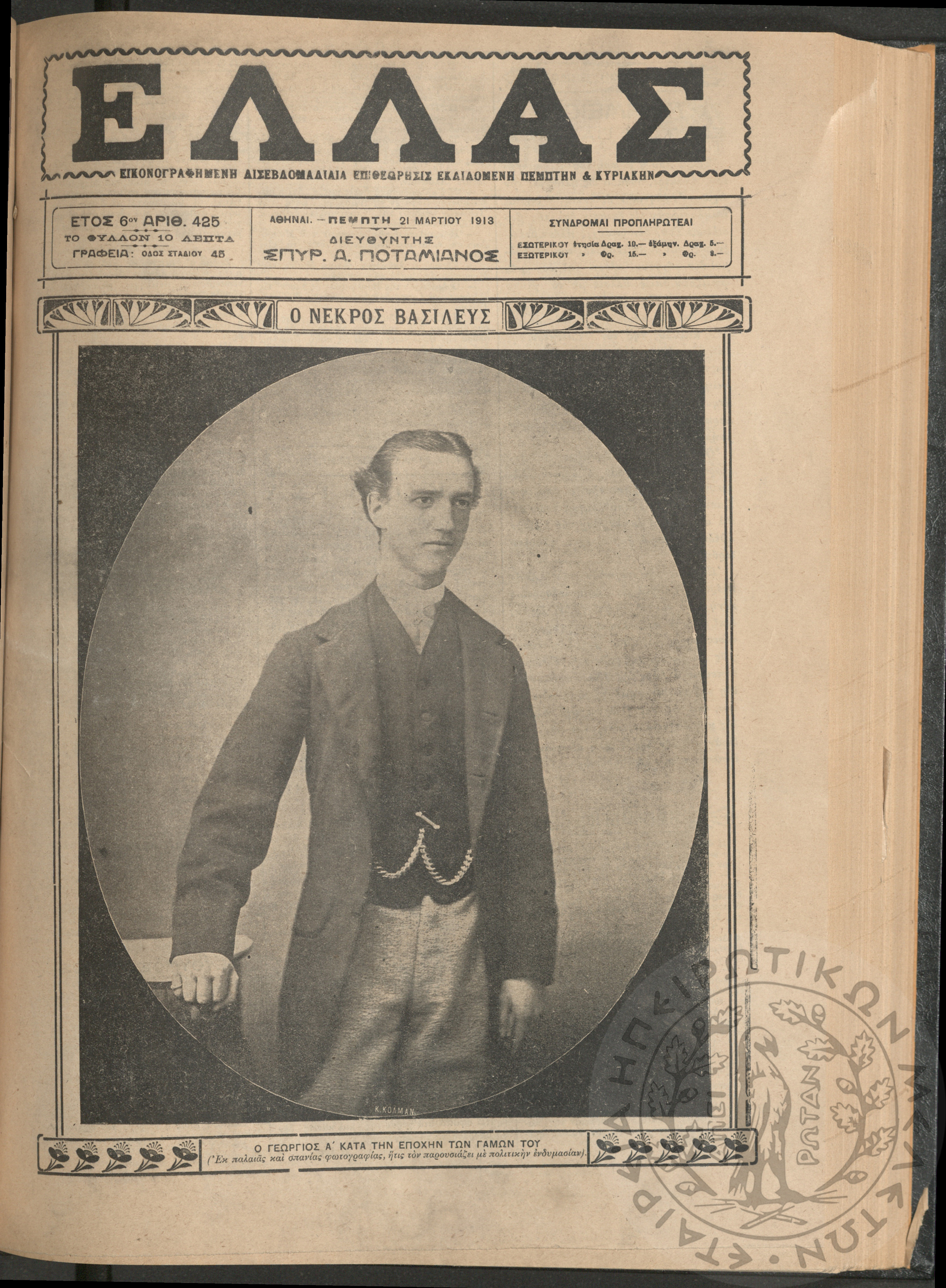 Ελλάς: εικονογραφημένη δισεβδομαδιαία επιθεώρησις εκδιδόμενη Πέμπτην και Κυριακήν (τεύχ. 425)Έτος ΣΤ΄, τεύχ. 425...