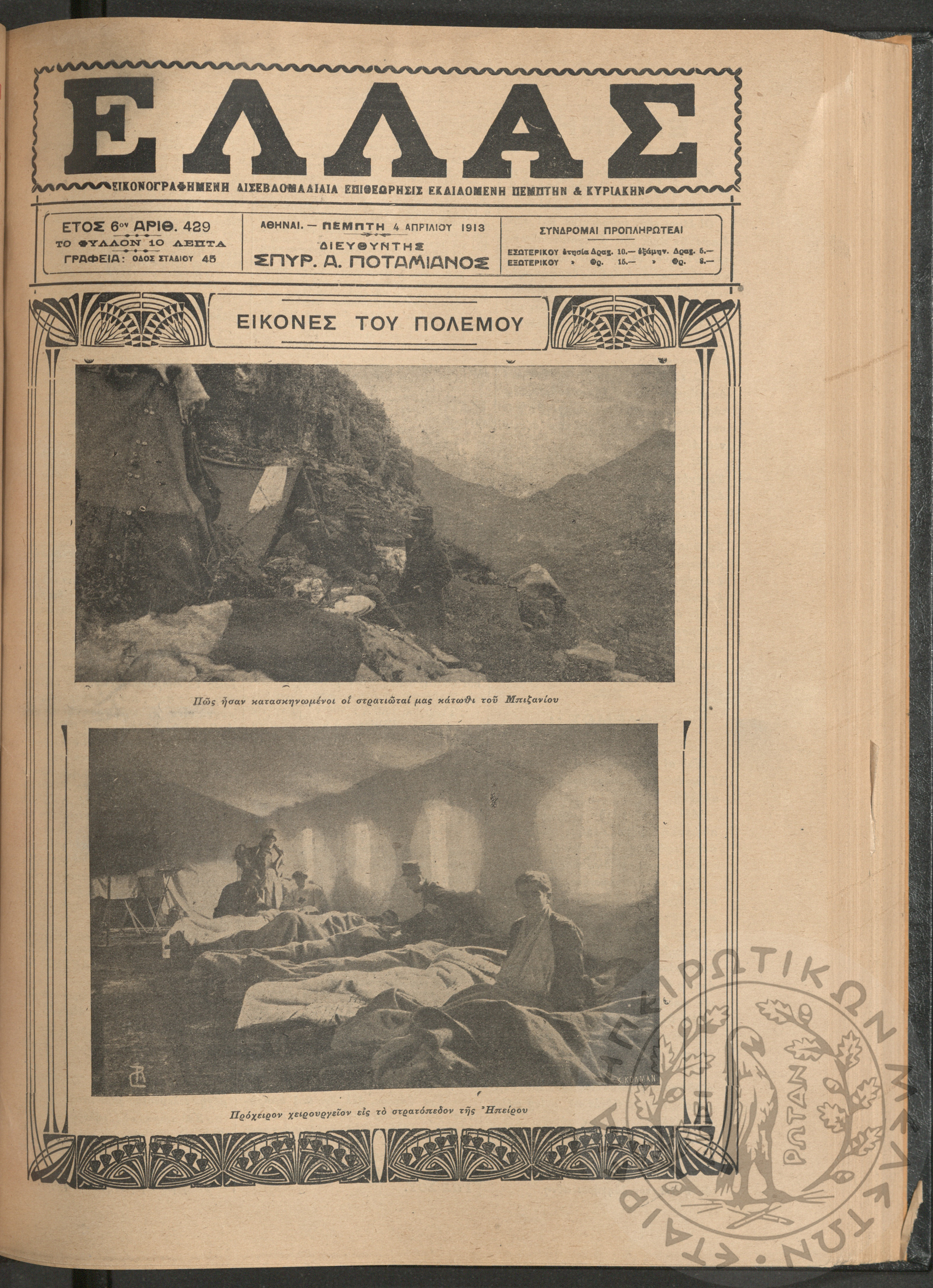 Ελλάς: εικονογραφημένη δισεβδομαδιαία επιθεώρησις εκδιδόμενη Πέμπτην και Κυριακήν (τεύχ. 429)Έτος ΣΤ΄, τεύχ. 429...