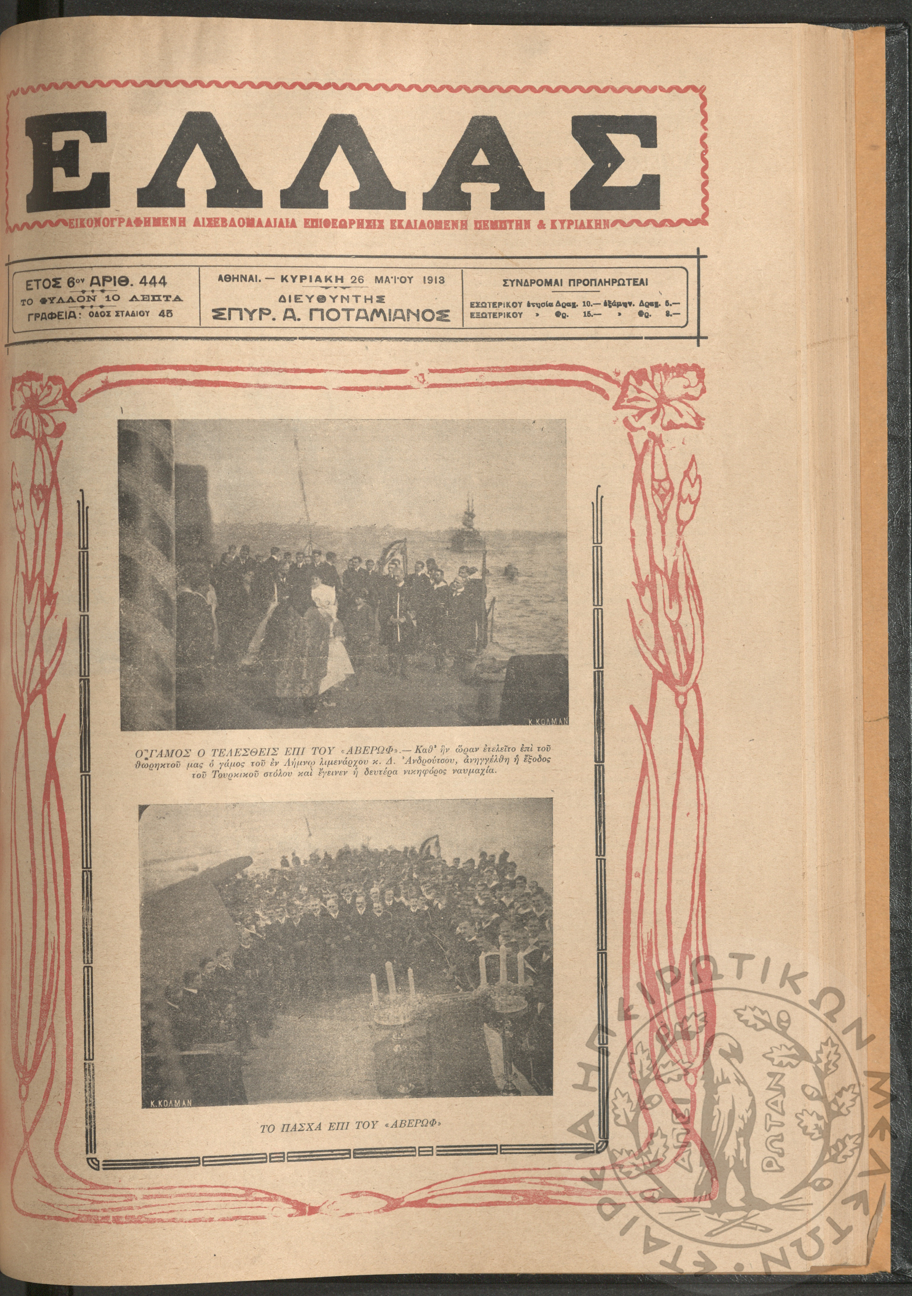 Ελλάς: εικονογραφημένη δισεβδομαδιαία επιθεώρησις εκδιδόμενη Πέμπτην και Κυριακήν (τεύχ. 444)Έτος ΣΤ', τεύχ. 444...
