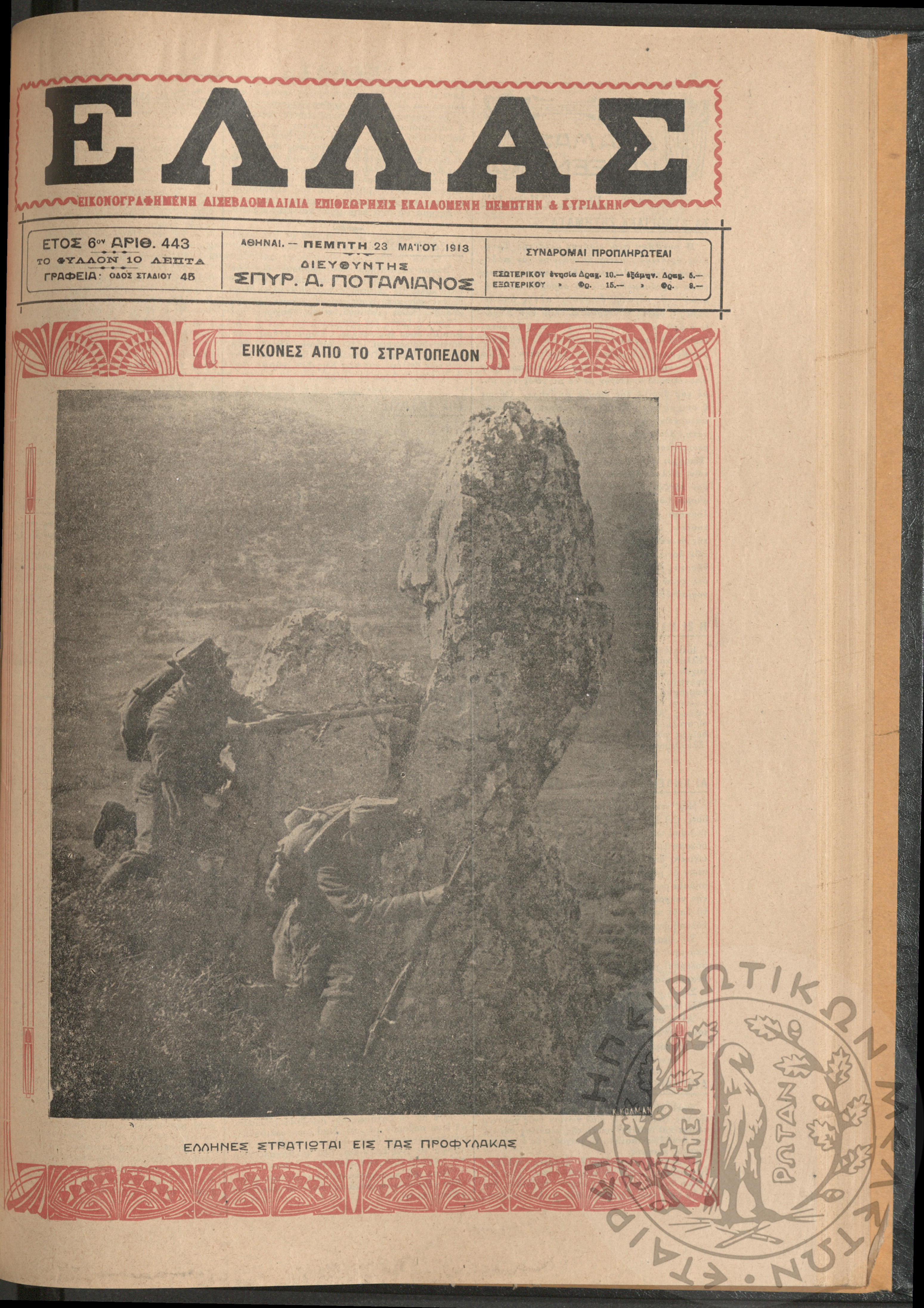 Ελλάς: εικονογραφημένη δισεβδομαδιαία επιθεώρησις εκδιδόμενη Πέμπτην και Κυριακήν (τεύχ. 443)Έτος ΣΤ', τεύχ. 443...