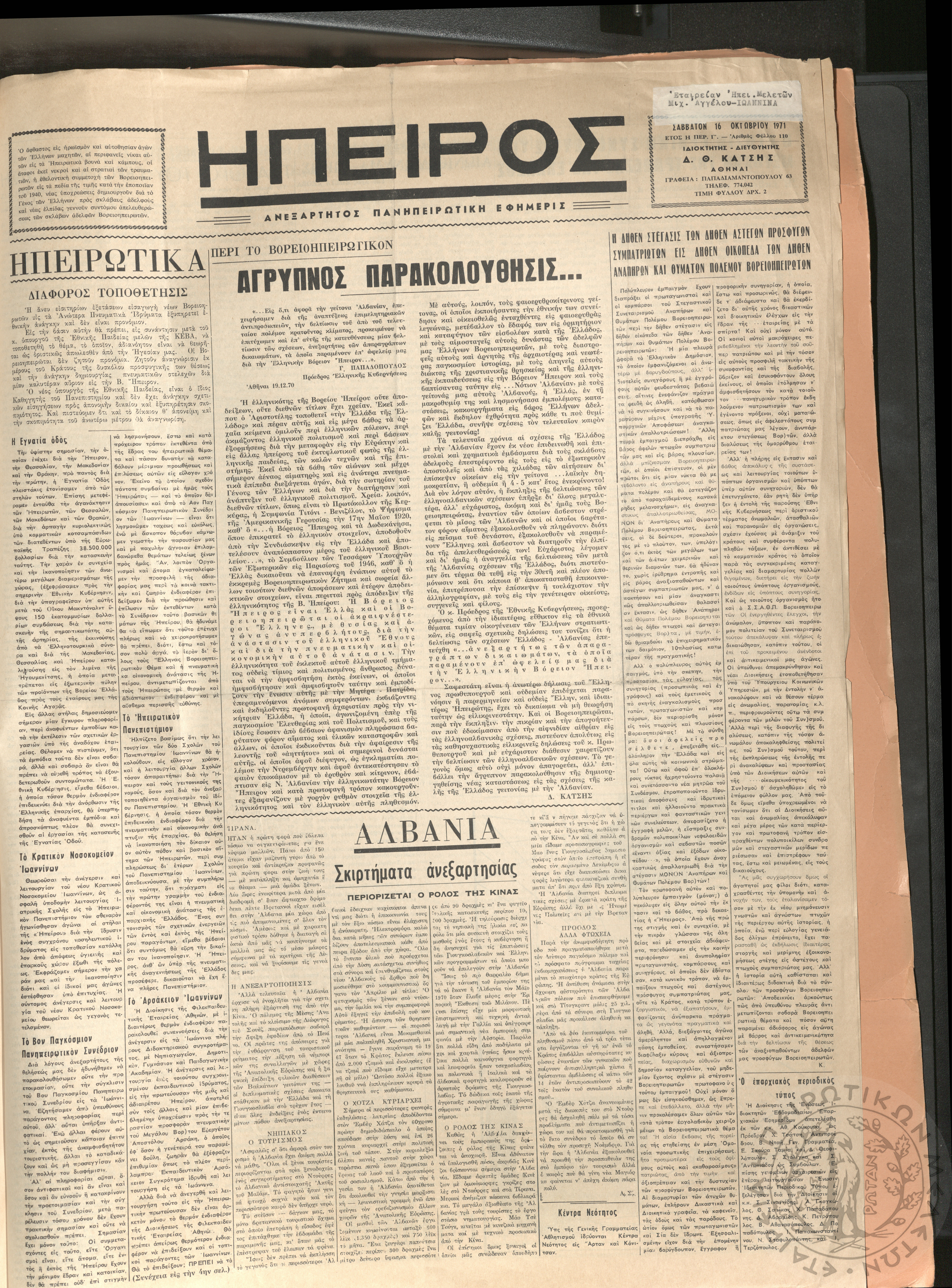 Ήπειρος: ανεξάρτητος Πανηπειρωτική εφημερίς, 1971, φ. 110
