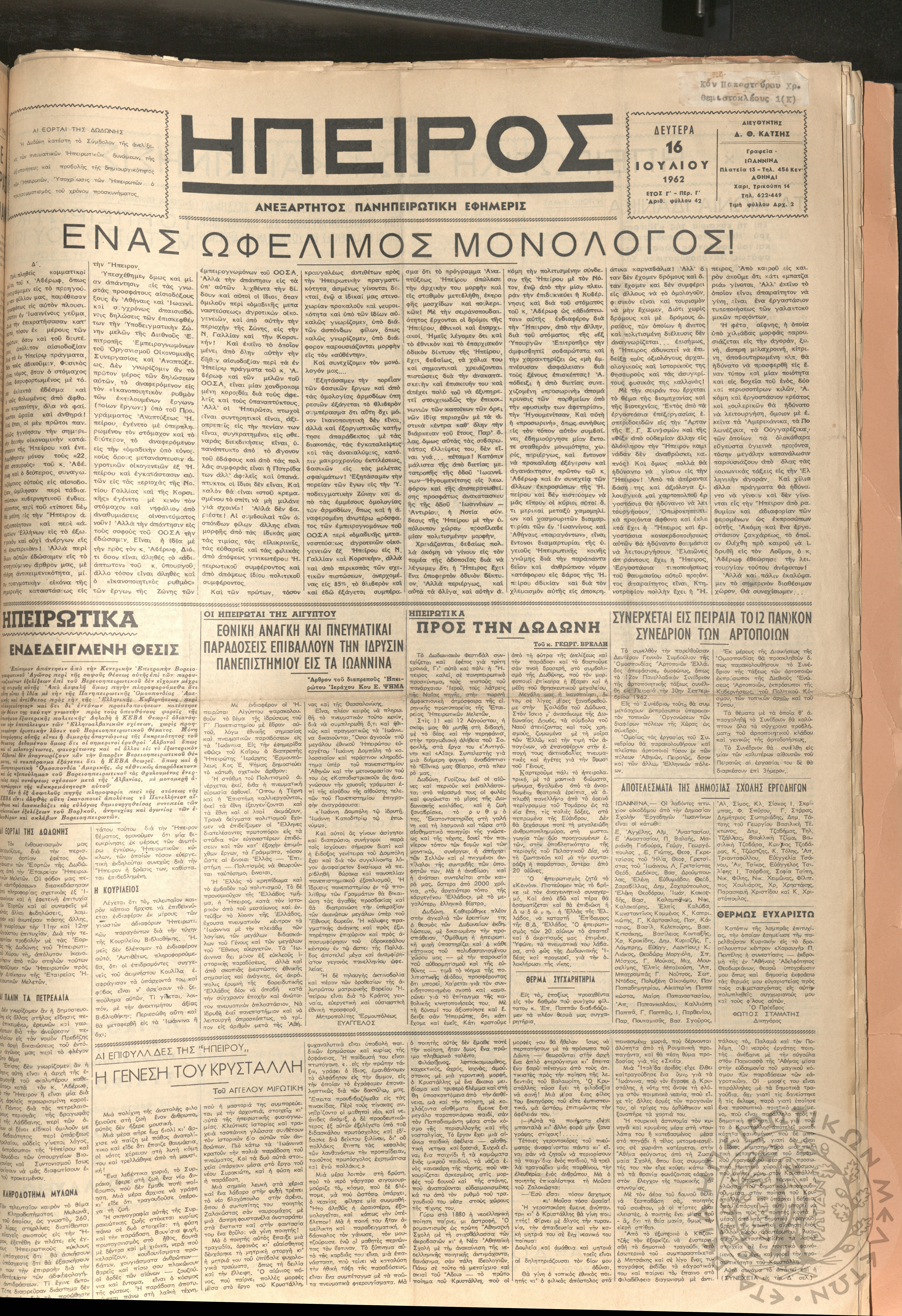 Ήπειρος: ανεξάρτητος Πανηπειρωτική εφημερίς, 1962, φ. 42