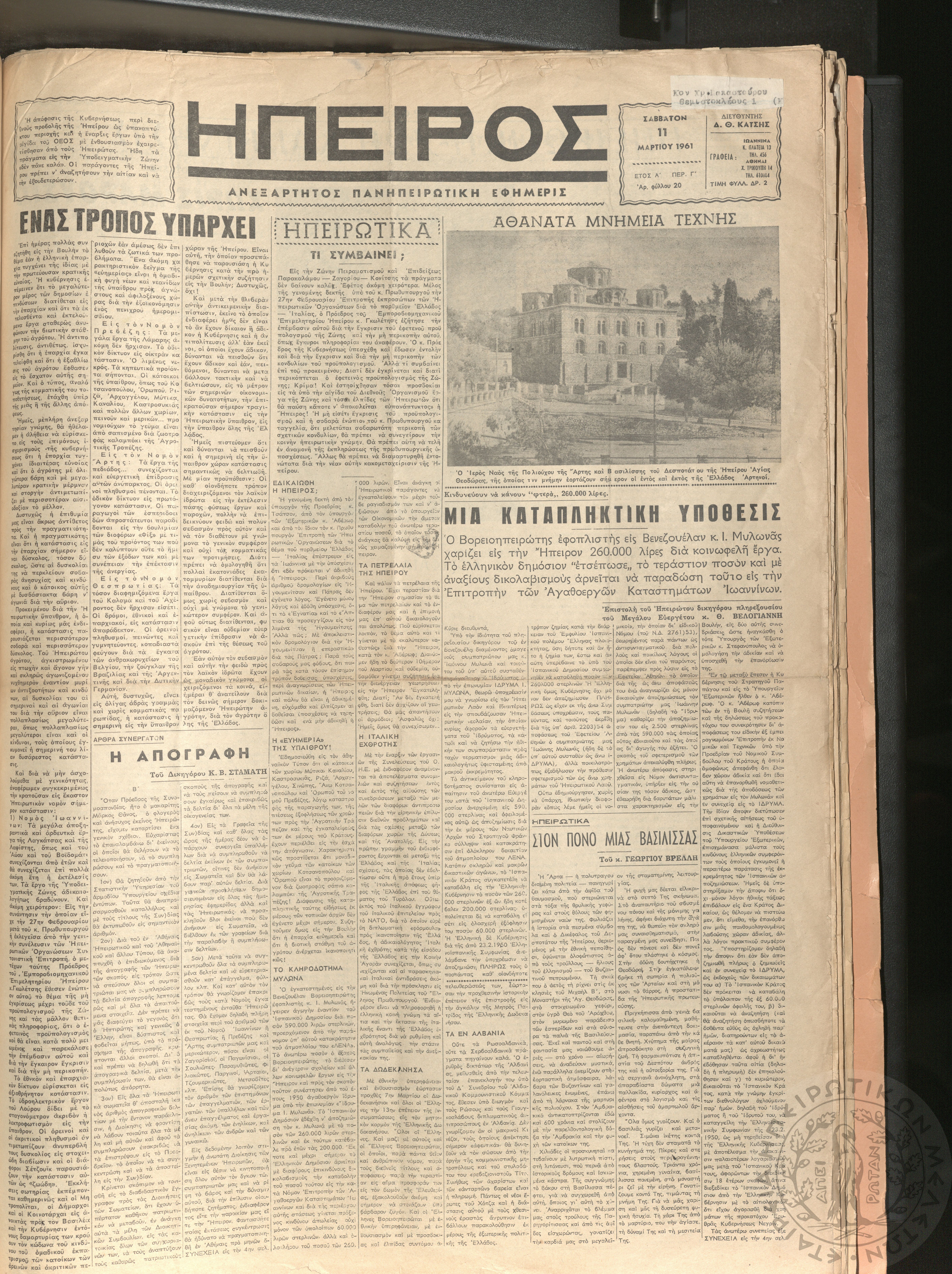 Ήπειρος: ανεξάρτητος Πανηπειρωτική εφημερίς, 1961, φ. 26