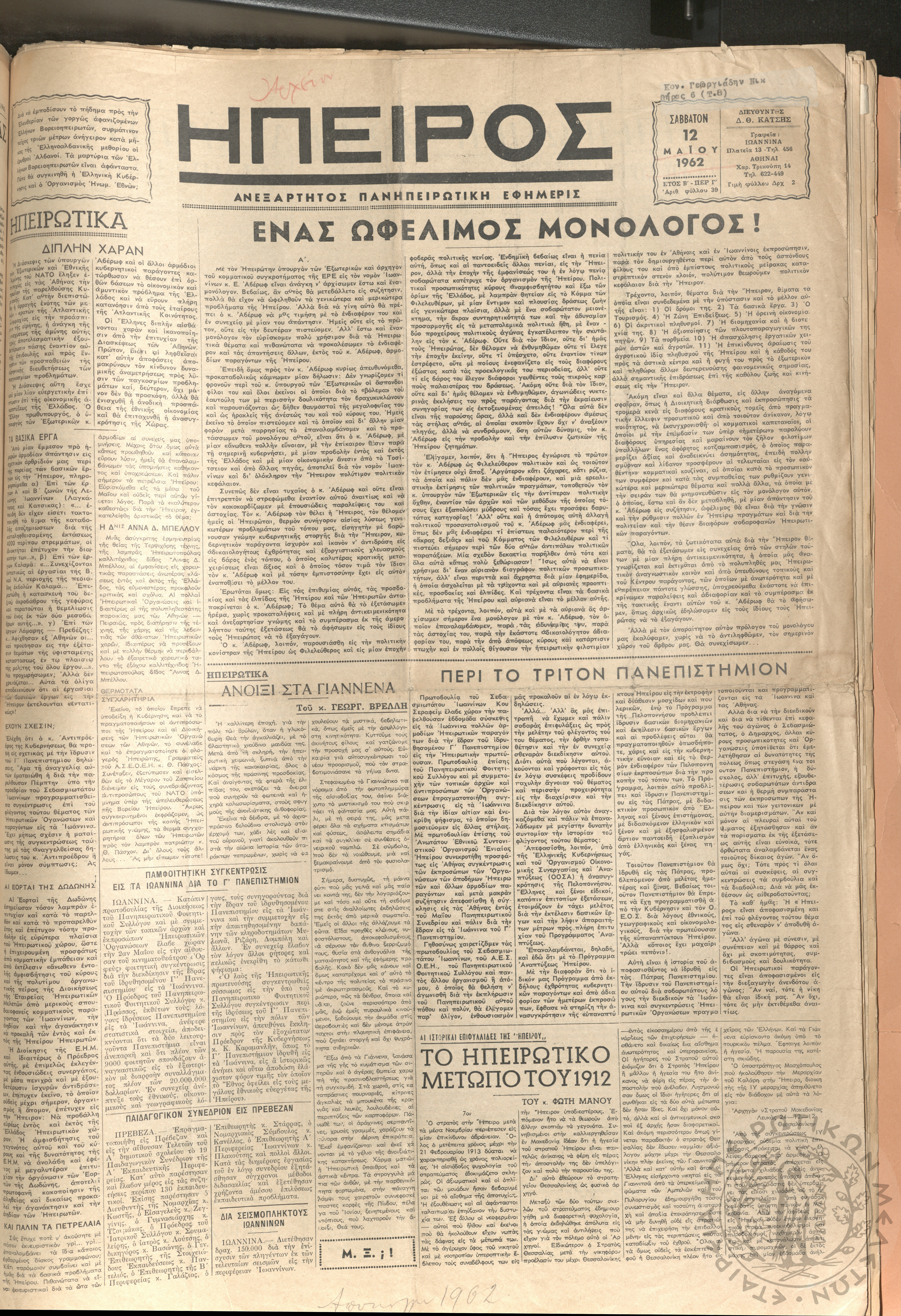 Ήπειρος: ανεξάρτητος Πανηπειρωτική εφημερίς, 1962, φ. 39