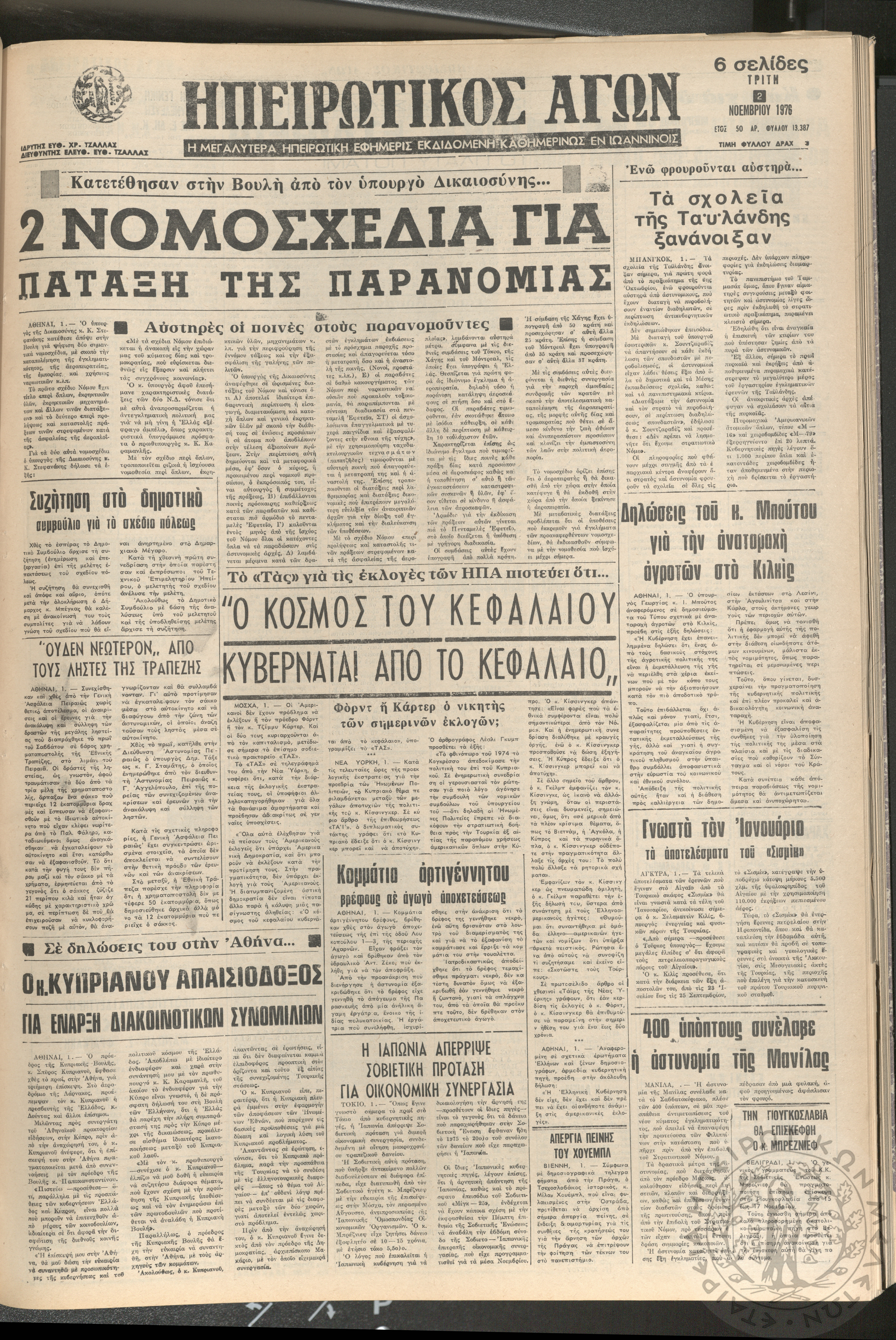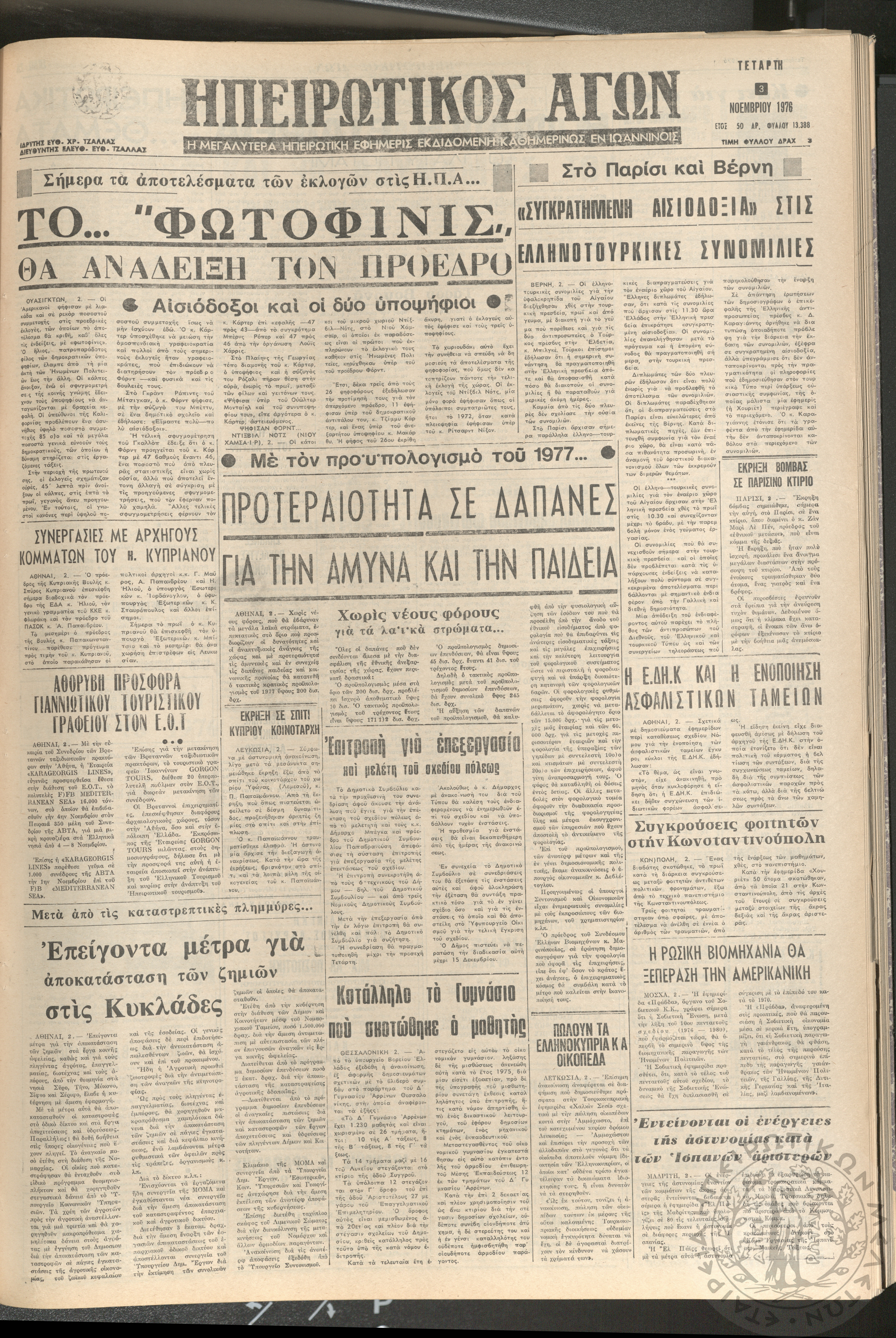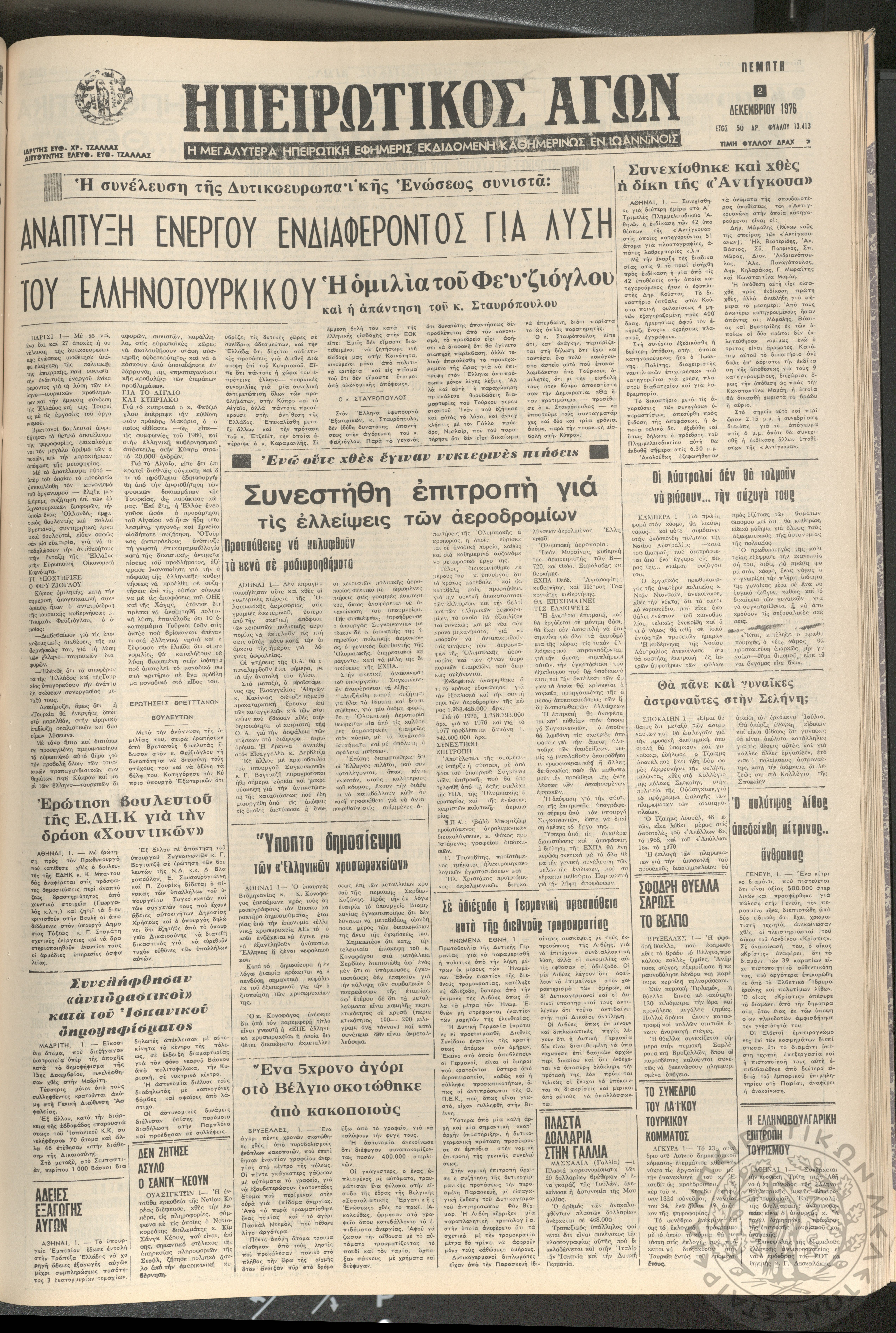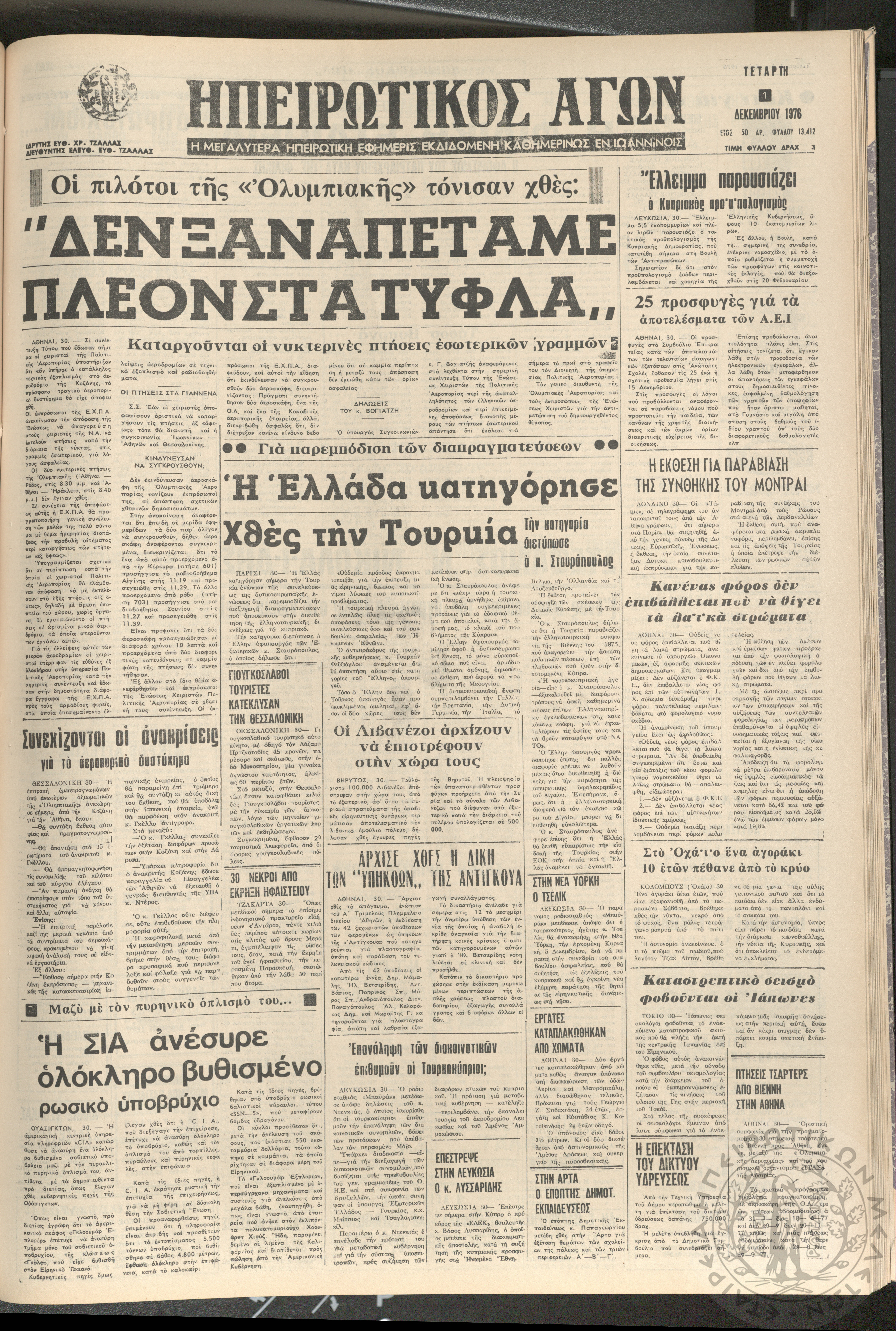 Ηπειρωτικός Αγών: η μεγαλυτέρα ηπειρωτική εφημερίς εκδιδόμενη καθημερινώς εν Ιωαννίνοις 1976 (φ. 13412)Έτος 50, φ. 13412...