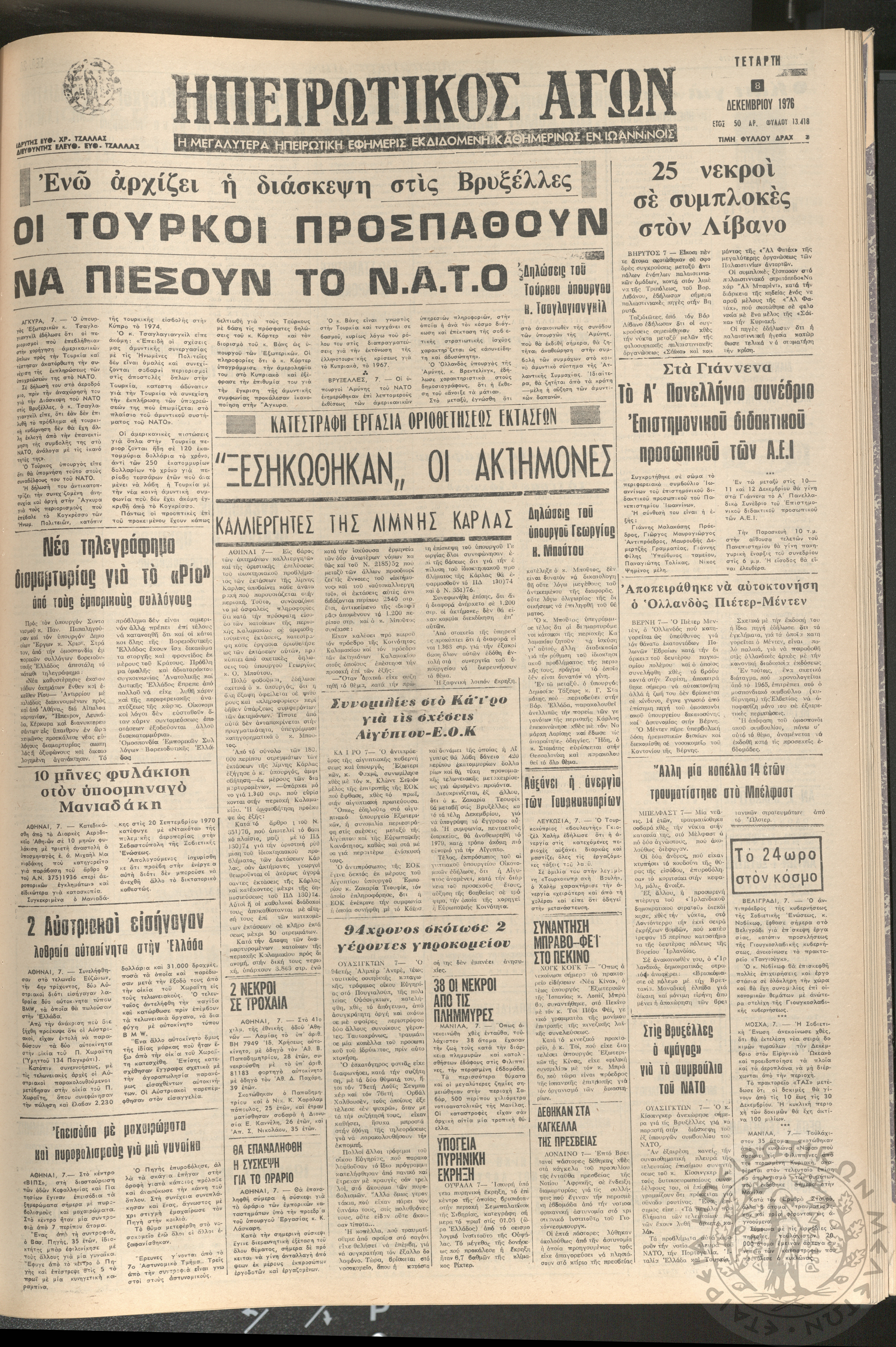 Ηπειρωτικός Αγών: η μεγαλυτέρα ηπειρωτική εφημερίς εκδιδόμενη καθημερινώς εν Ιωαννίνοις 1976 (φ. 13342)Έτος 50, φ. 13342...
