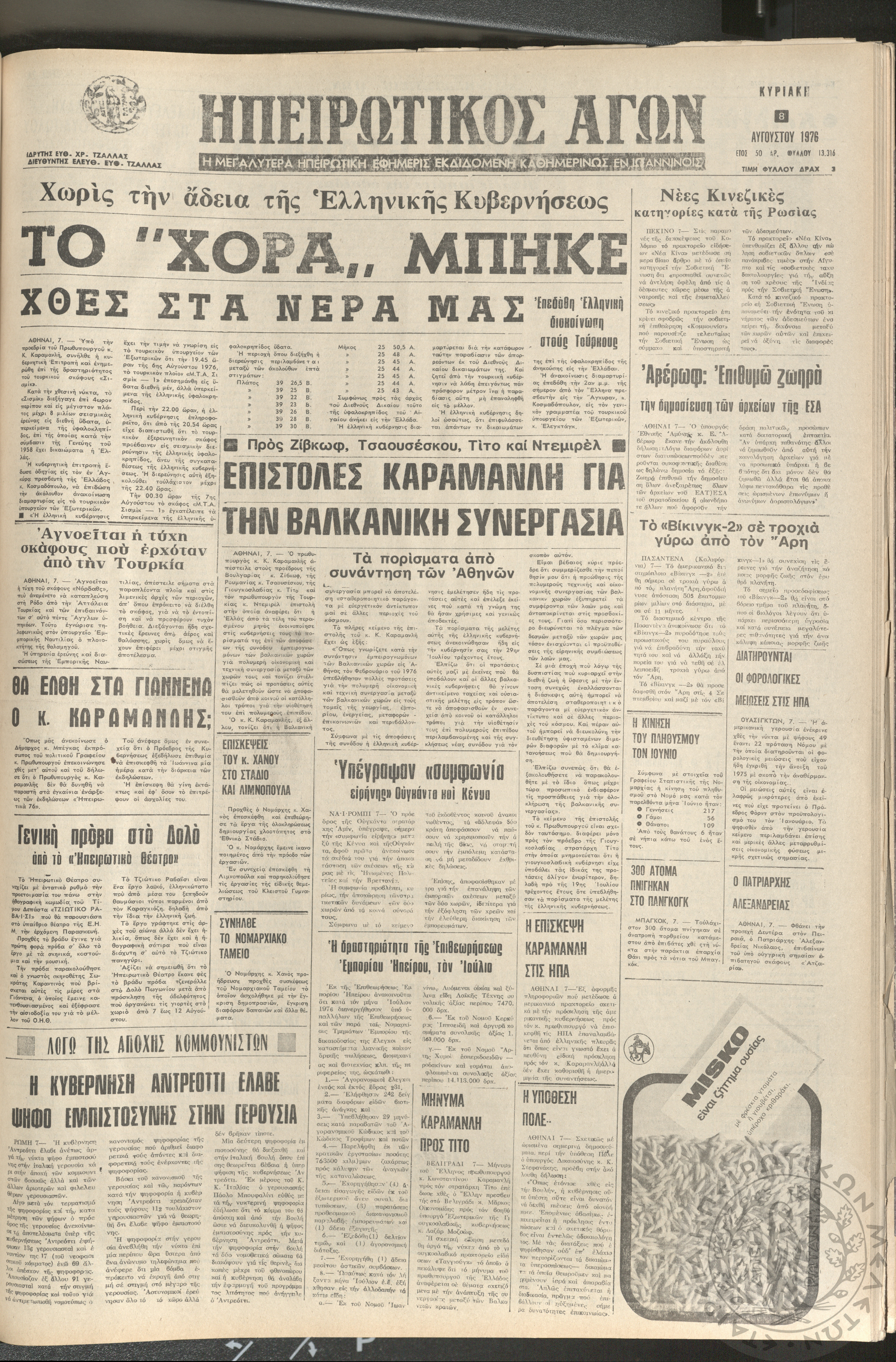 Ηπειρωτικός Αγών: η μεγαλυτέρα ηπειρωτική εφημερίς εκδιδόμενη καθημερινώς εν Ιωαννίνοις 1976 (φ. 13316)Έτος 50, φ. 13316...