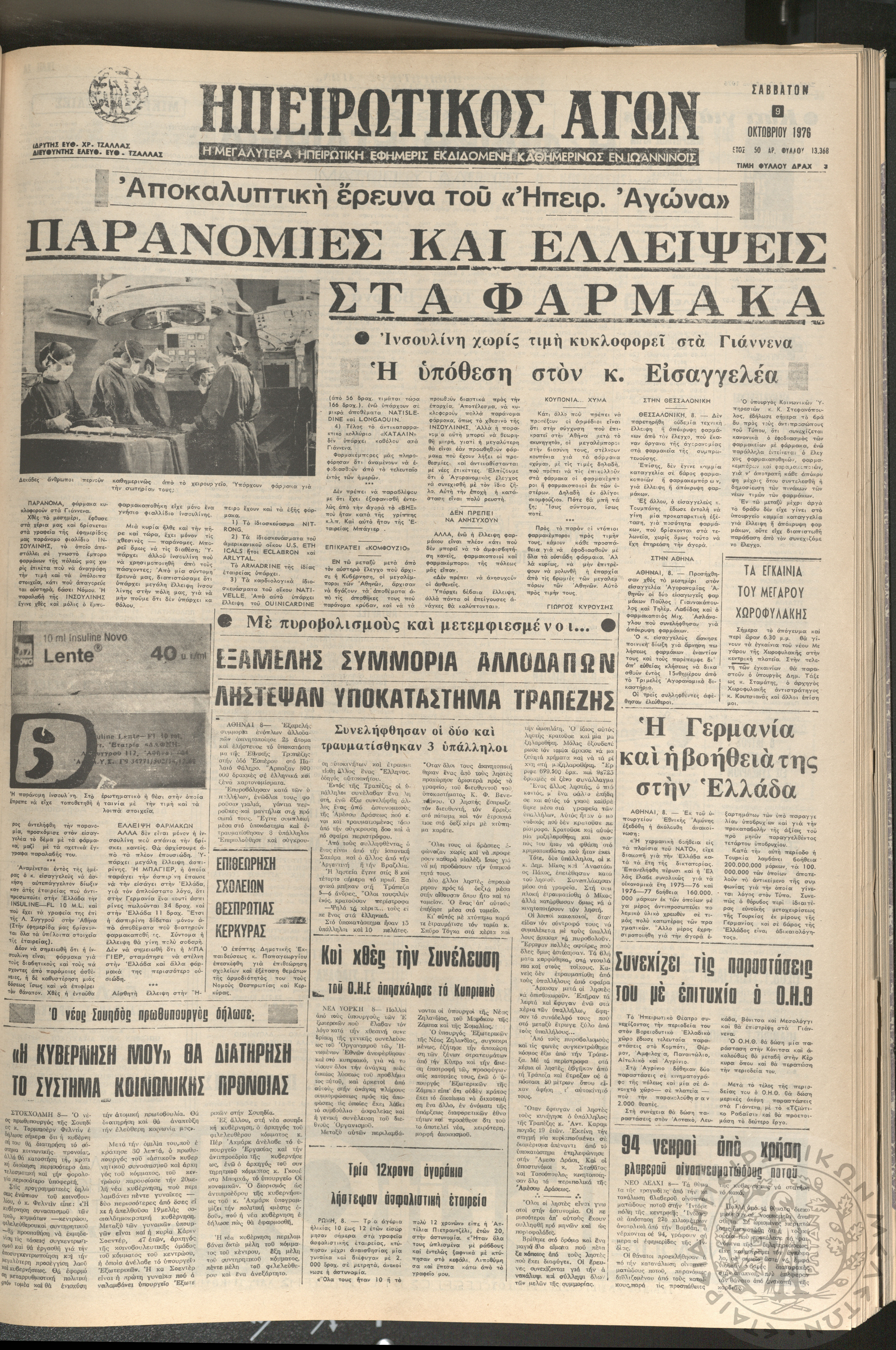 Ηπειρωτικός Αγών: η μεγαλυτέρα ηπειρωτική εφημερίς εκδιδόμενη καθημερινώς εν Ιωαννίνοις 1976 (φ. 13393)Έτος 50, φ. 13393...