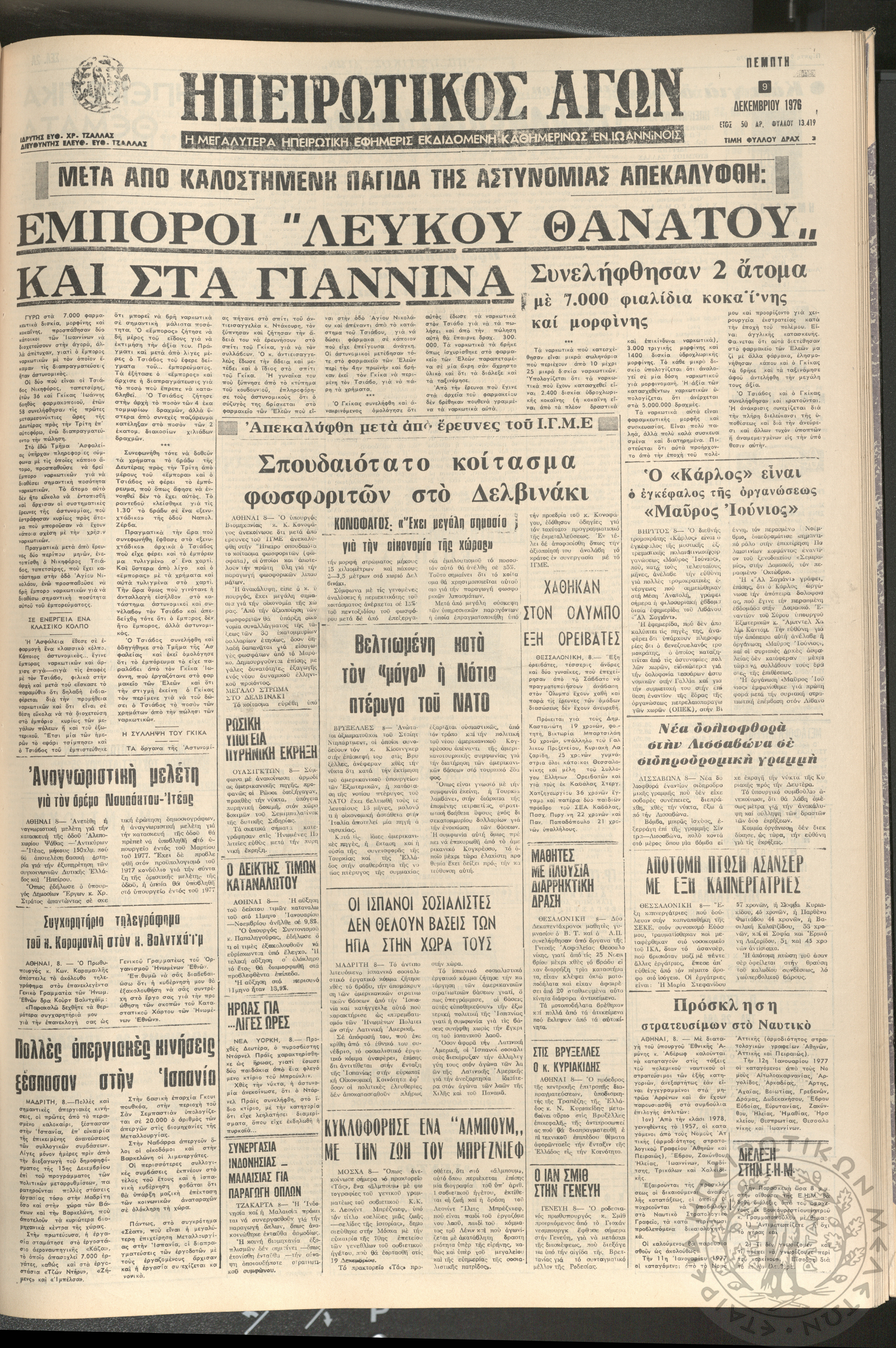 Ηπειρωτικός Αγών: η μεγαλυτέρα ηπειρωτική εφημερίς εκδιδόμενη καθημερινώς εν Ιωαννίνοις 1976 (φ. 13419)Έτος 50, φ. 13419...