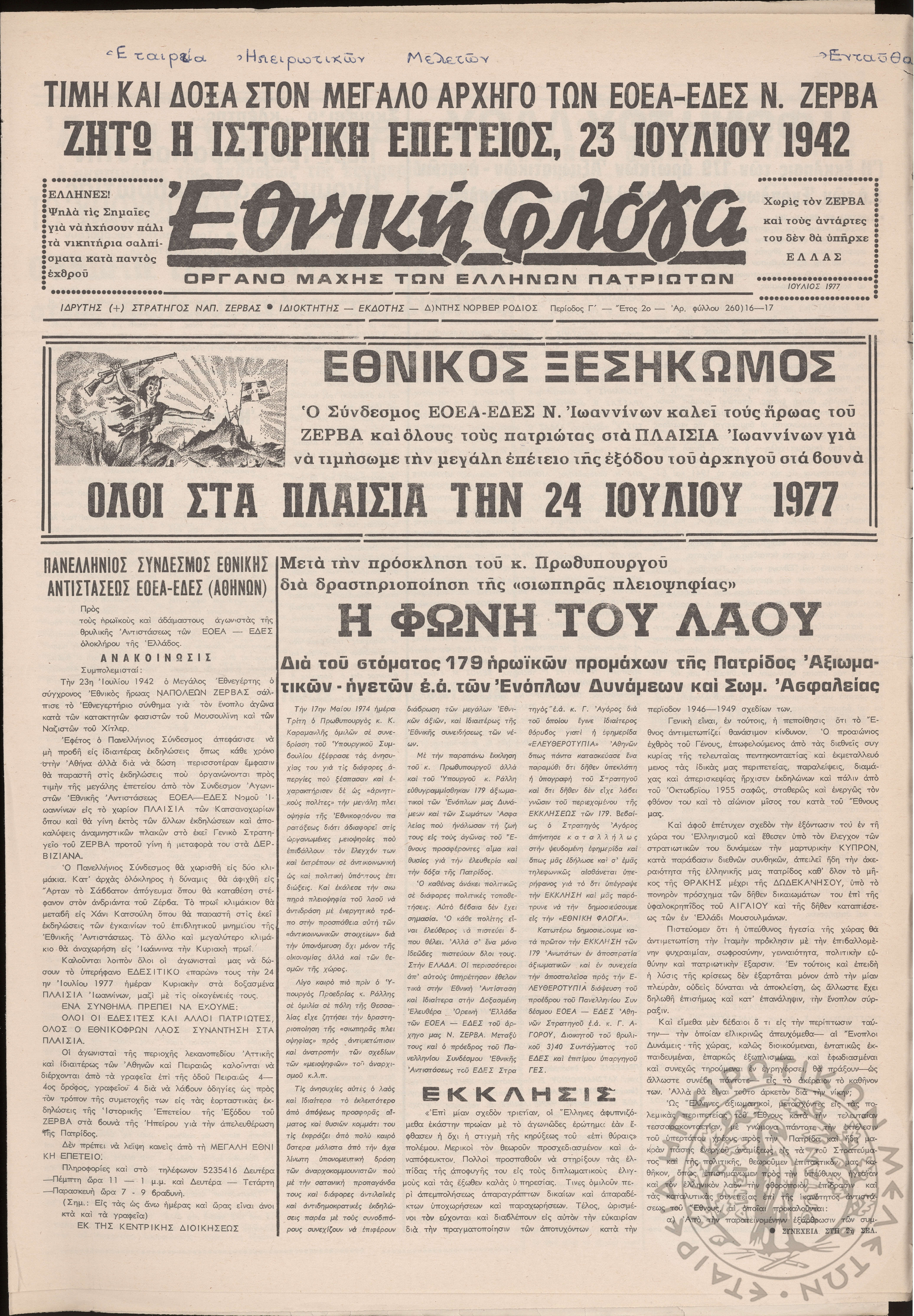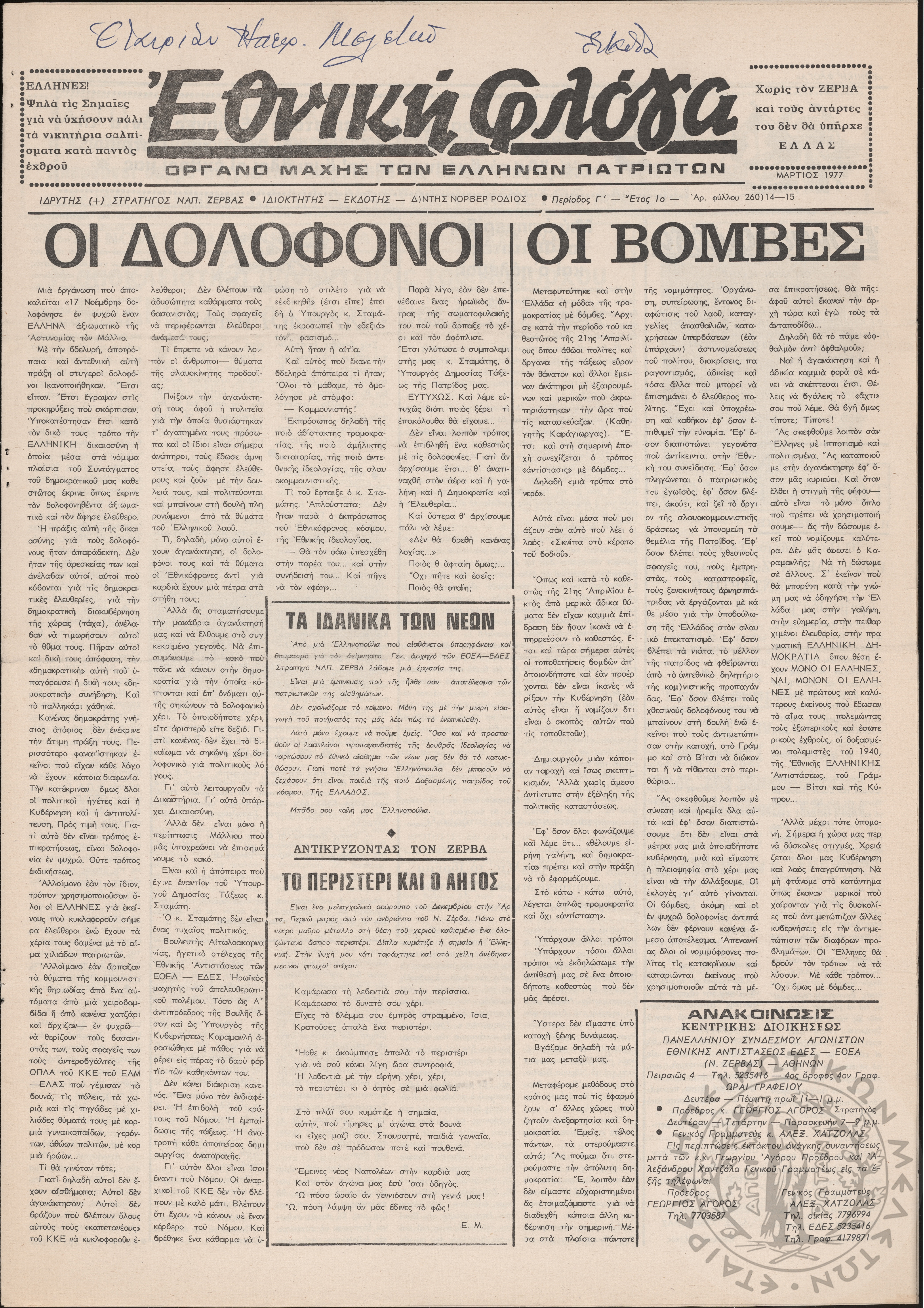 Εθνική Φλόγα: όργανο μάχης των ελλήνων πατριωτών, 1977, φ. 260/16-17Περίοδος Γ΄, έτος 2ο, φ. 260/ ...