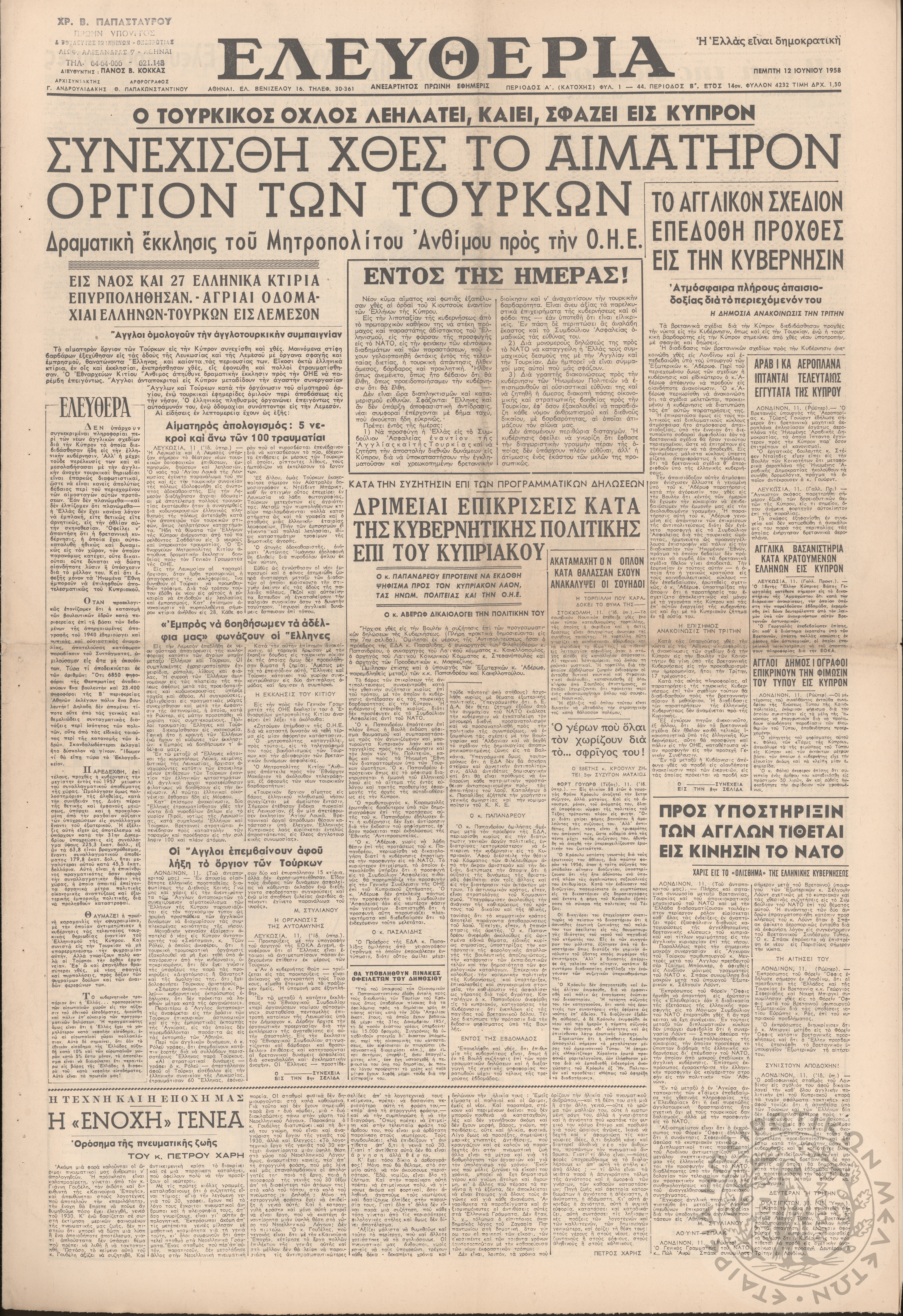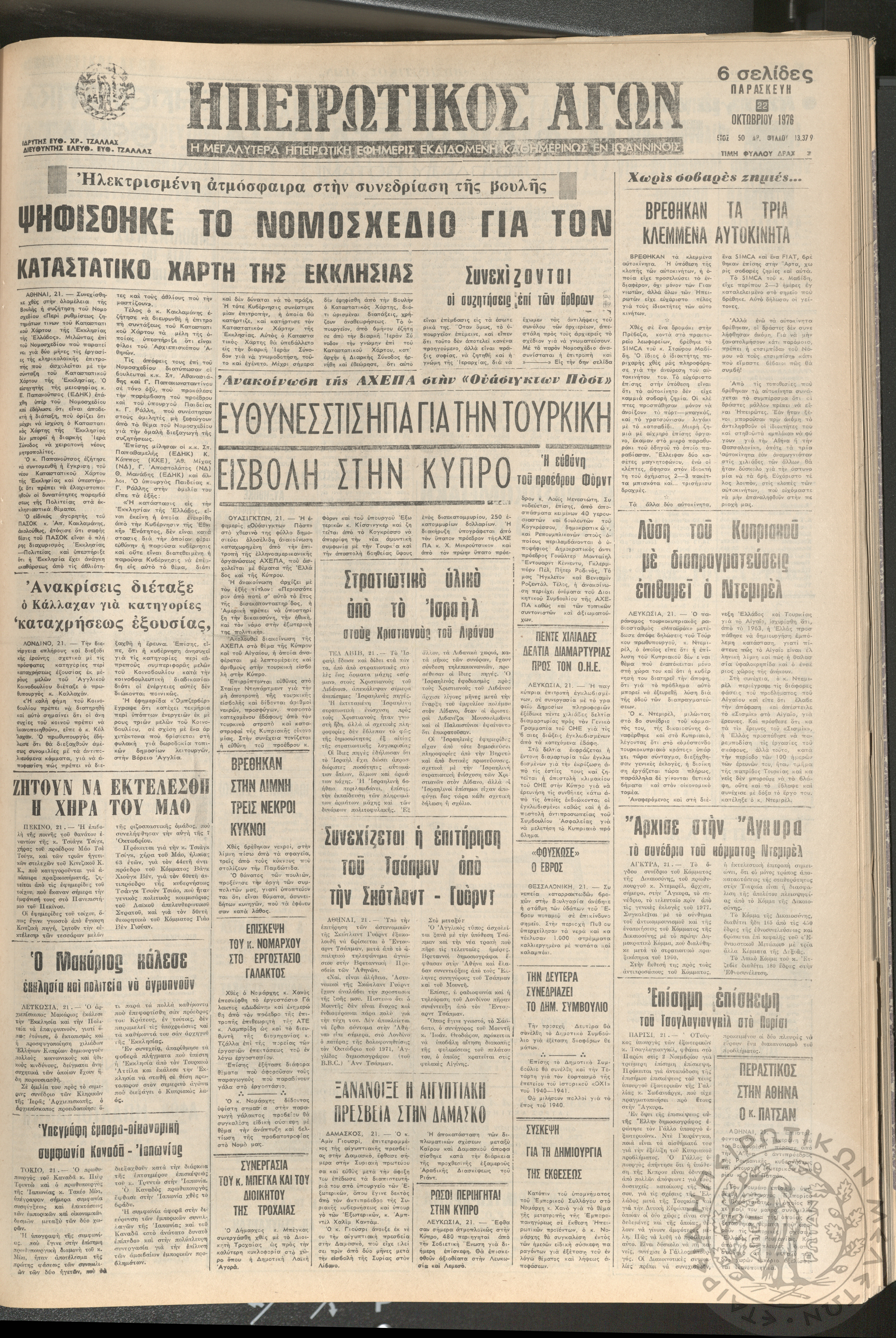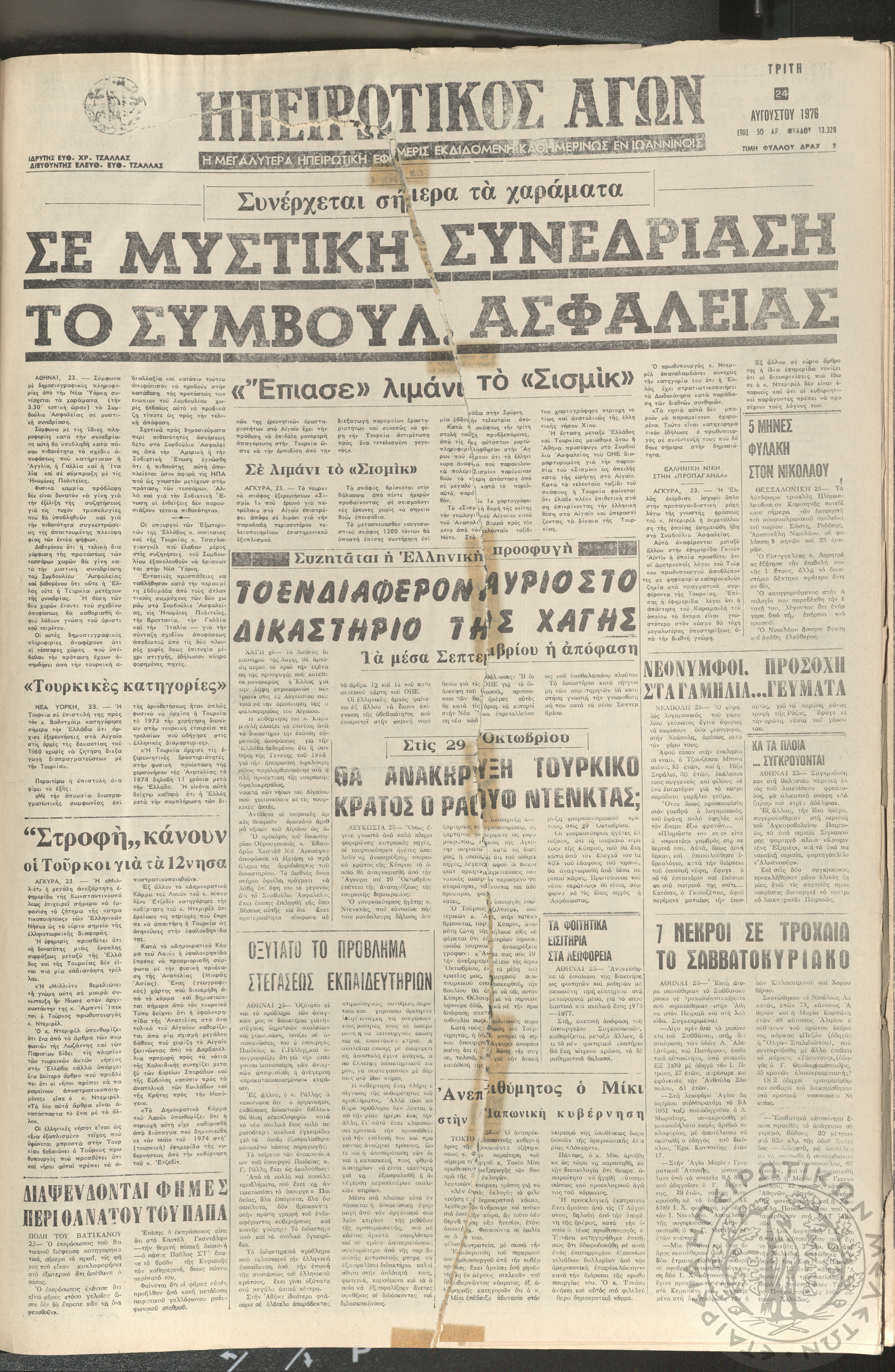Ηπειρωτικός Αγών: η μεγαλυτέρα ηπειρωτική εφημερίς εκδιδόμενη καθημερινώς εν Ιωαννίνοις 1976 (φ. 13328)Έτος 50, φ. 13328...