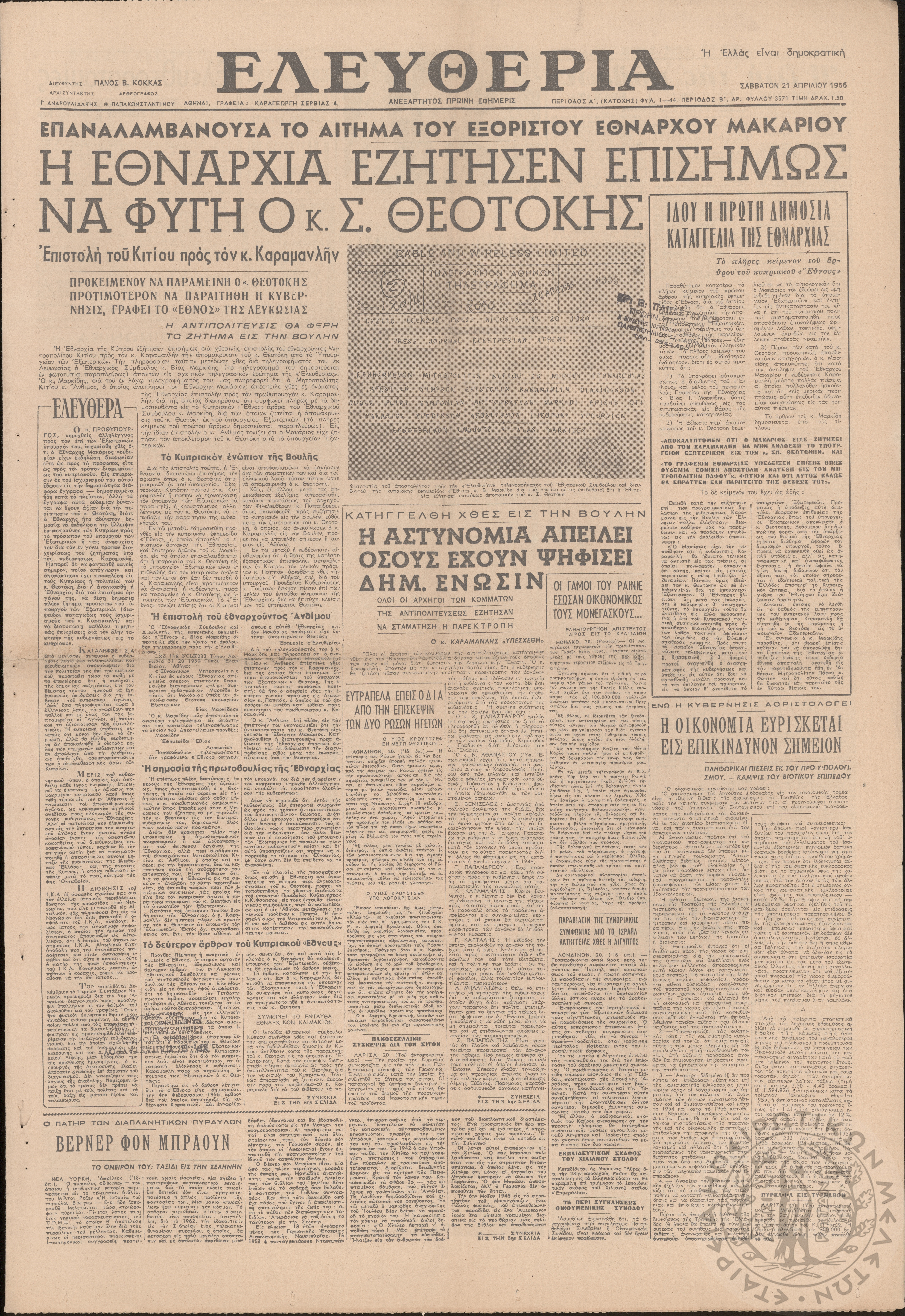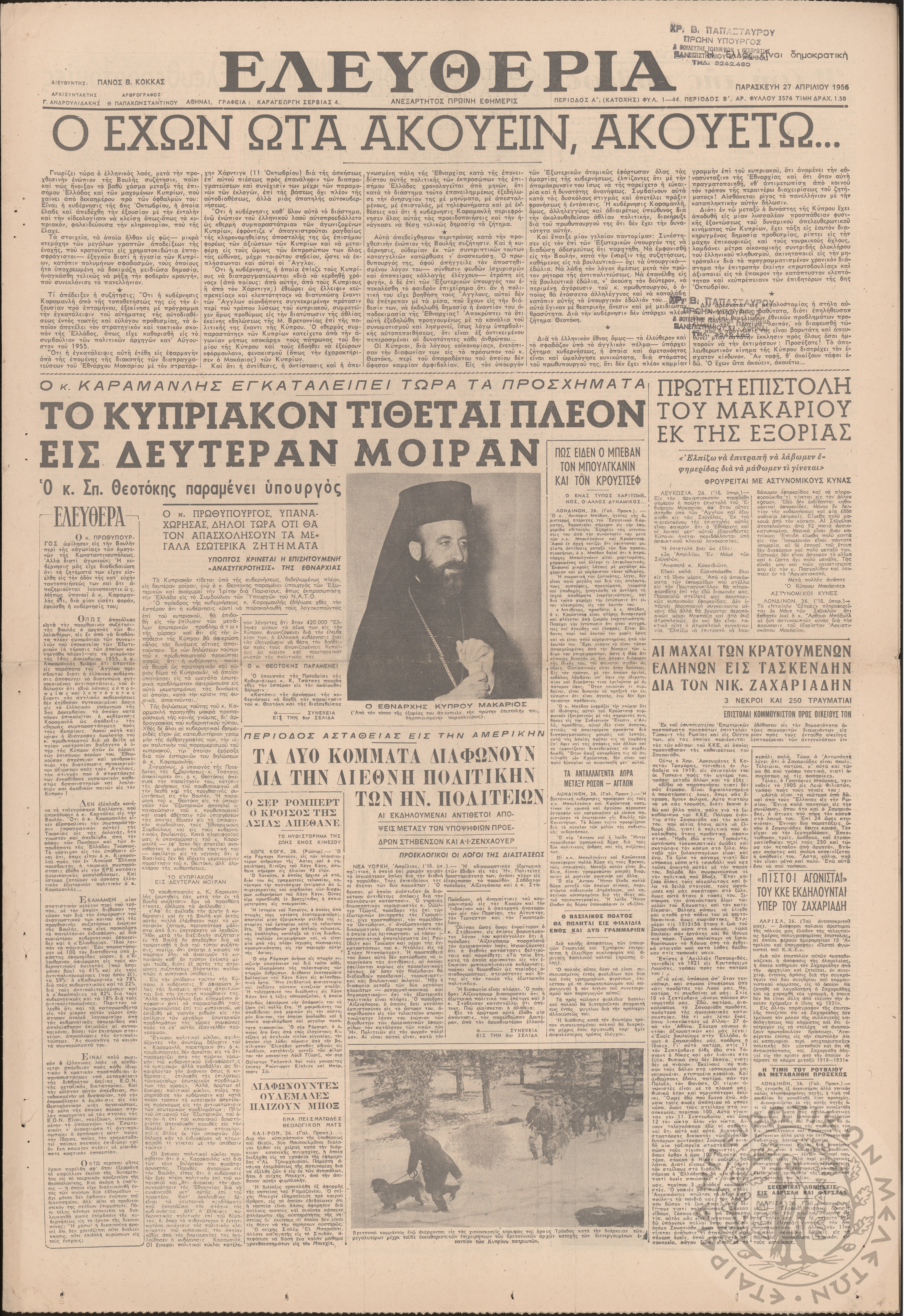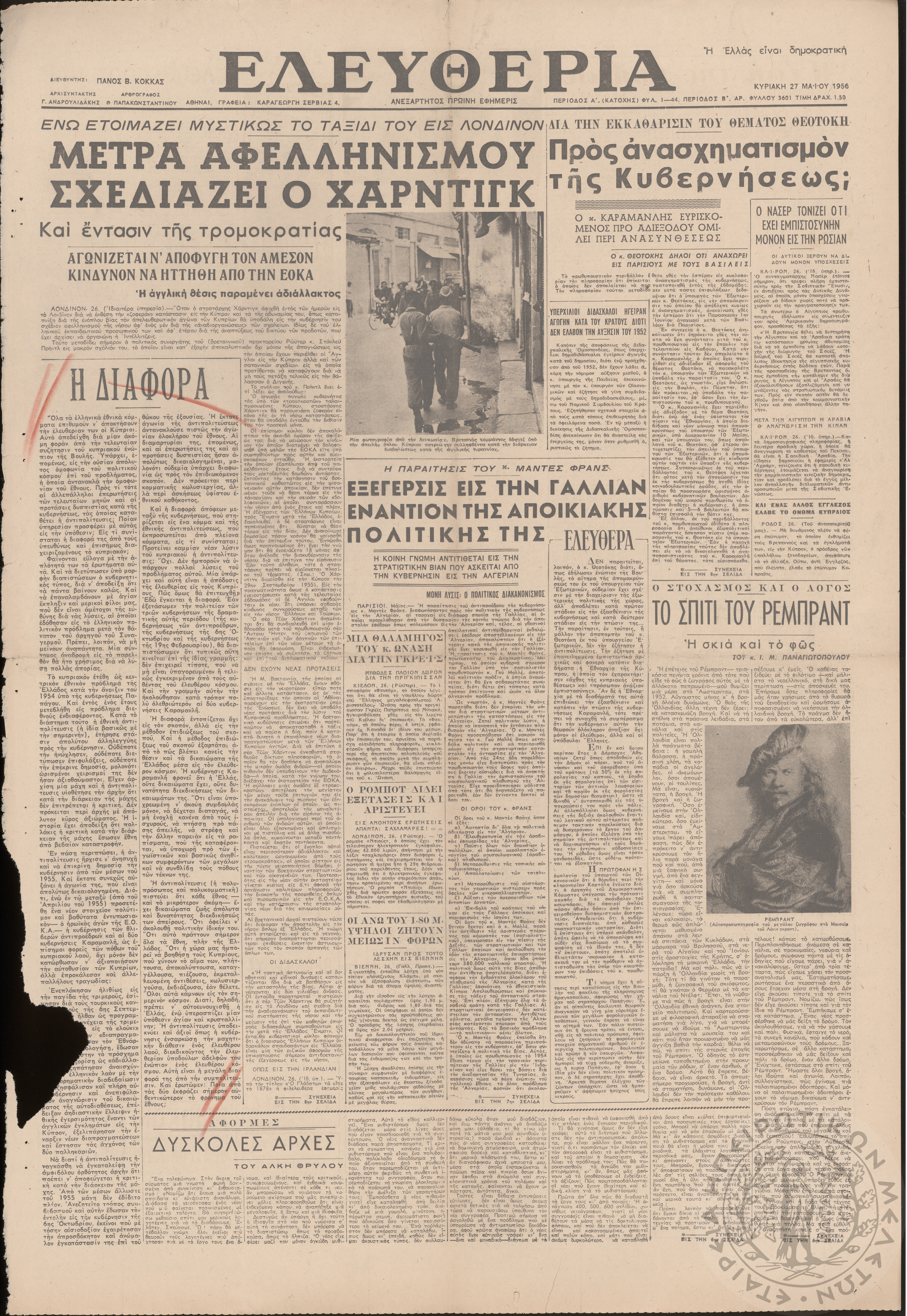 Ηπειρωτικός Αγών: η μεγαλυτέρα ηπειρωτική εφημερίς εκδιδόμενη καθημερινώς εν Ιωαννίνοις (φ. 13301)Έτος 49, φ. 13301...