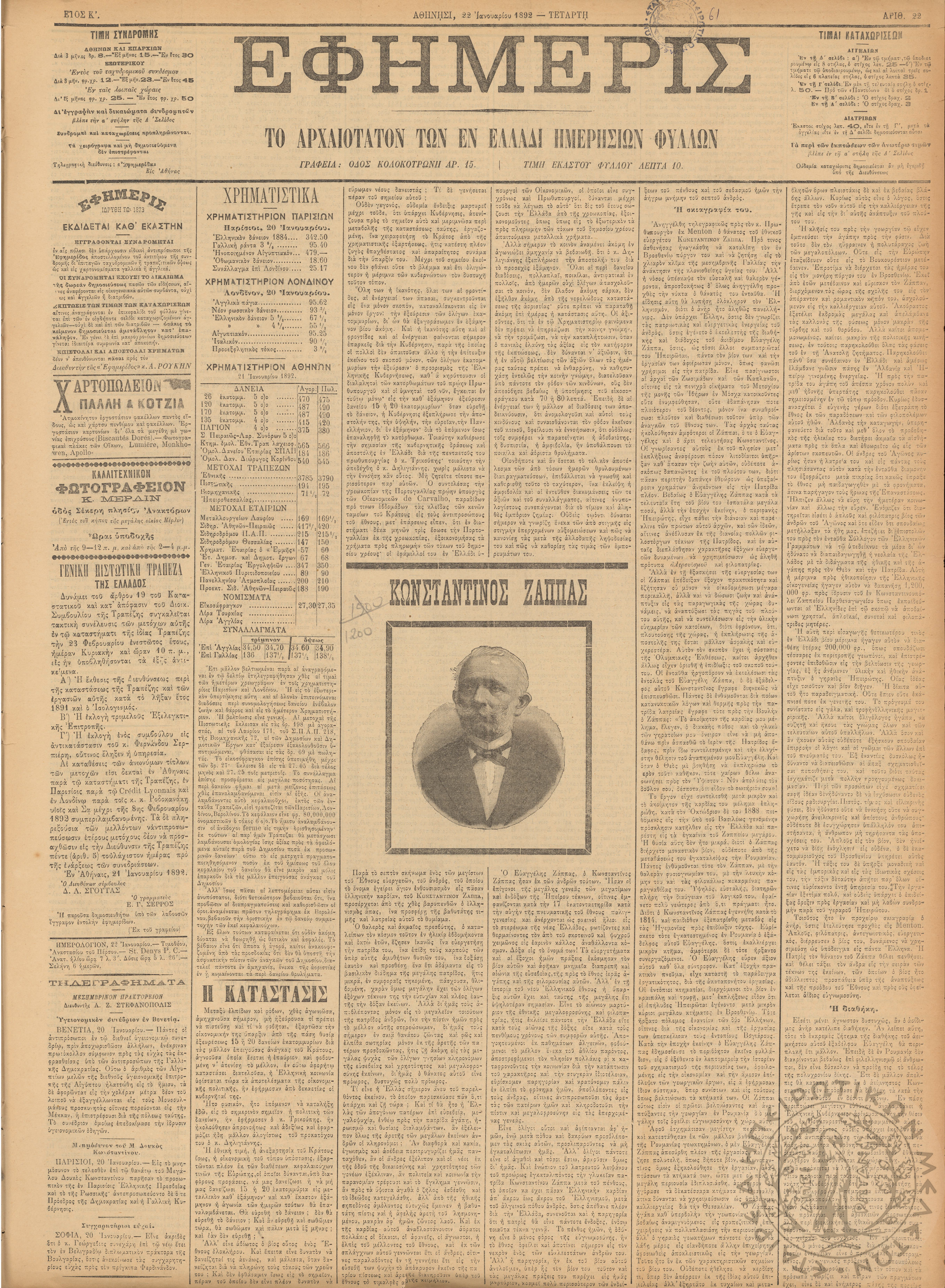 Έσπερος: το μεγαλύτερον εβδομαδιαίον εικονογραφημένον φιλολογικόν και εγκυκλοπαιδικόν περιοδικόν, τεύχ. 7Έτος Α΄, τεύχ. 7...