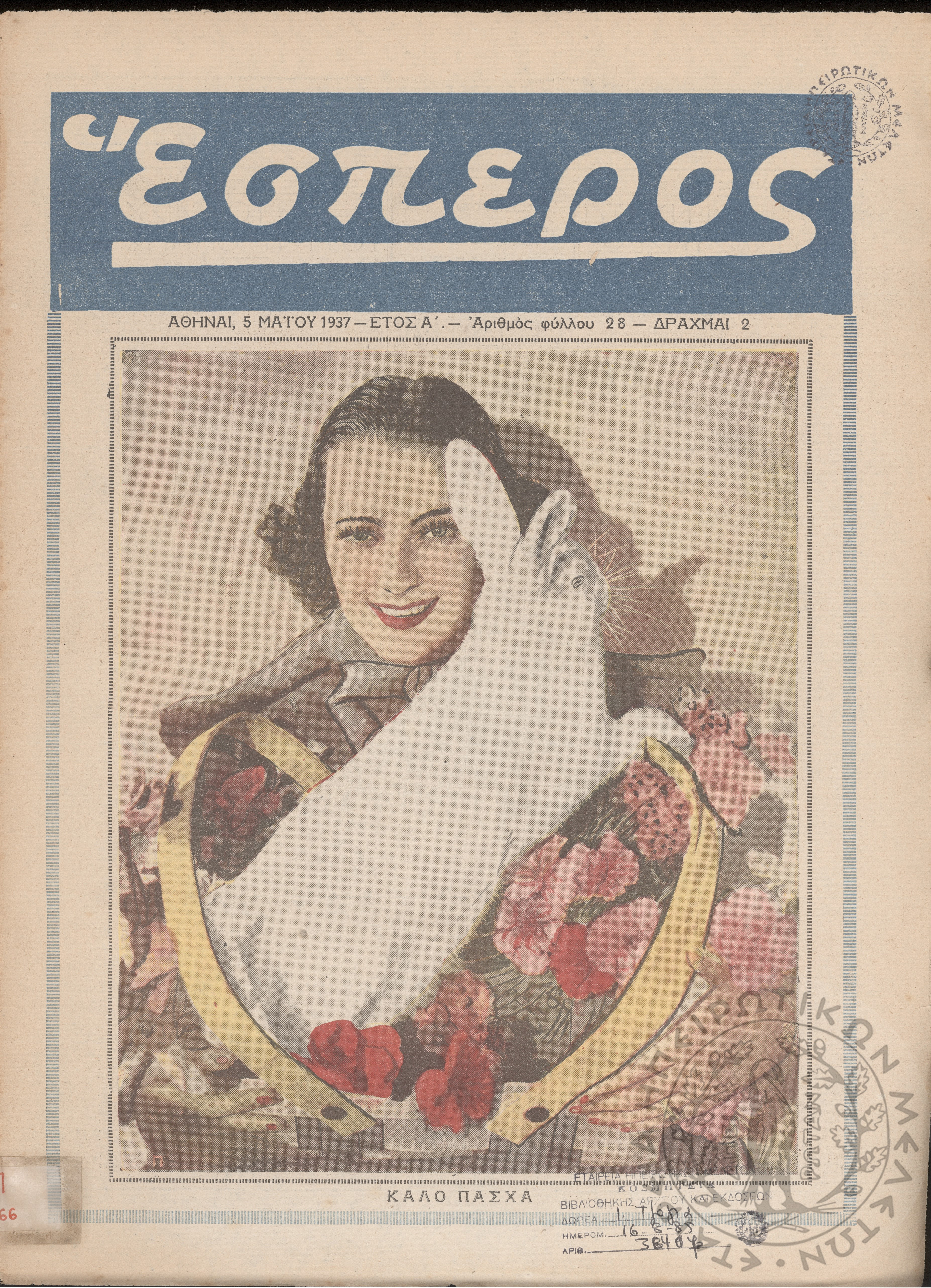 Έσπερος: το μεγαλύτερον εβδομαδιαίον εικονογραφημένον φιλολογικόν και εγκυκλοπαιδικόν περιοδικόν, τεύχ. 28Έτος Α΄, τεύχ. 28...