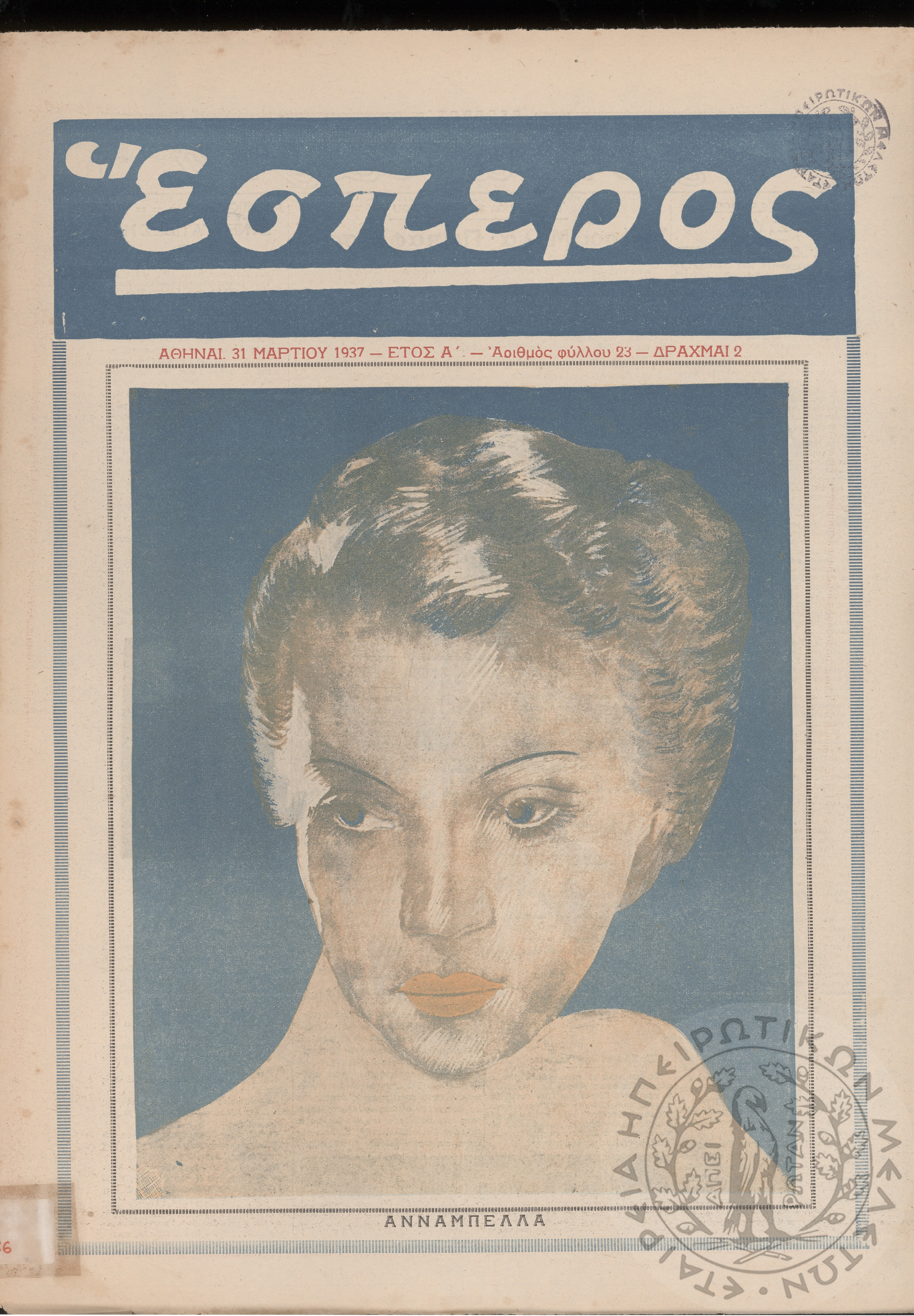 Έσπερος: το μεγαλύτερον εβδομαδιαίον εικονογραφημένον φιλολογικόν και εγκυκλοπαιδικόν περιοδικόν, τεύχ. 23Έτος Α΄, τεύχ. 23...