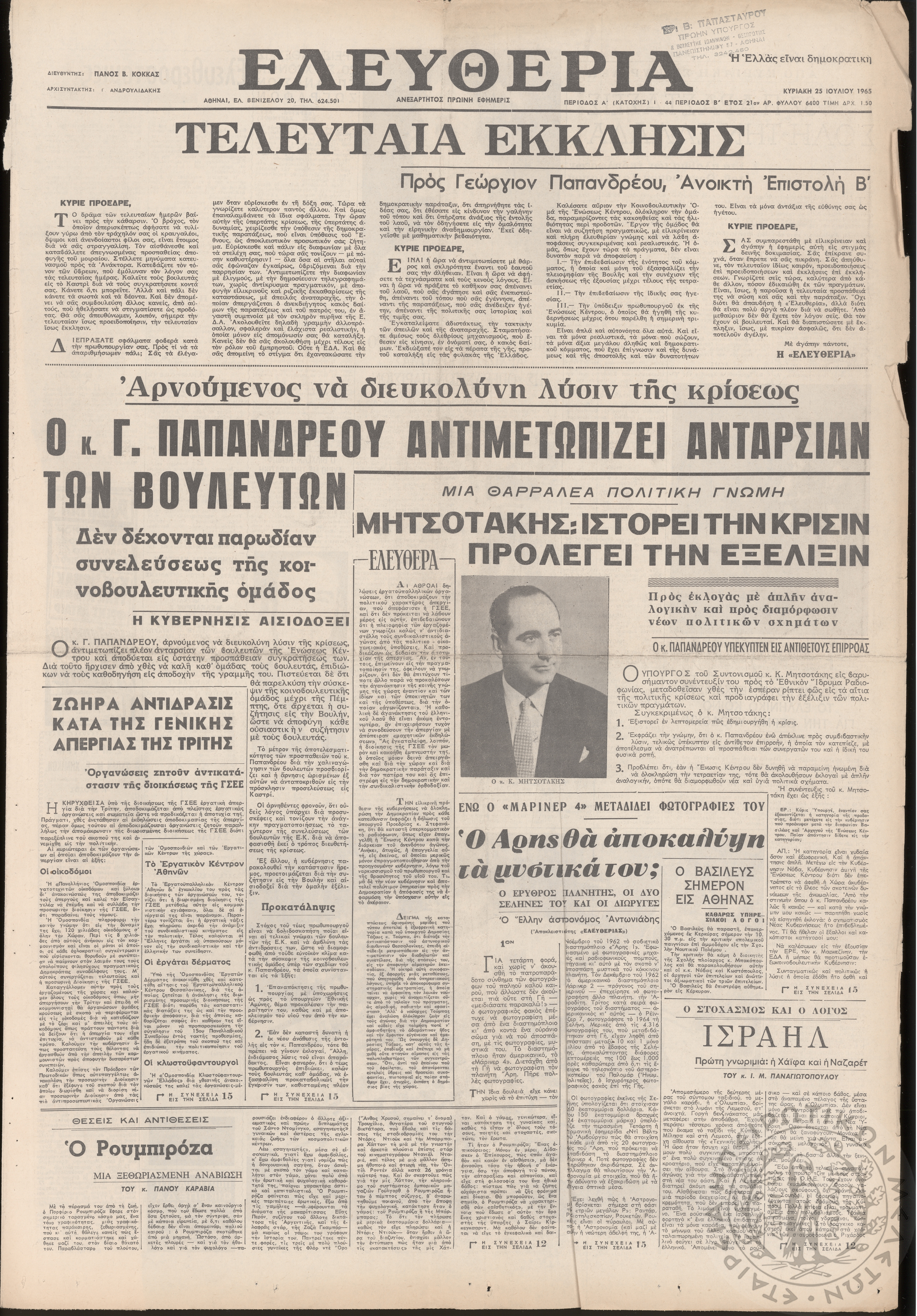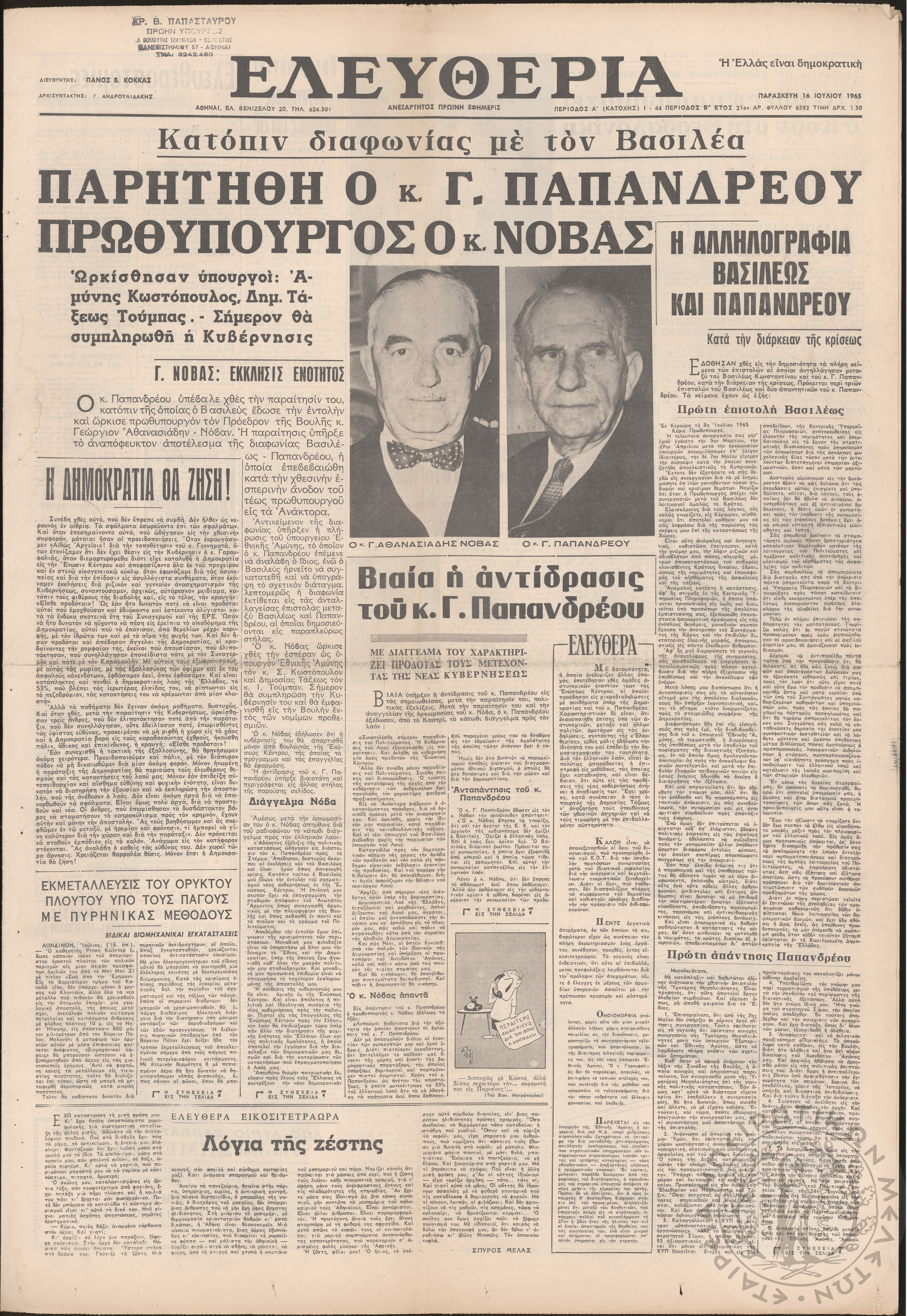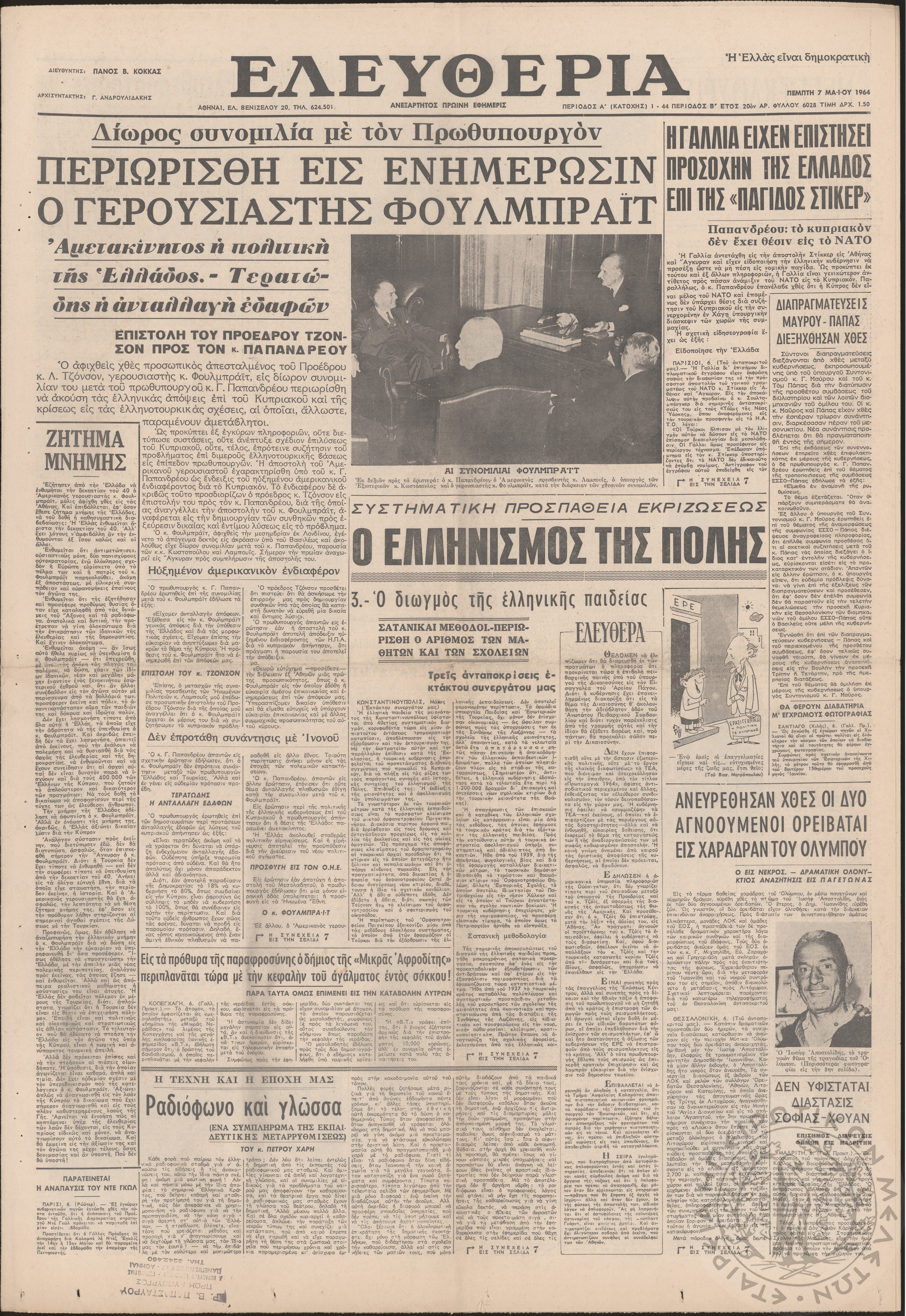 Ηπειρωτικός Αγών: η μεγαλυτέρα ηπειρωτική εφημερίς εκδιδόμενη καθημερινώς εν Ιωαννίνοις 1976 (φ. 13406)Έτος 50, φ. 13406...