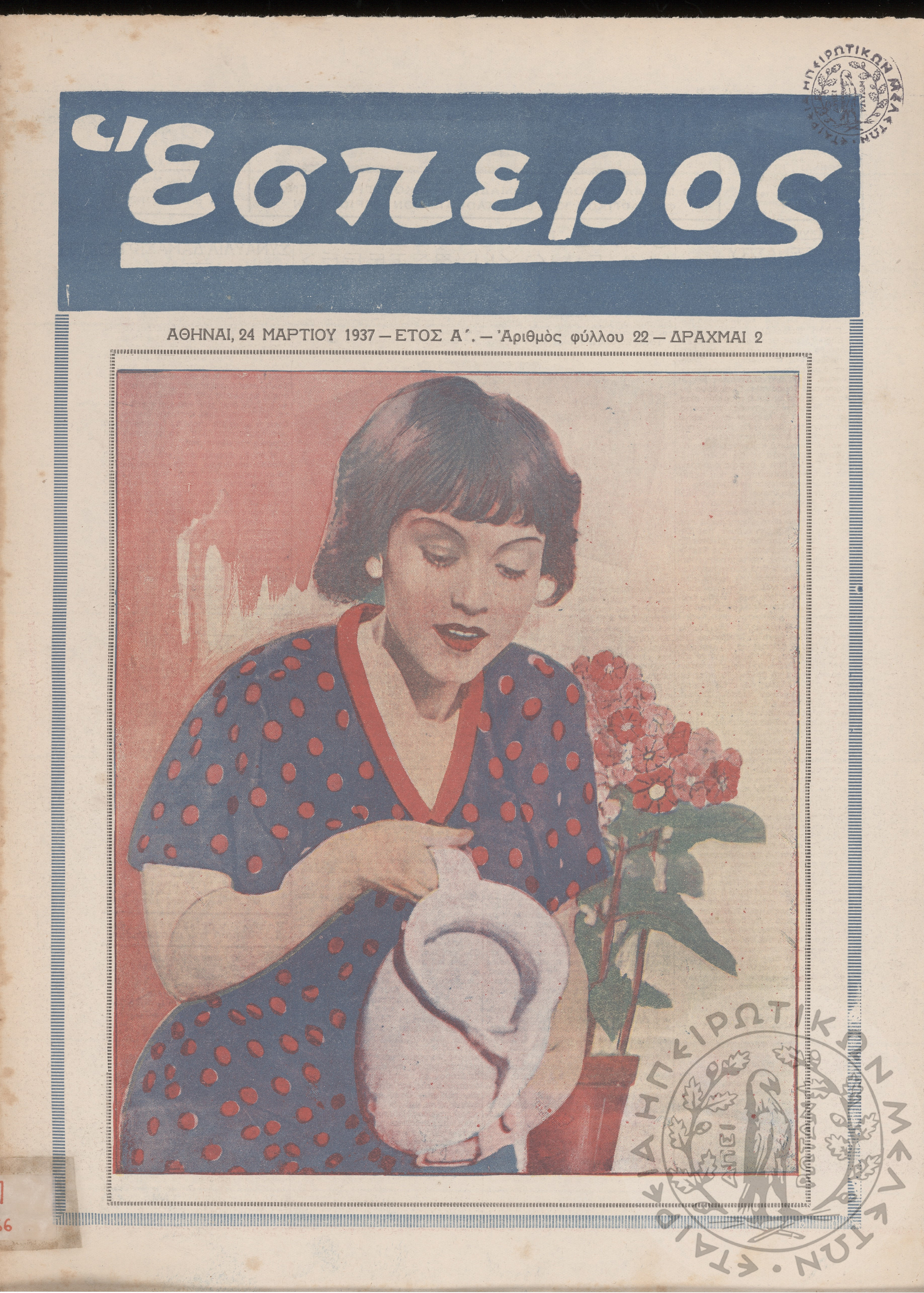Έσπερος: το μεγαλύτερον εβδομαδιαίον εικονογραφημένον φιλολογικόν και εγκυκλοπαιδικόν περιοδικόν, τεύχ. 22Έτος Α΄, τεύχ. 22...