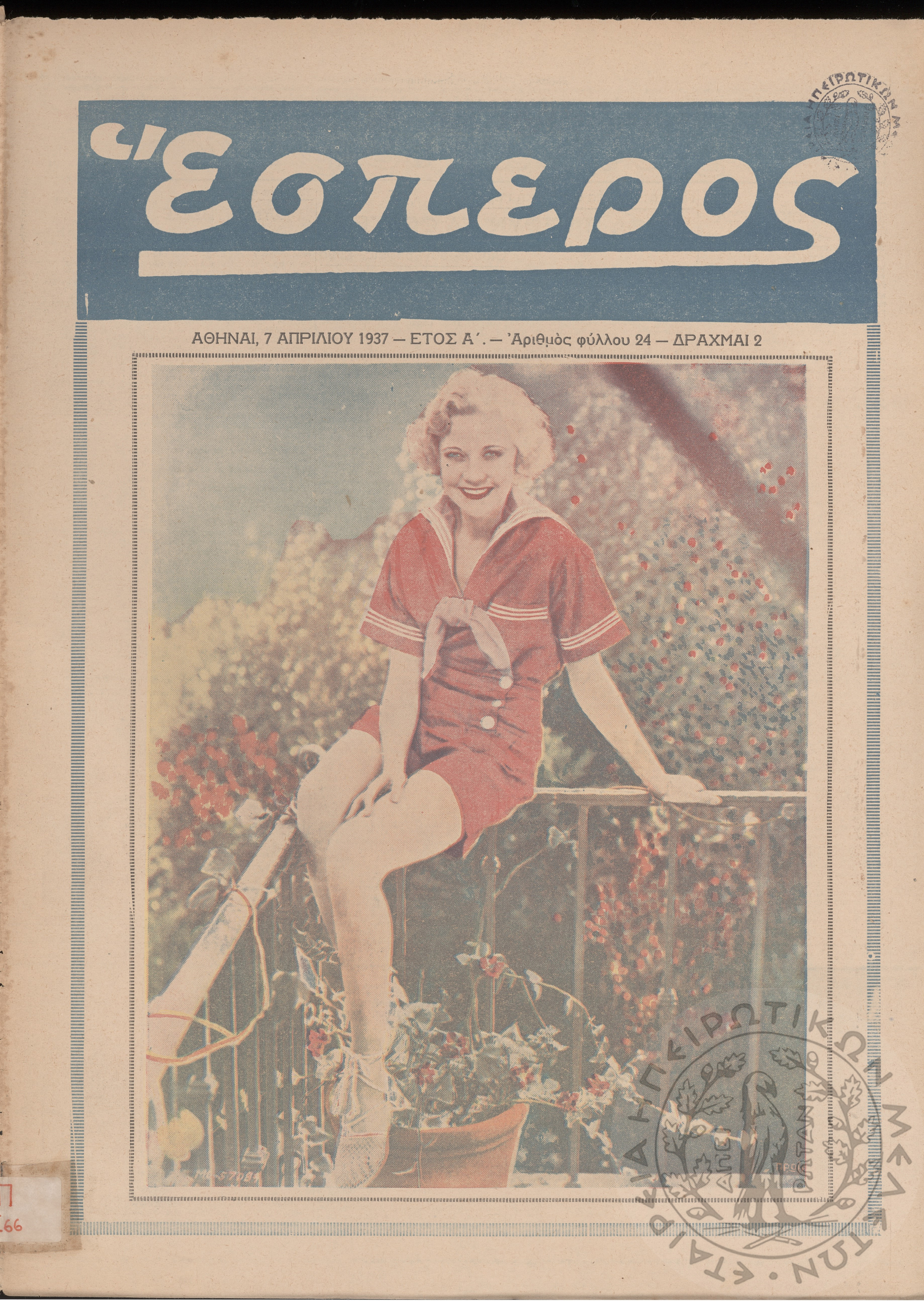 Έσπερος: το μεγαλύτερον εβδομαδιαίον εικονογραφημένον φιλολογικόν και εγκυκλοπαιδικόν περιοδικόν, τεύχ. 24Έτος Α΄, τεύχ. 24...