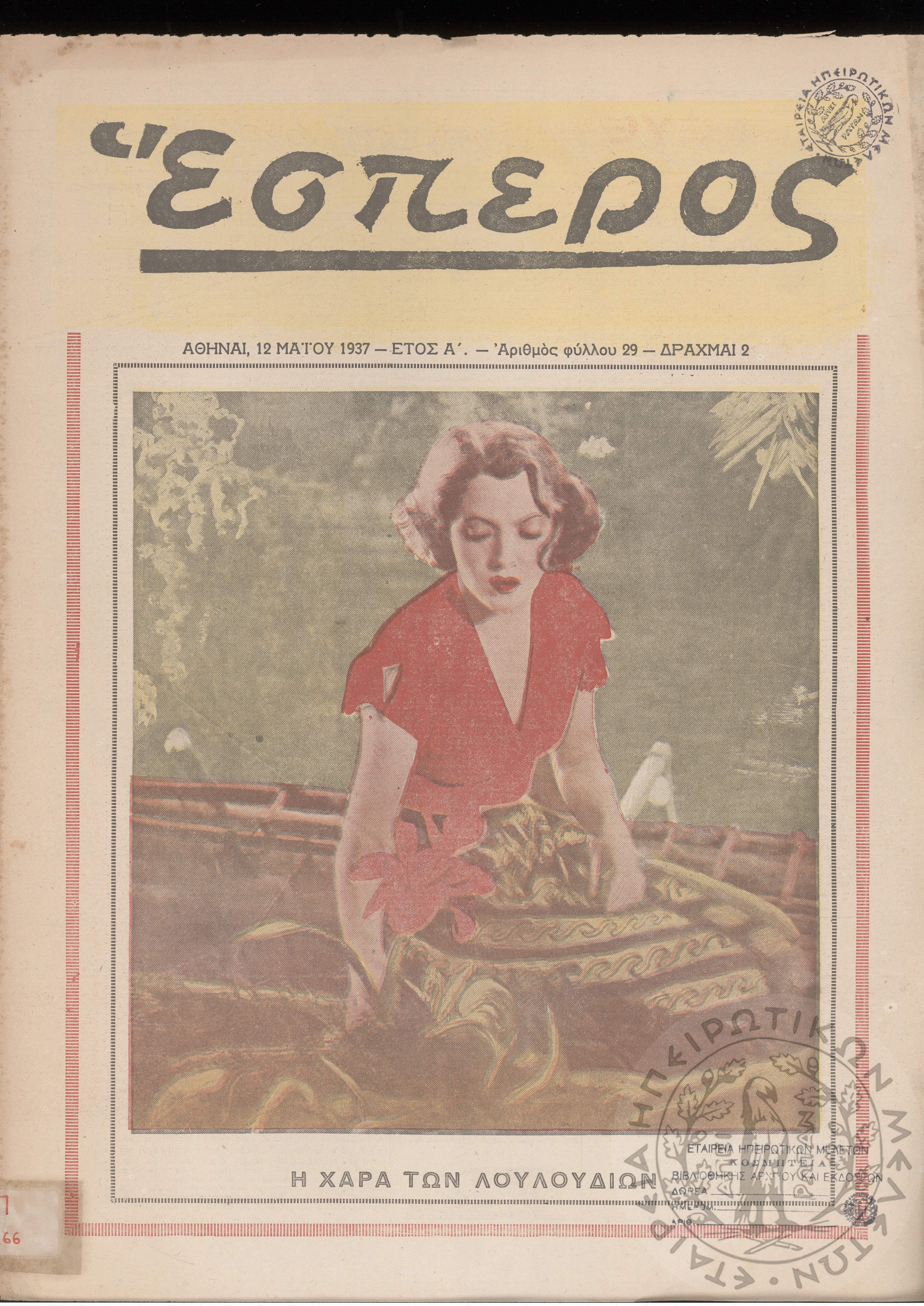 Έσπερος: το καλύτερον εβδομαδιαίον εικονογραφημένον φιλολογικόν και εγκυκλοπαιδικόν περιοδικόν, τεύχ. 29Έτος Α΄, τεύχ. 29...