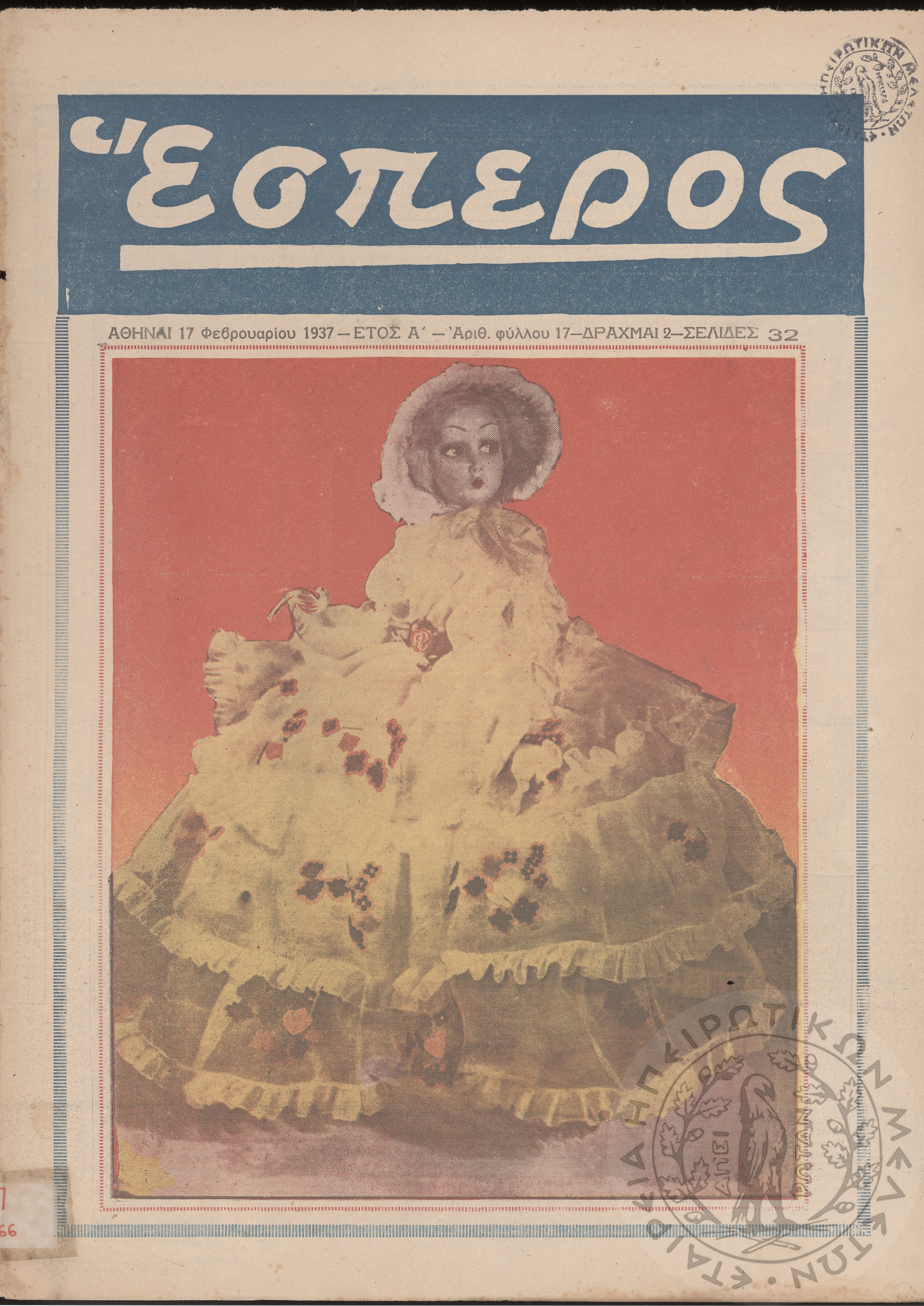 Έσπερος: το μεγαλύτερον εβδομαδιαίον εικονογραφημένον φιλολογικόν και εγκυκλοπαιδικόν περιοδικόν, τεύχ. 17Έτος Α΄, τεύχ. 17...