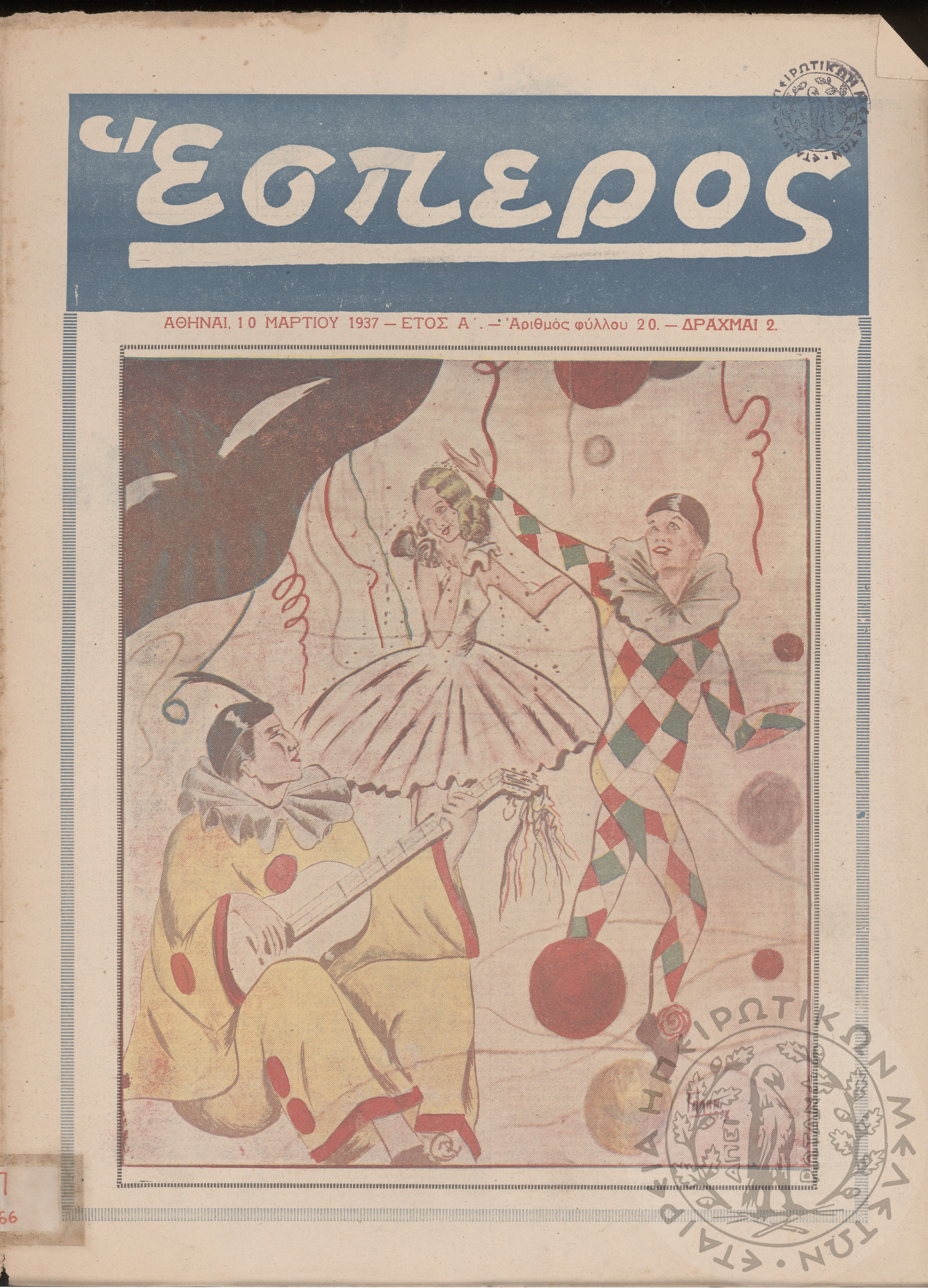 Έσπερος: το μεγαλύτερον εβδομαδιαίον εικονογραφημένον φιλολογικόν και εγκυκλοπαιδικόν περιοδικόν, τεύχ. 20Έτος Α΄, τεύχ. 20...