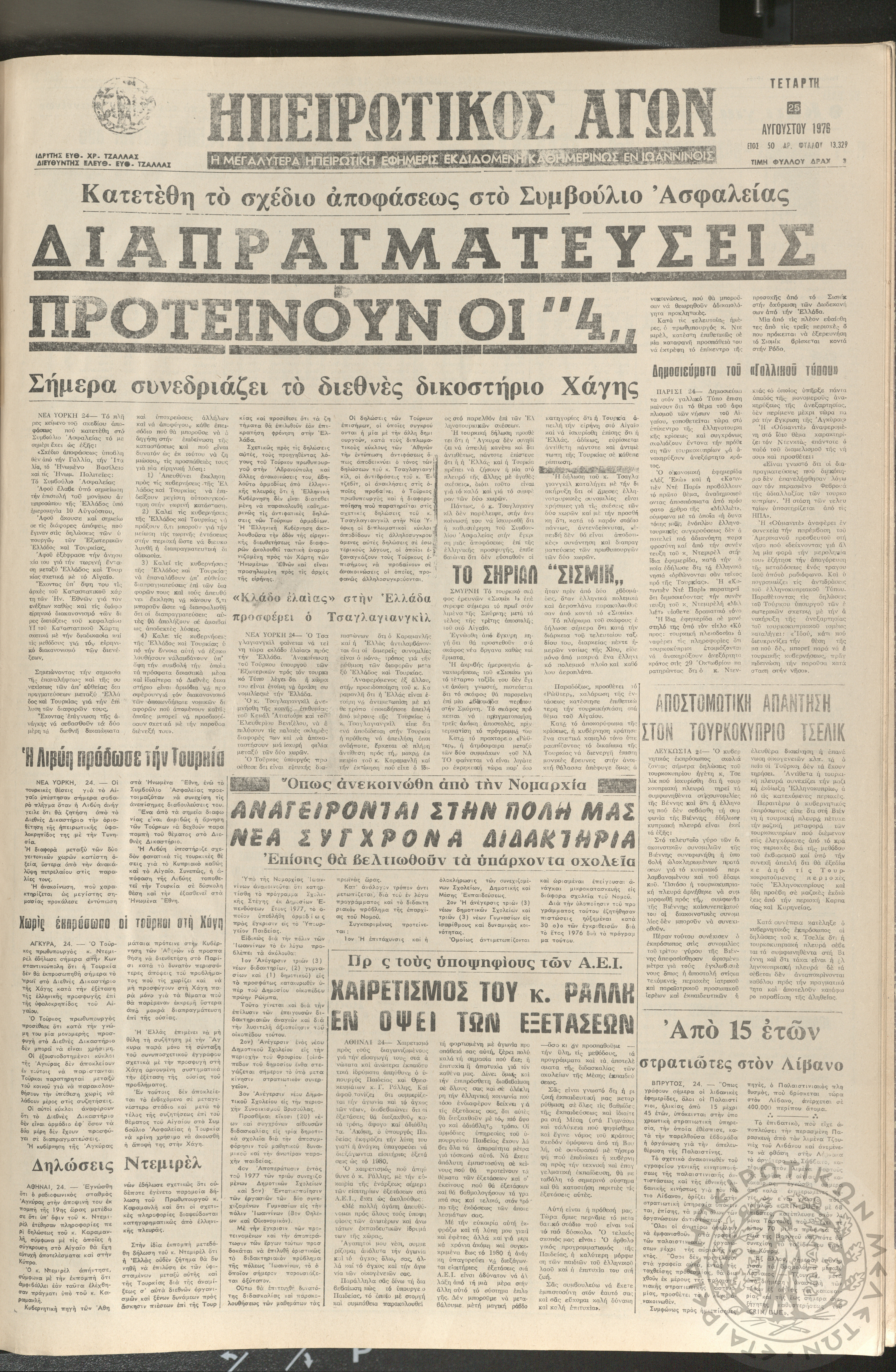 Ηπειρωτικός Αγών: η μεγαλυτέρα ηπειρωτική εφημερίς εκδιδόμενη καθημερινώς εν Ιωαννίνοις 1976 (φ. 13329)Έτος 50, φ. 13329...