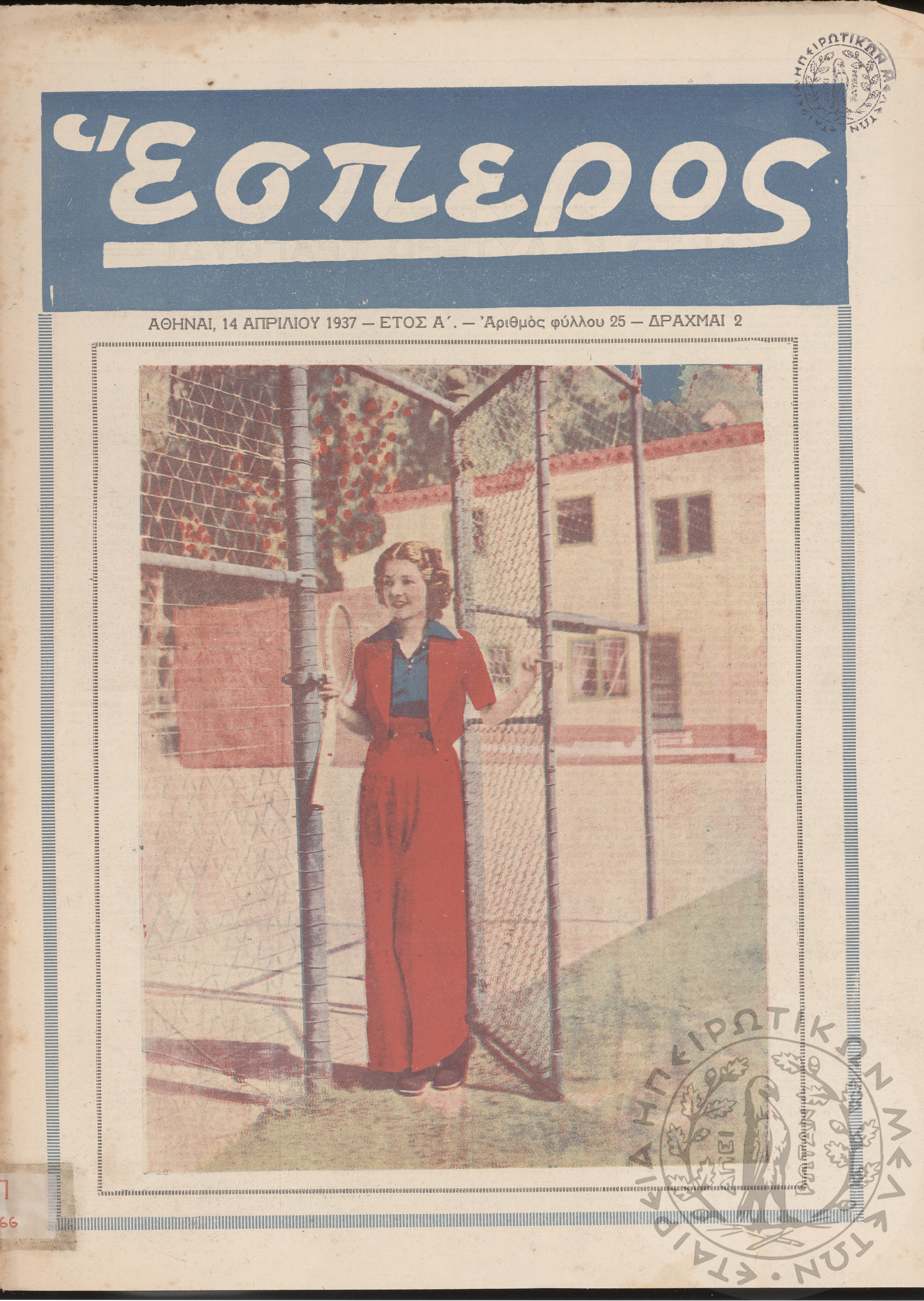 Έσπερος: το μεγαλύτερον εβδομαδιαίον εικονογραφημένον φιλολογικόν και εγκυκλοπαιδικόν περιοδικόν, τεύχ. 25Έτος Α΄, τεύχ. 25...