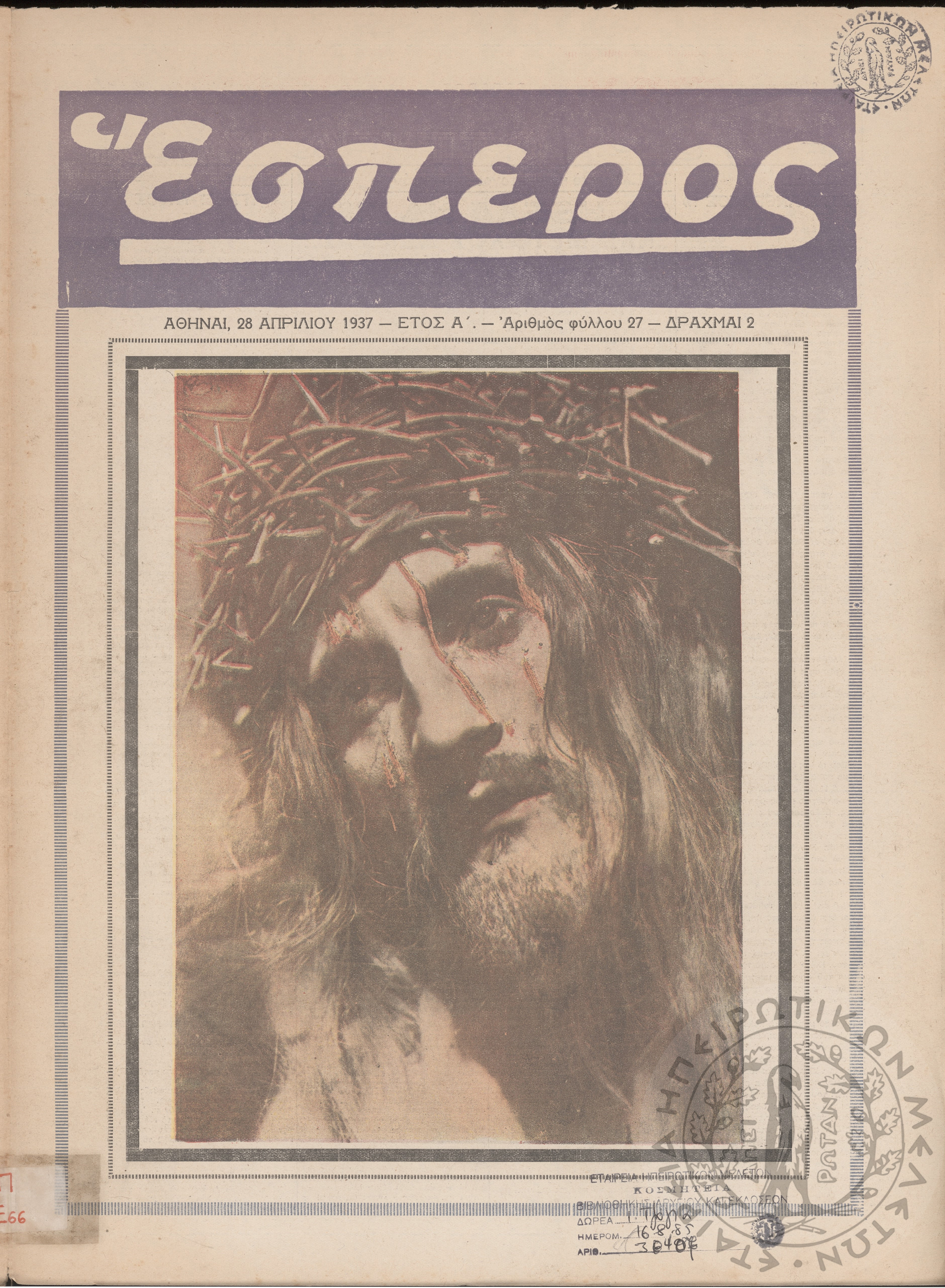 Έσπερος: το μεγαλύτερον εβδομαδιαίον εικονογραφημένον φιλολογικόν και εγκυκλοπαιδικόν περιοδικόν, τεύχ. 27Έτος Α΄, τεύχ. 27...