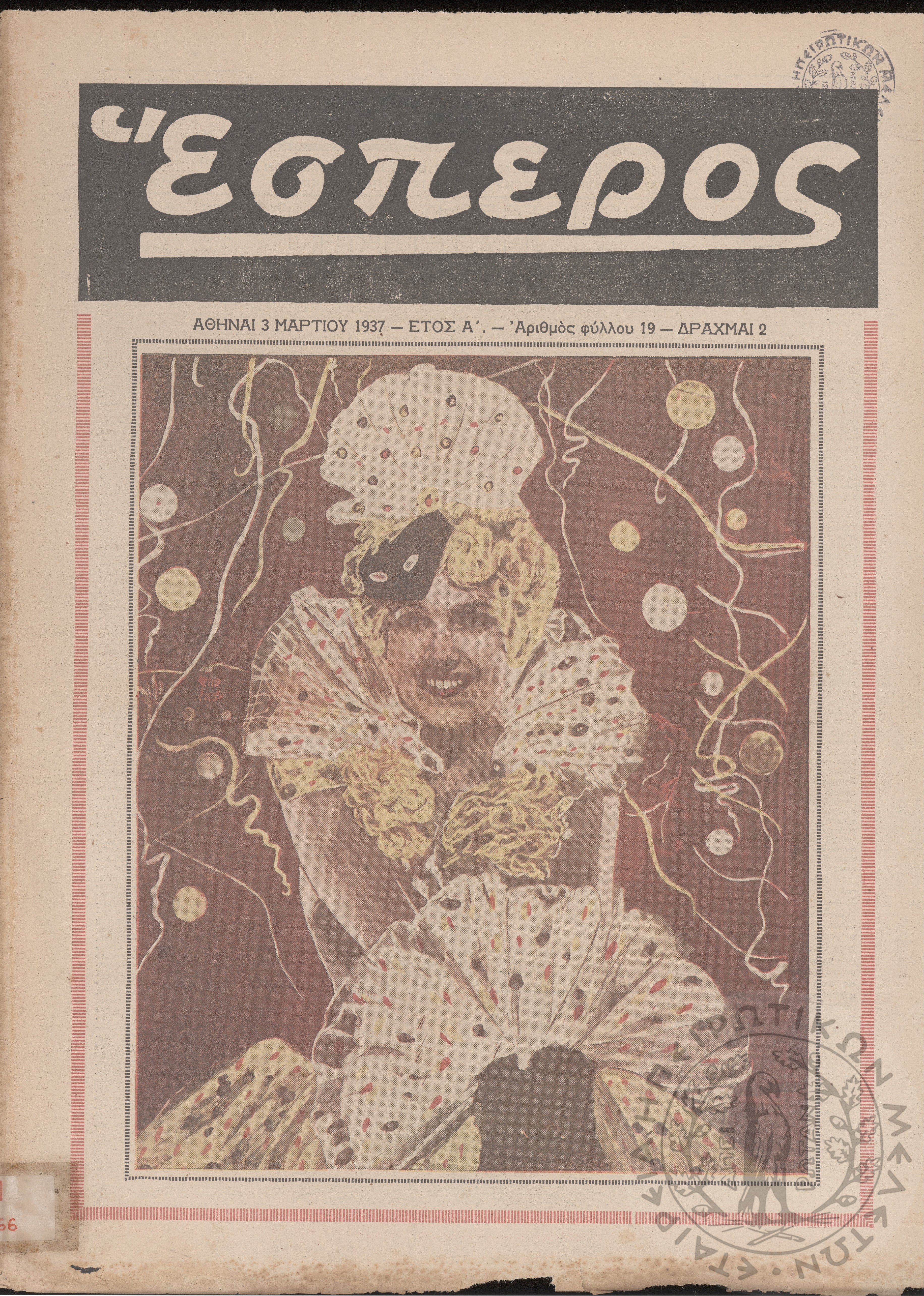 Έσπερος: το μεγαλύτερον εβδομαδιαίον εικονογραφημένον φιλολογικόν και εγκυκλοπαιδικόν περιοδικόν, τεύχ. 19Έτος Α΄, τεύχ. 19...