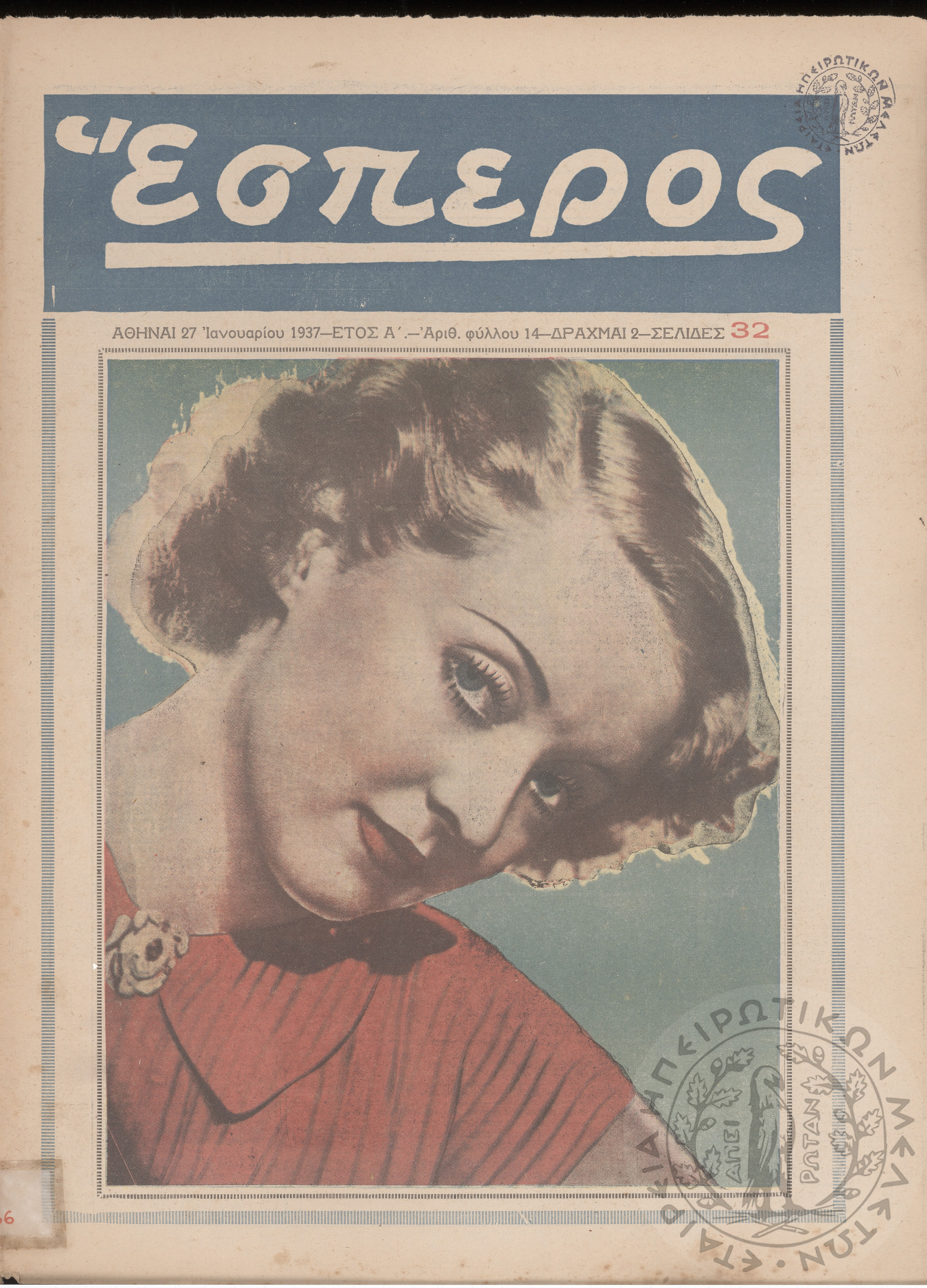 Έσπερος: το καλύτερον εβδομαδιαίον εικονογραφημένον φιλολογικόν και εγκυκλοπαιδικόν περιοδικόν, τεύχ. 32Έτος Α΄, τεύχ. 32...