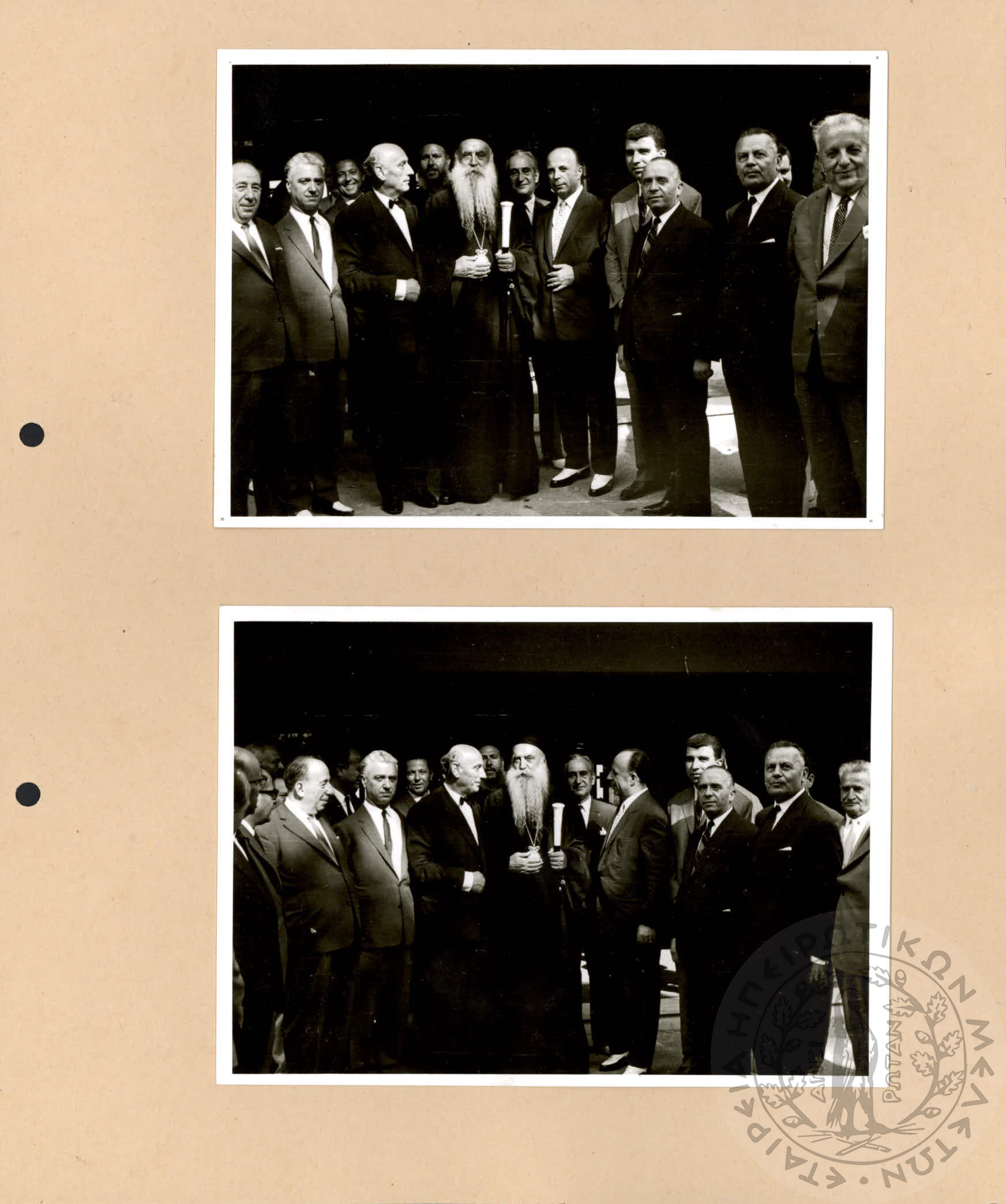 827. Τοποθέτηση... Ο Κ. Φρόντζος μαζί με τον Πατρ... Ο Πατριάρχης Αθηναγόρας μαζί μ... 831. Η μικρή Ντόρα δίπλα στο π... 834. Ο Ντίνος Μπακόπουλος ένστ... 838-839. Ο Δ. Κατσίλας στον ελ... 841. Ο Δ. Κατσίλας στον ελληνο... 843-844. Ομαδική φωτογραφία στ... 852. Η Αλεξάνδρα στο σπίτι στο...