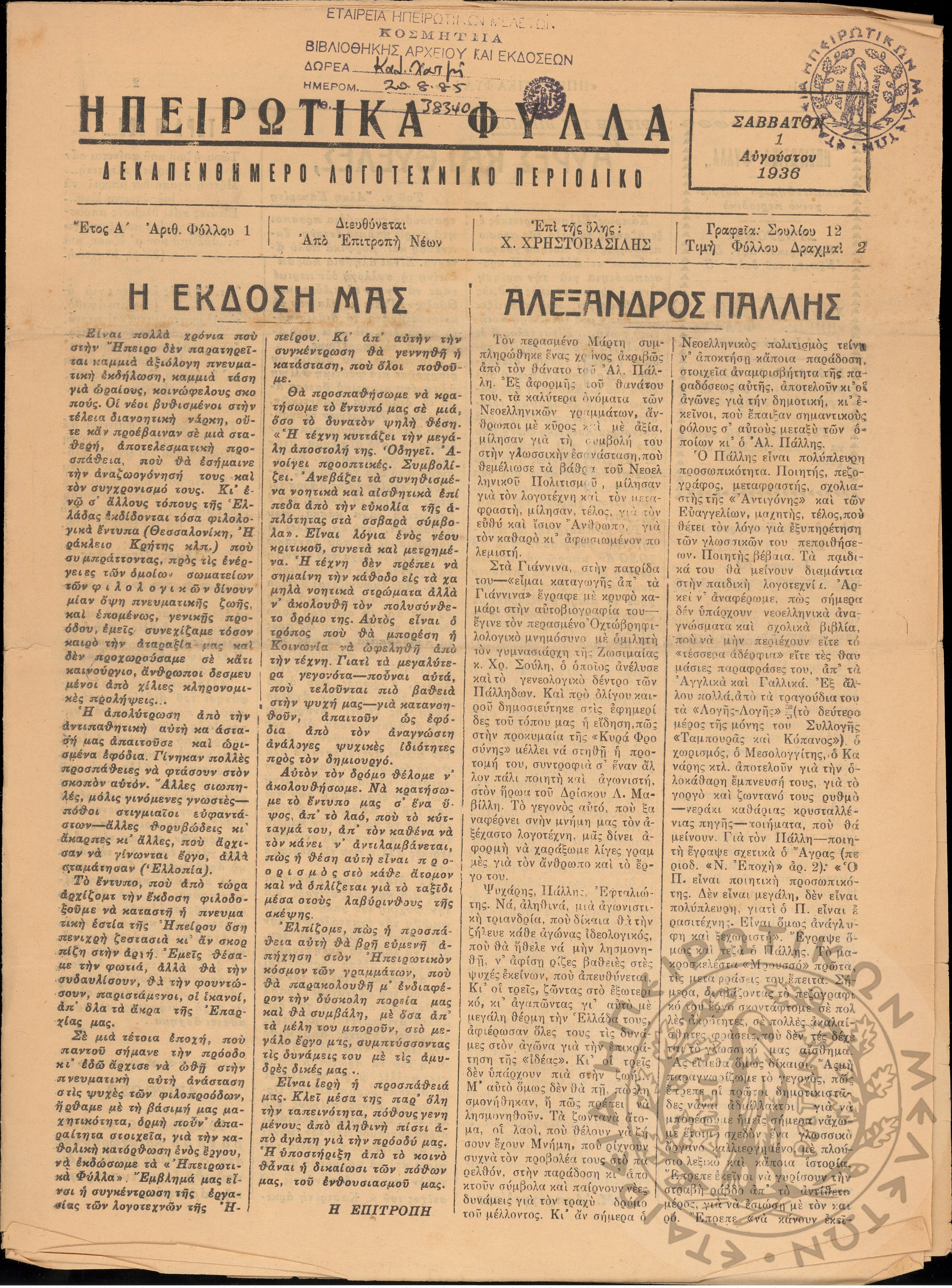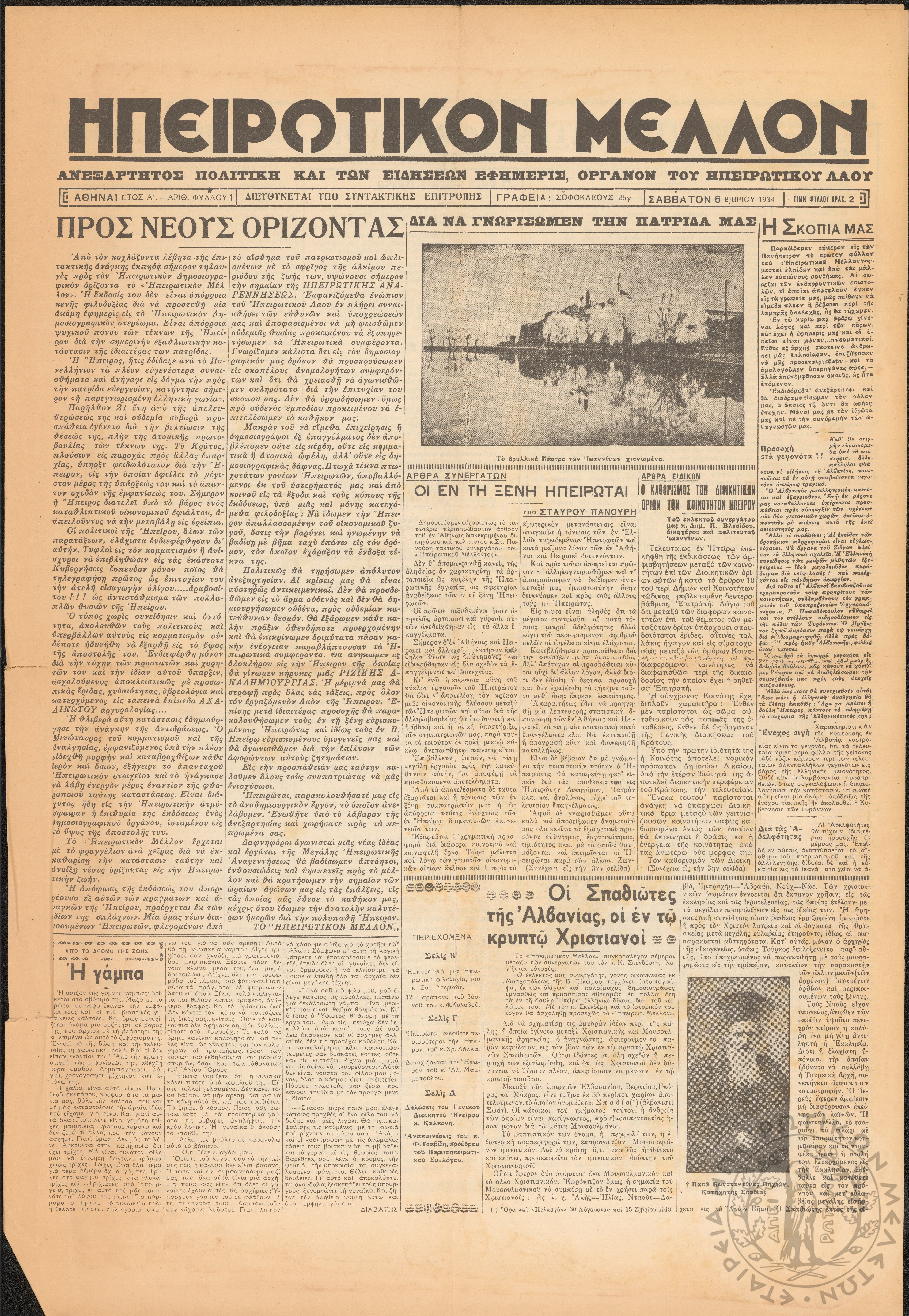 Ηπειρωτικόν μέλλον: ανεξάρτητος πολιτική και των ειδήσεων εφημερίς, όργανον του Ηπειρωτικού λαού, 1934, φ. 1Έτος Α΄, φ. 1...