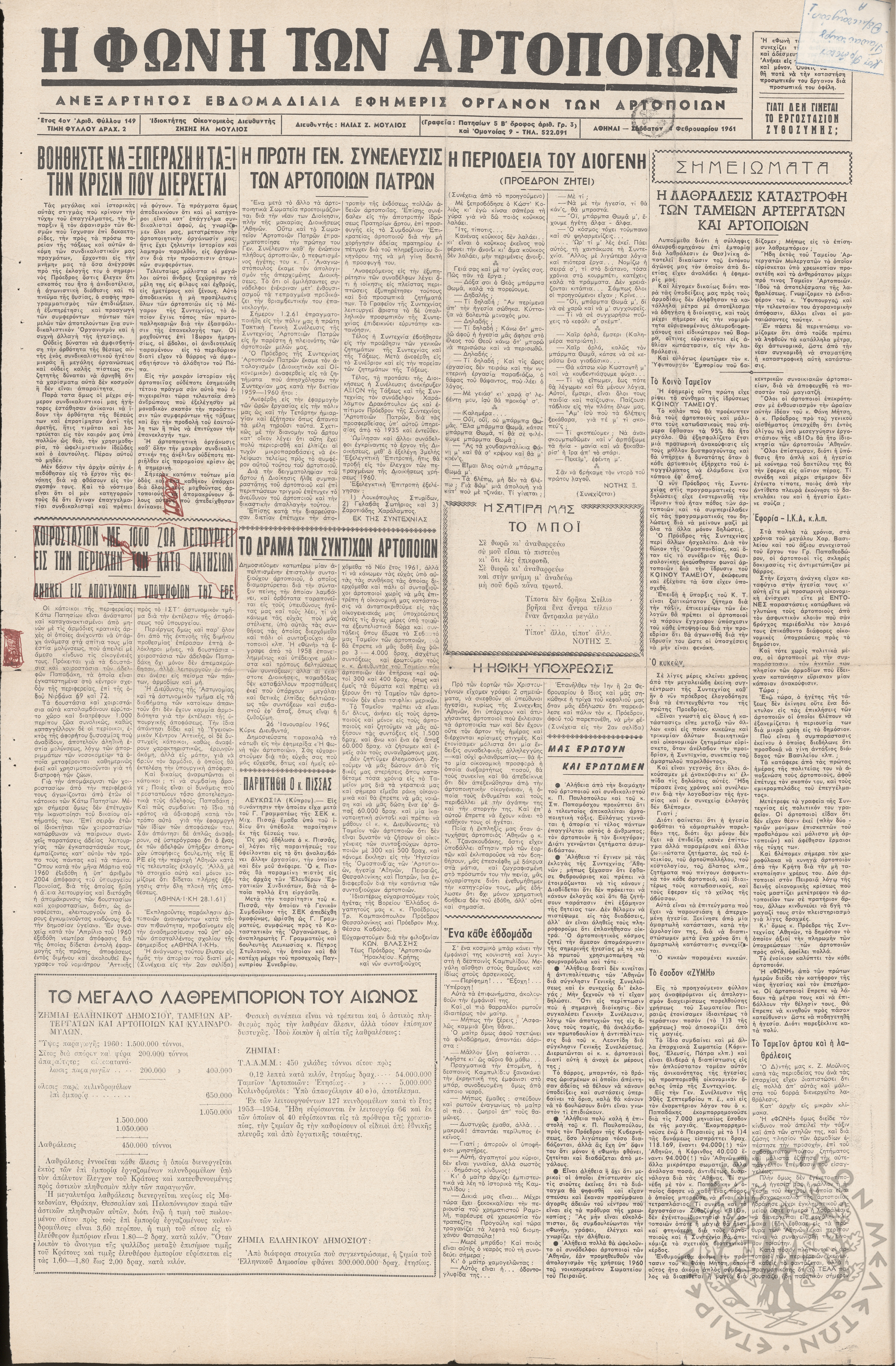Η φωνή των αρτοποιών: Ανεξάρτητος εβδομαδιαία εφημερίς όργανον των αρτοποιών (τευχ. 149)Έτος 4, φ. 149...