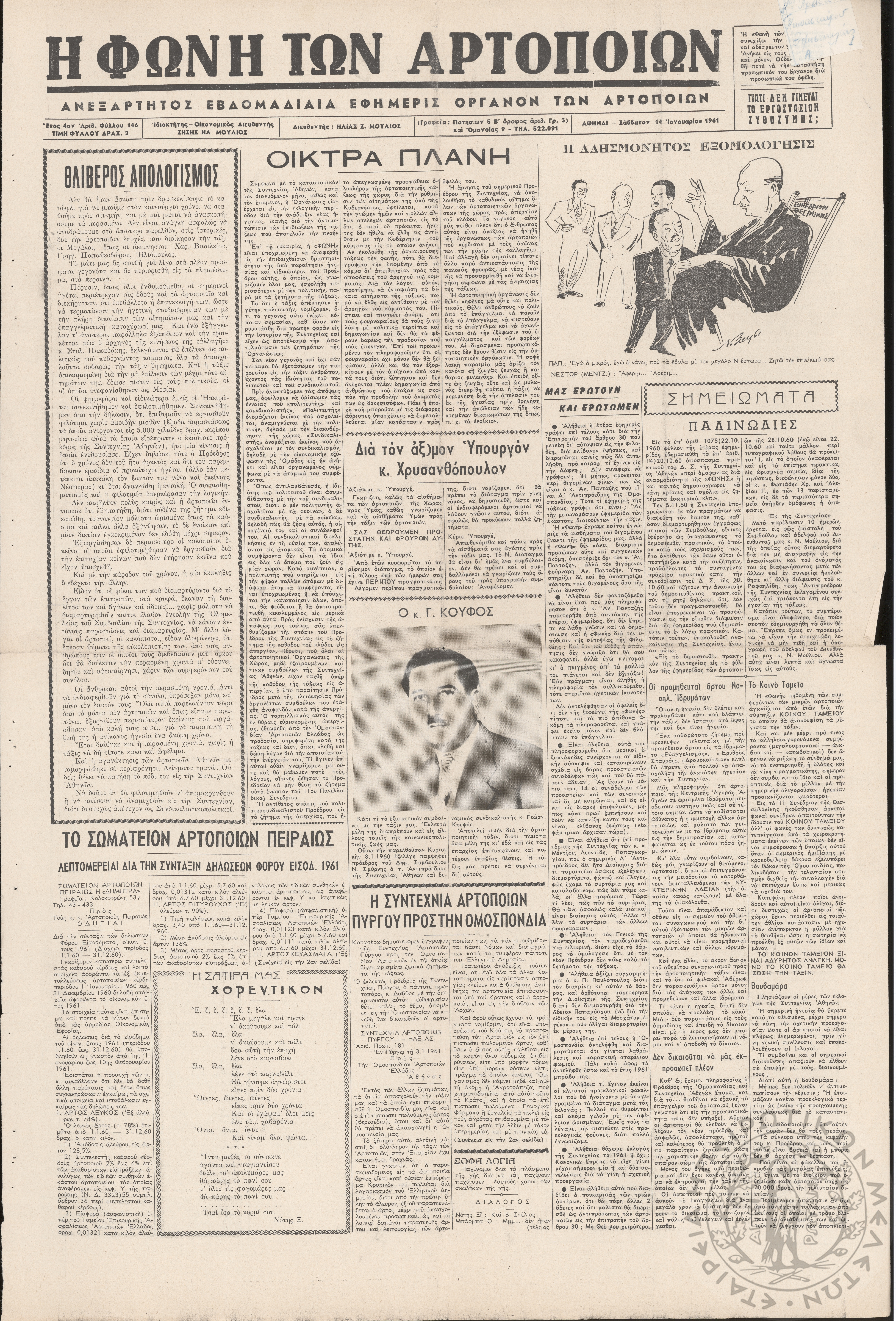 Η φωνή των αρτοποιών: Ανεξάρτητος εβδομαδιαία εφημερίς όργανον των αρτοποιών (τευχ. 146)Έτος 4, φ. 146...