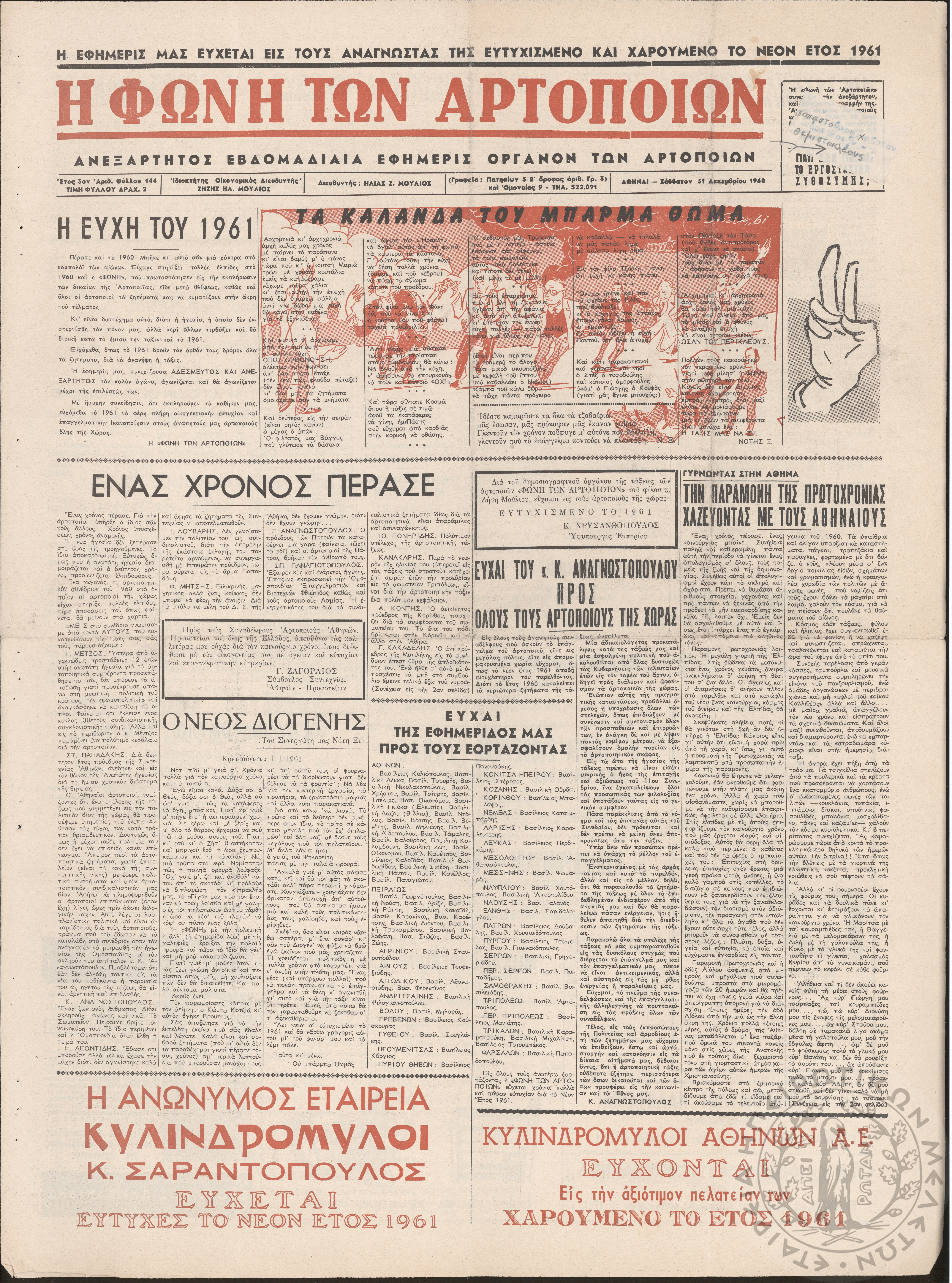 Η φωνή των αρτοποιών: Ανεξάρτητος εβδομαδιαία εφημερίς όργανον των αρτοποιών (τευχ. 144)Έτος 3, φ. 144...